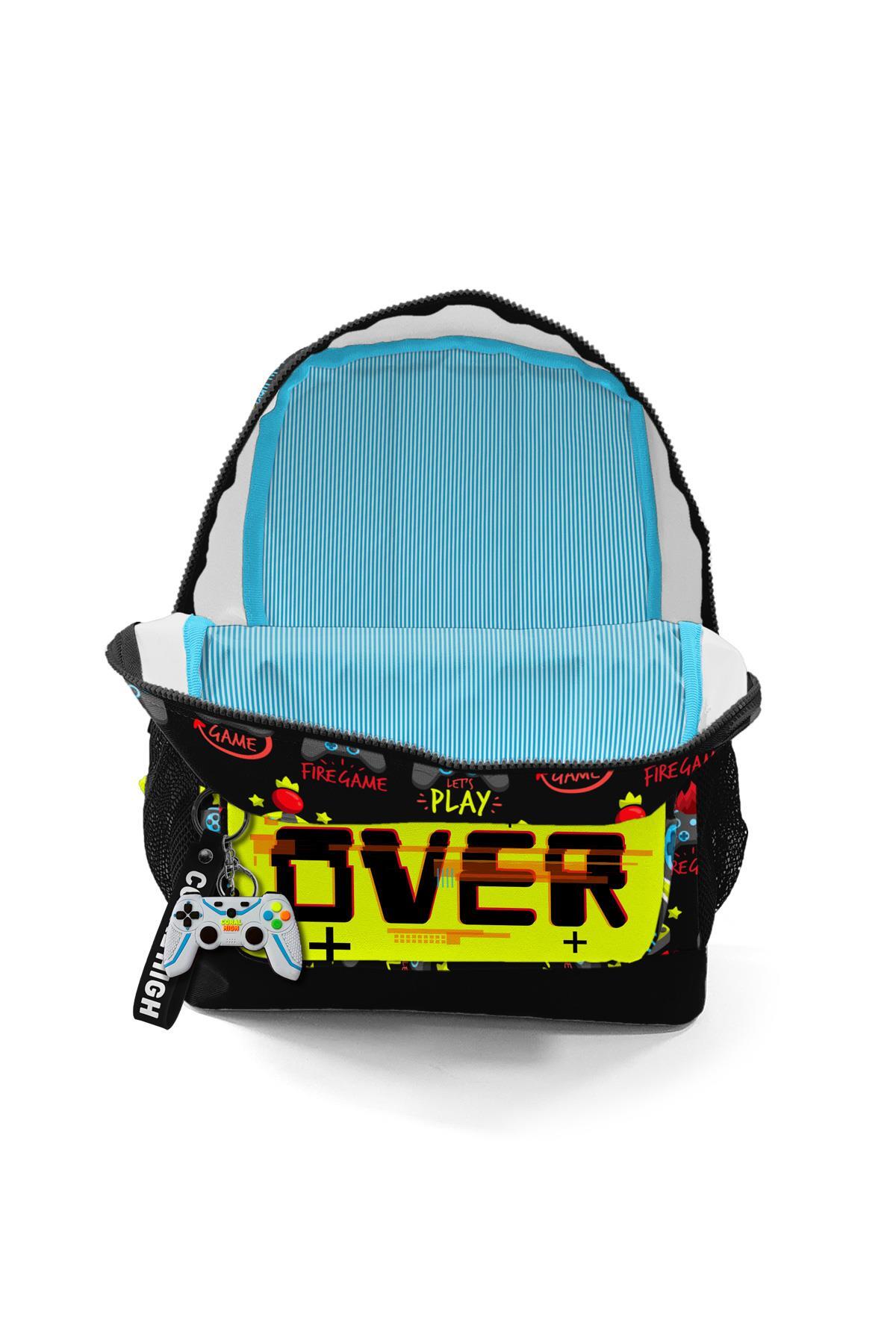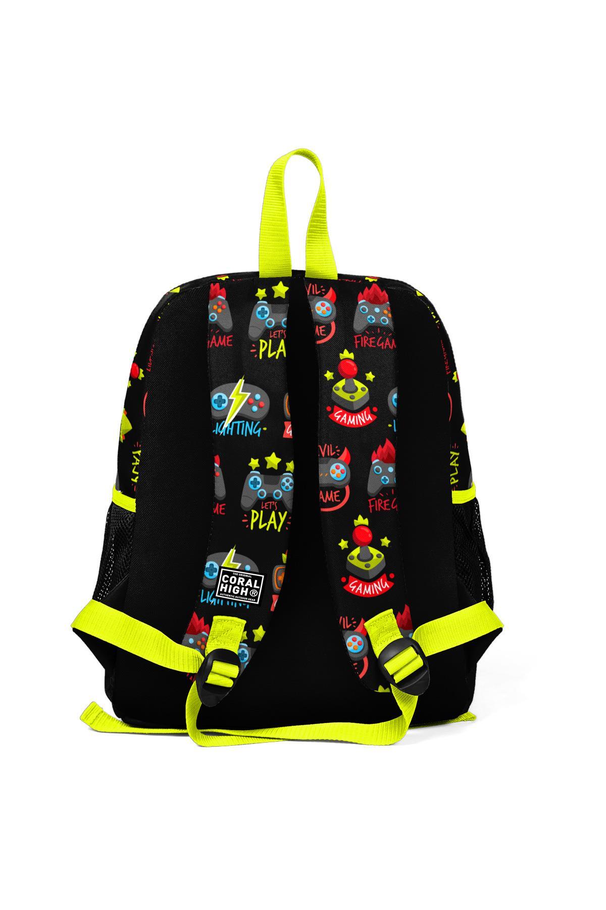 Coral High Kids Siyah Neon Sarı Game Over Desenli İki Bölmeli Okul Sırt Çantası 23628