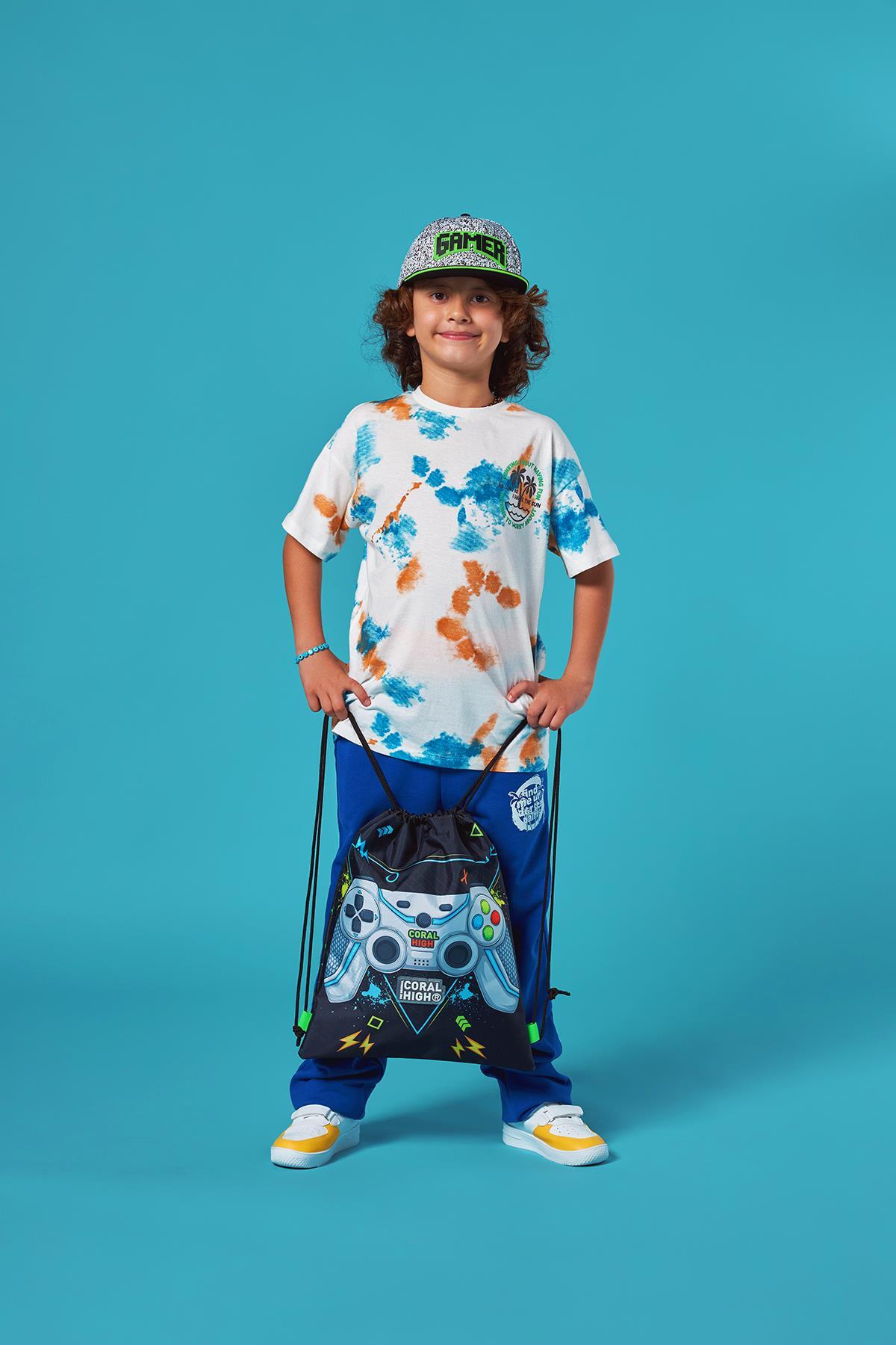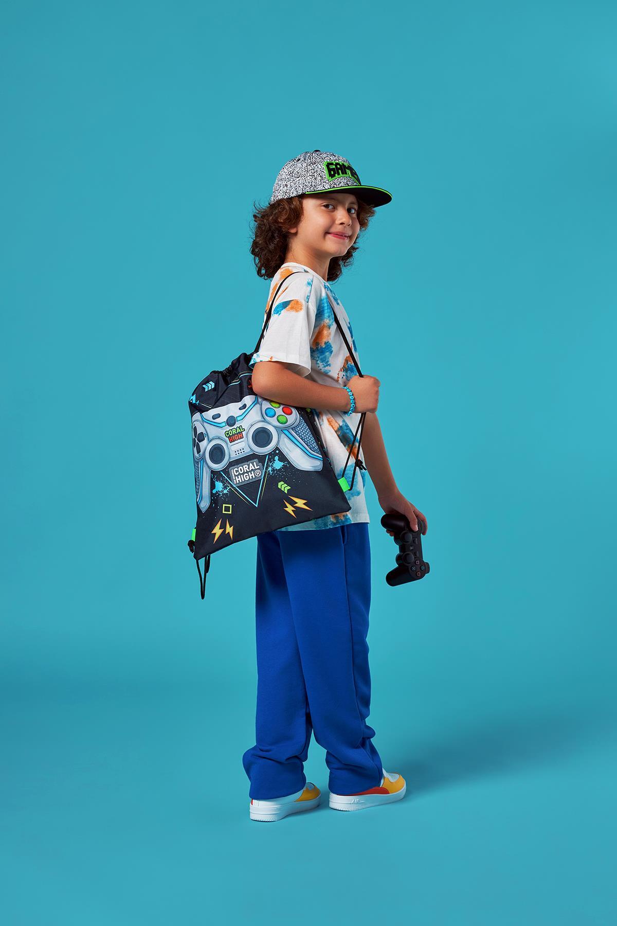 Coral High Kids Siyah Fosforlu Yeşil Gamer Desenli İpli Büzgülü Sırt Çantası 12655