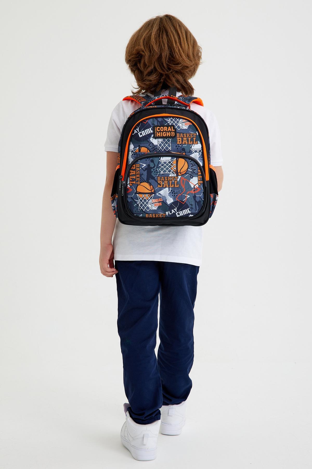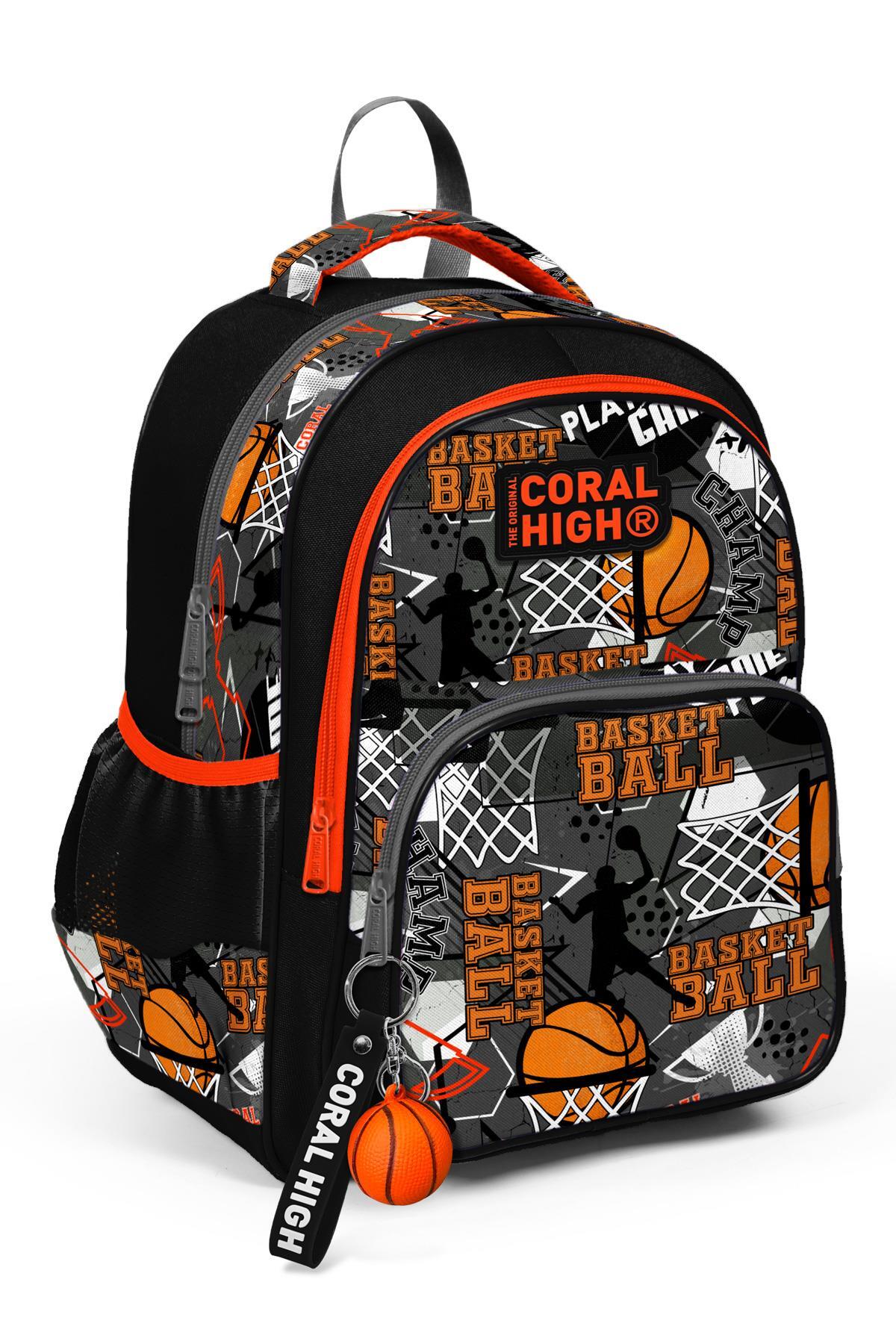 Coral High Kids Siyah Gri Basketbol Desenli Üç Bölmeli Okul Sırt Çantası 14418