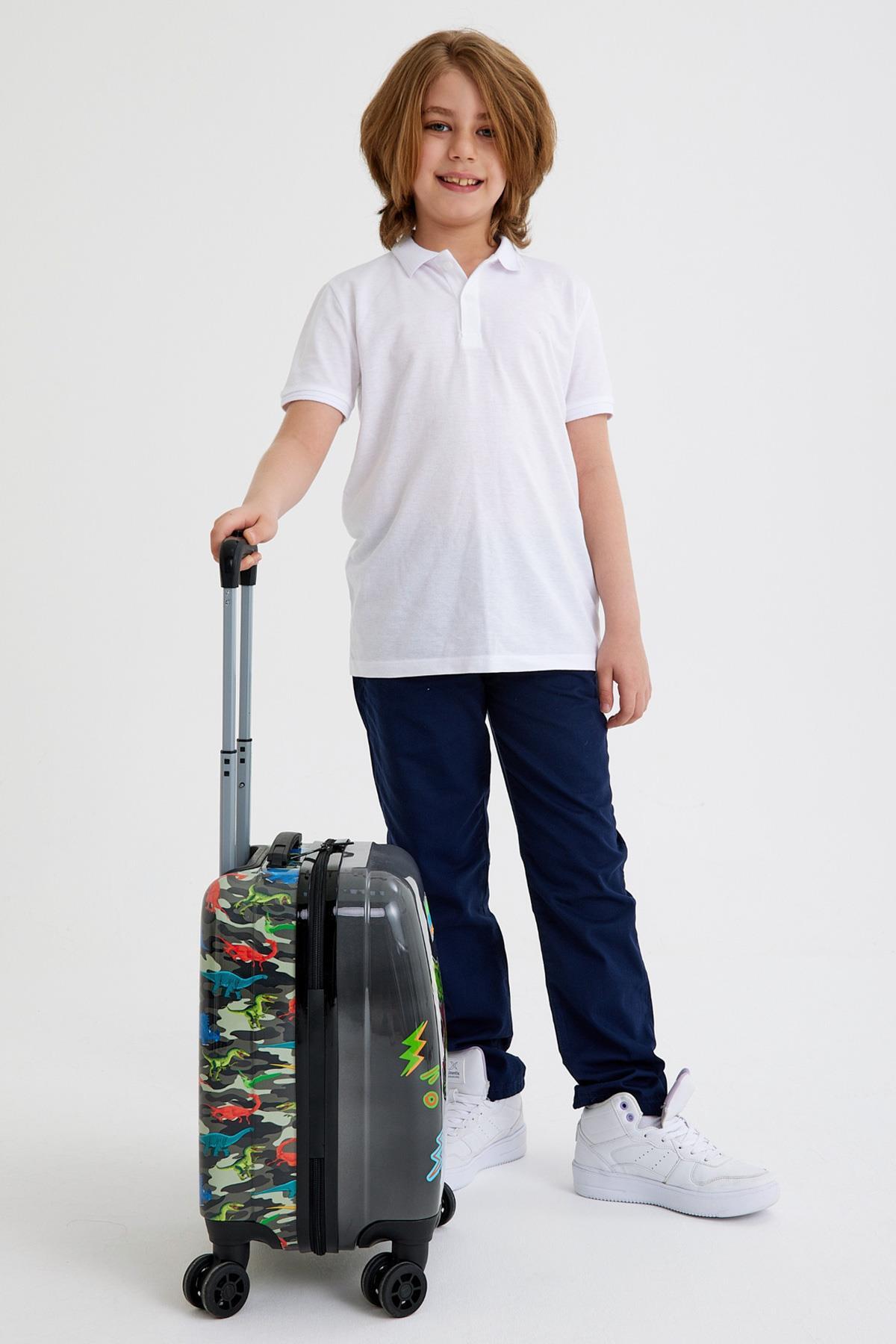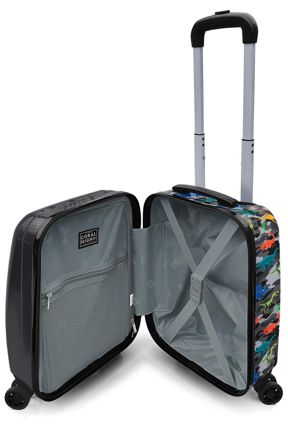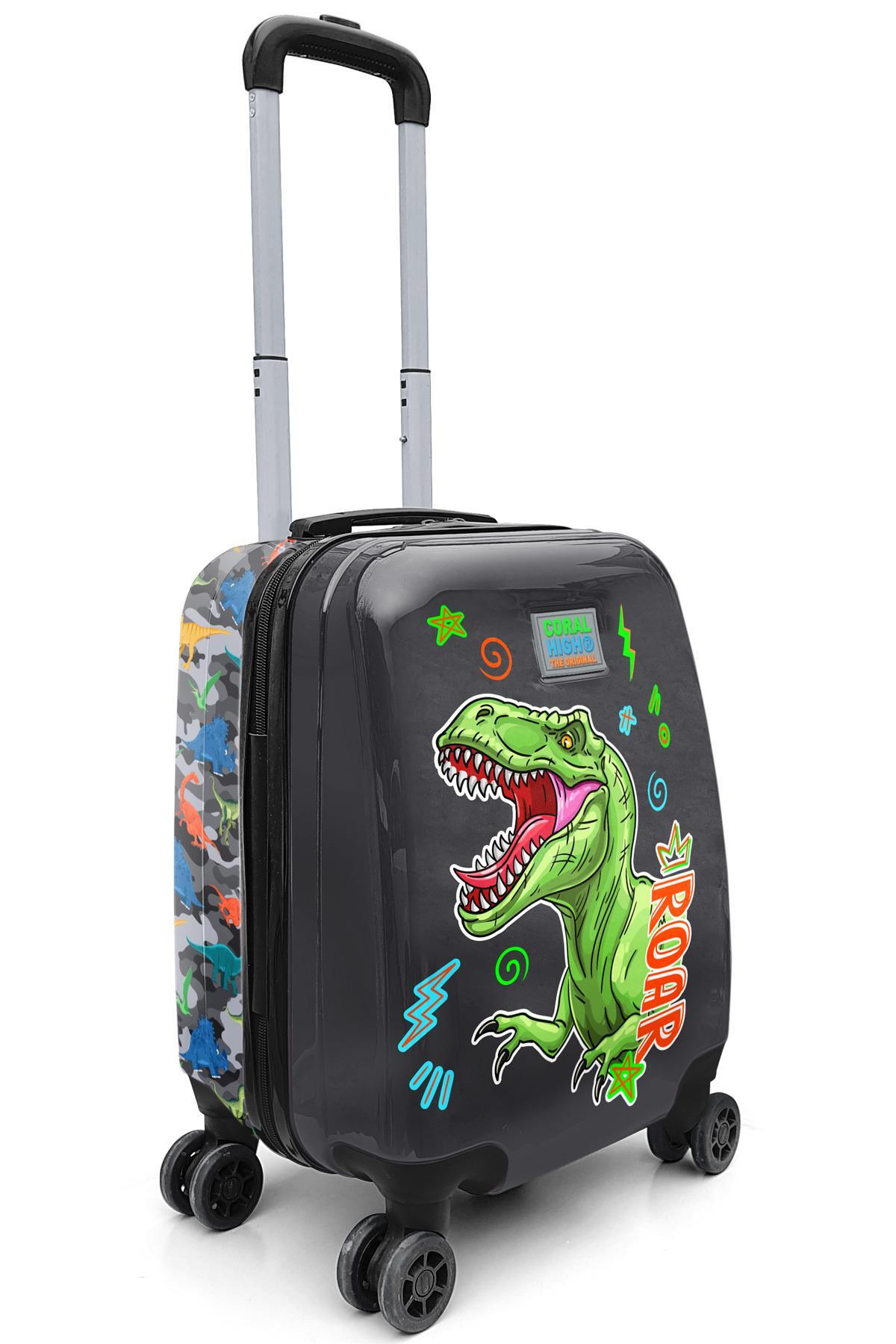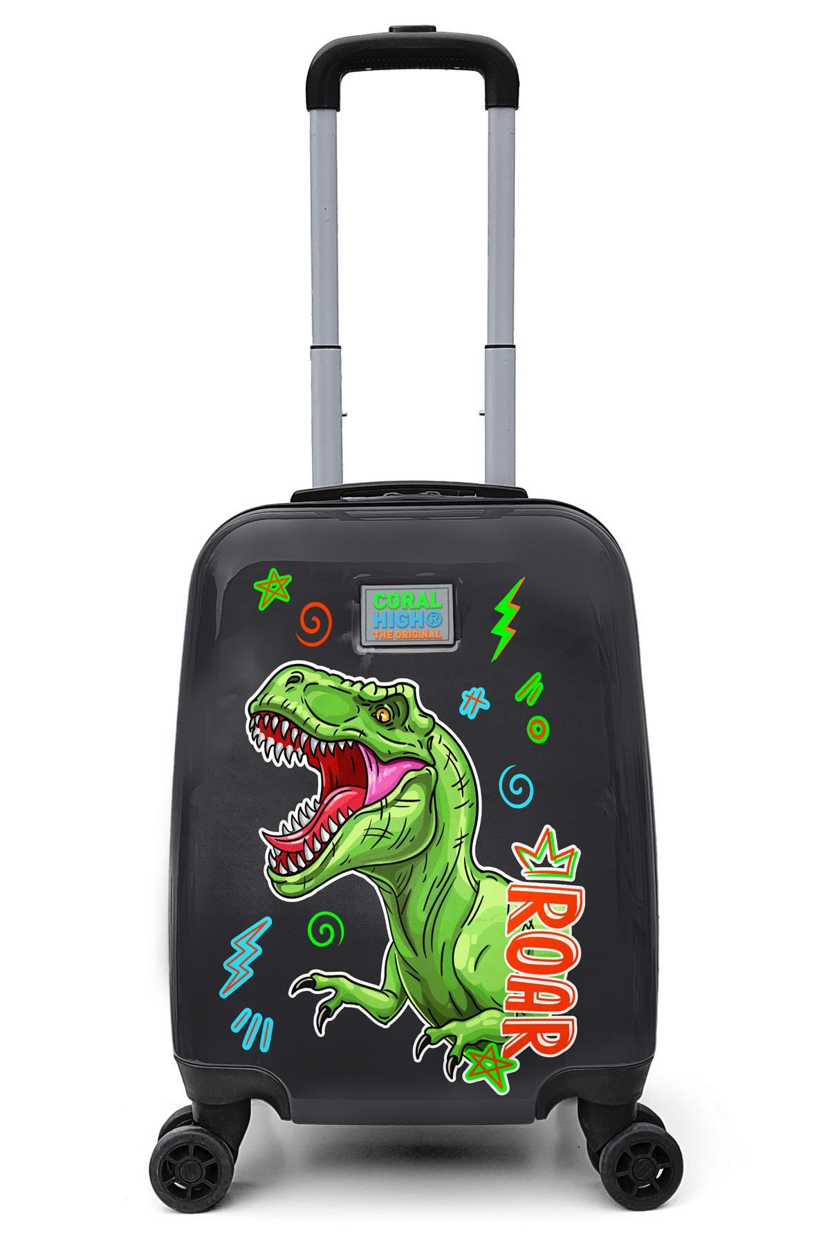 Coral High Kids Siyah Gri Dinozor Desenli Çocuk Valizi 16735