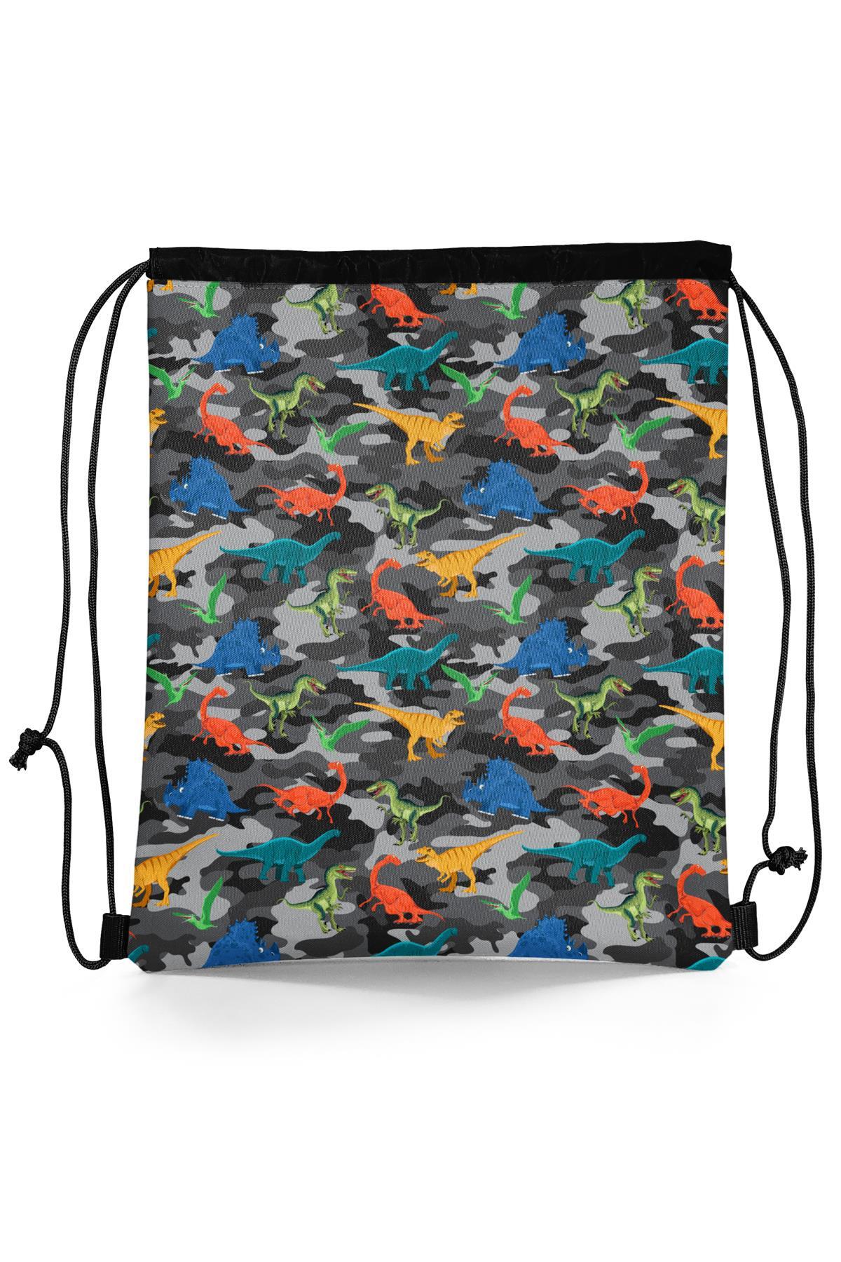 Coral High Kids Siyah Gri Dinozor Desenli İpli Büzgülü Sırt Çantası 22444