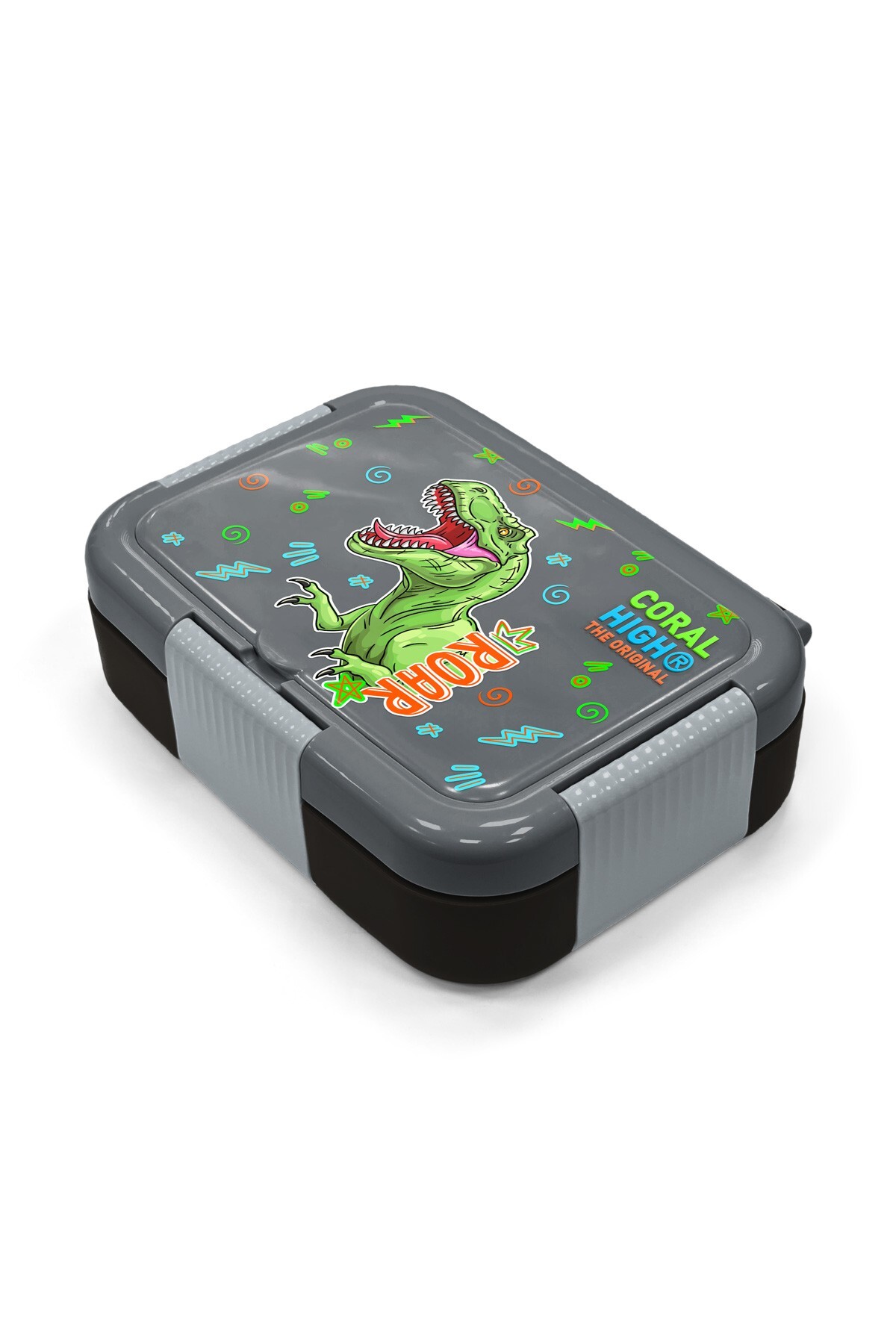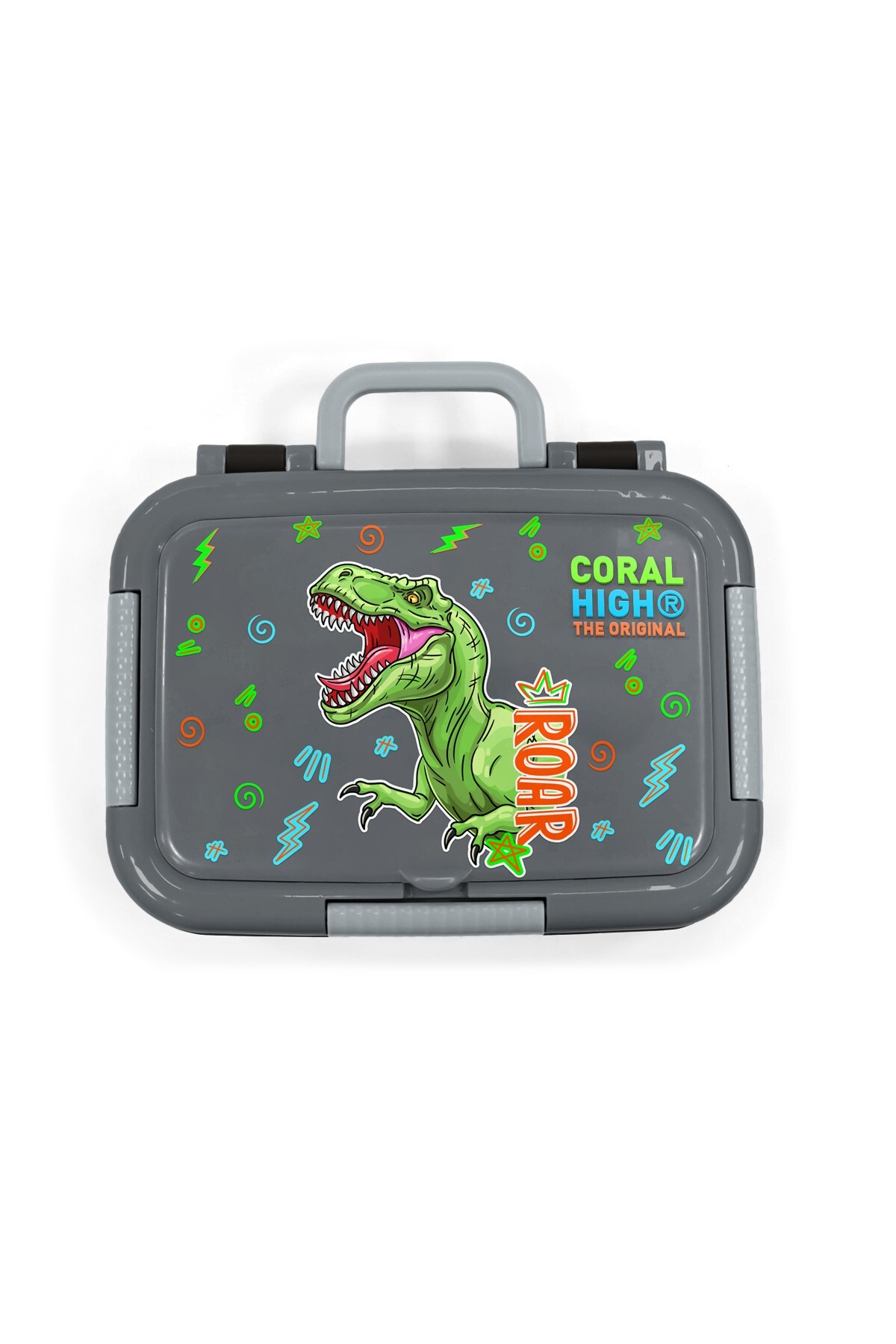 Coral High Kids Siyah Gri Dinozor Desenli Paslanmaz Çelik Beslenme Kabı 39252