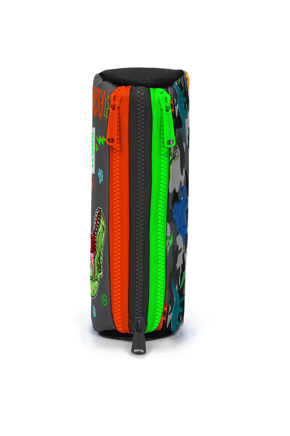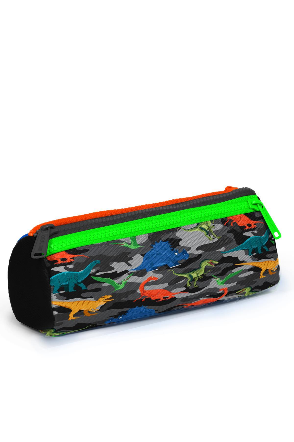 Coral High Kids Siyah Gri Dinozor Desenli Üç Bölmeli Kalem Çantası 22044