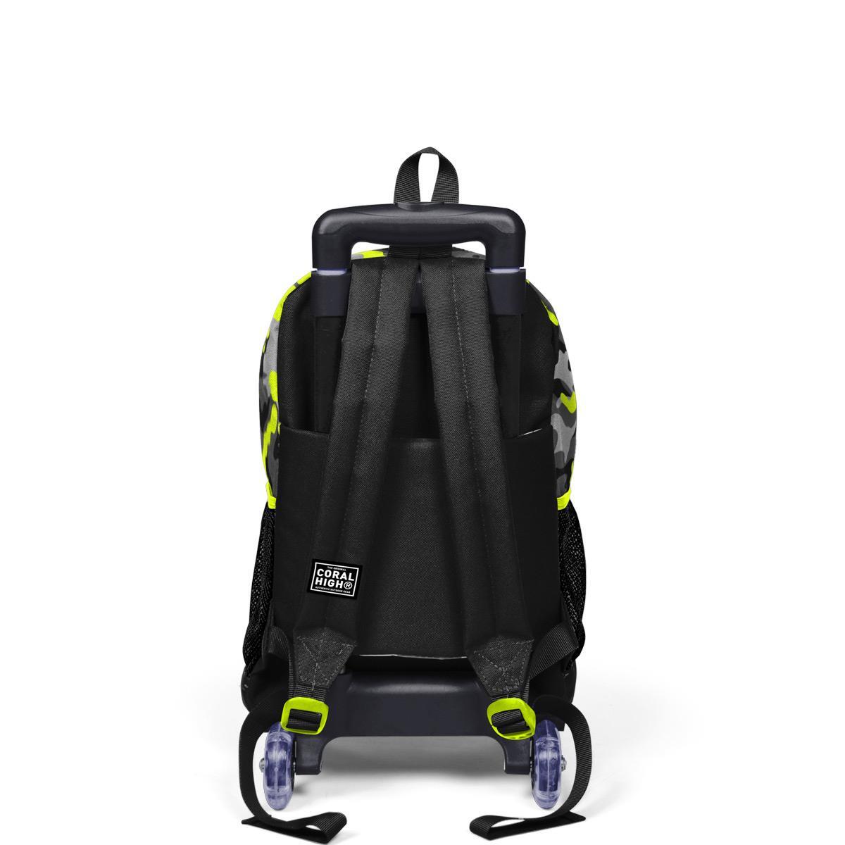 Coral High Kids Siyah Gri Kamuflaj Desenli Çekçekli 3'lü Çanta Seti SET0123137