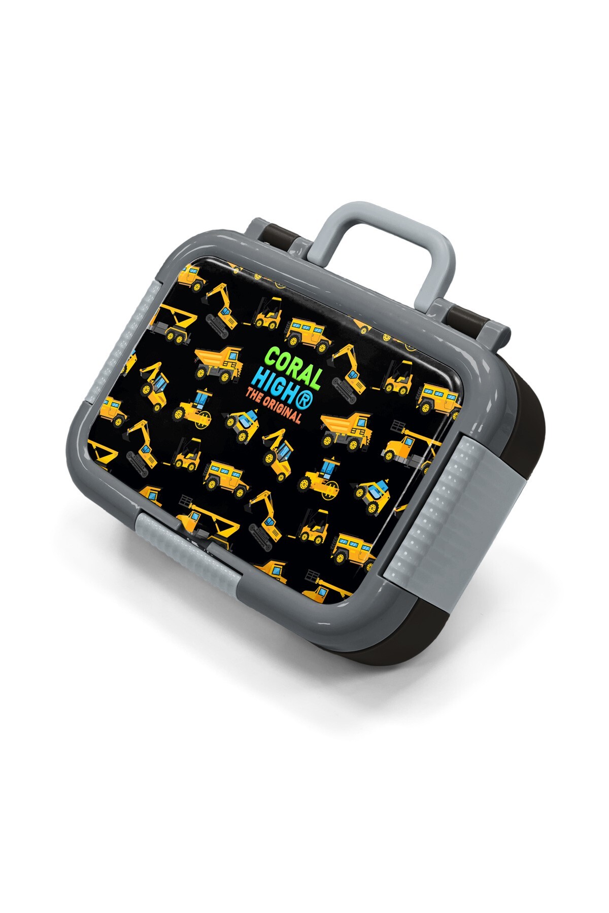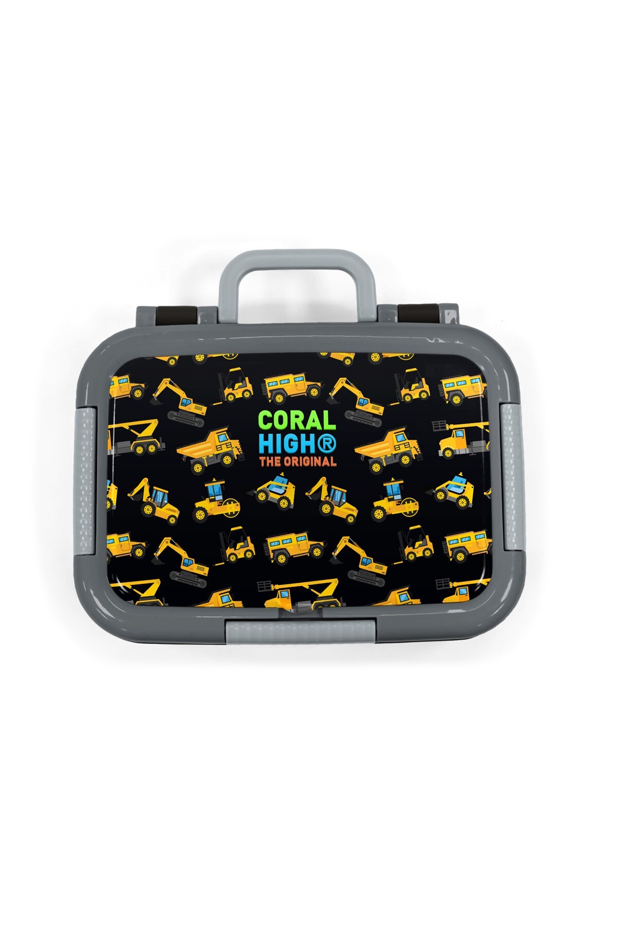 Coral High Kids Siyah İş Makinaleri Desenli Paslanmaz Çelik Beslenme Kabı 39225