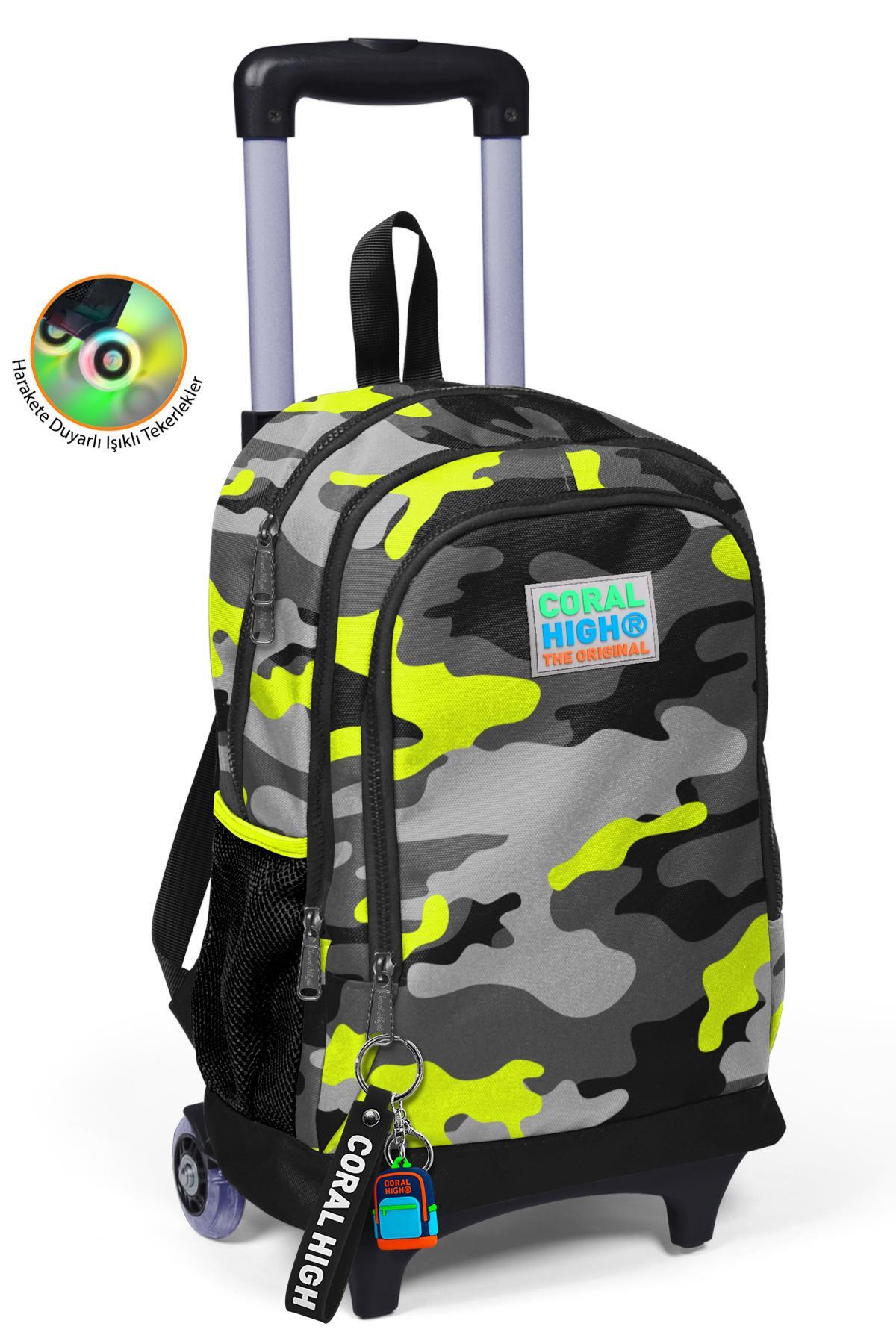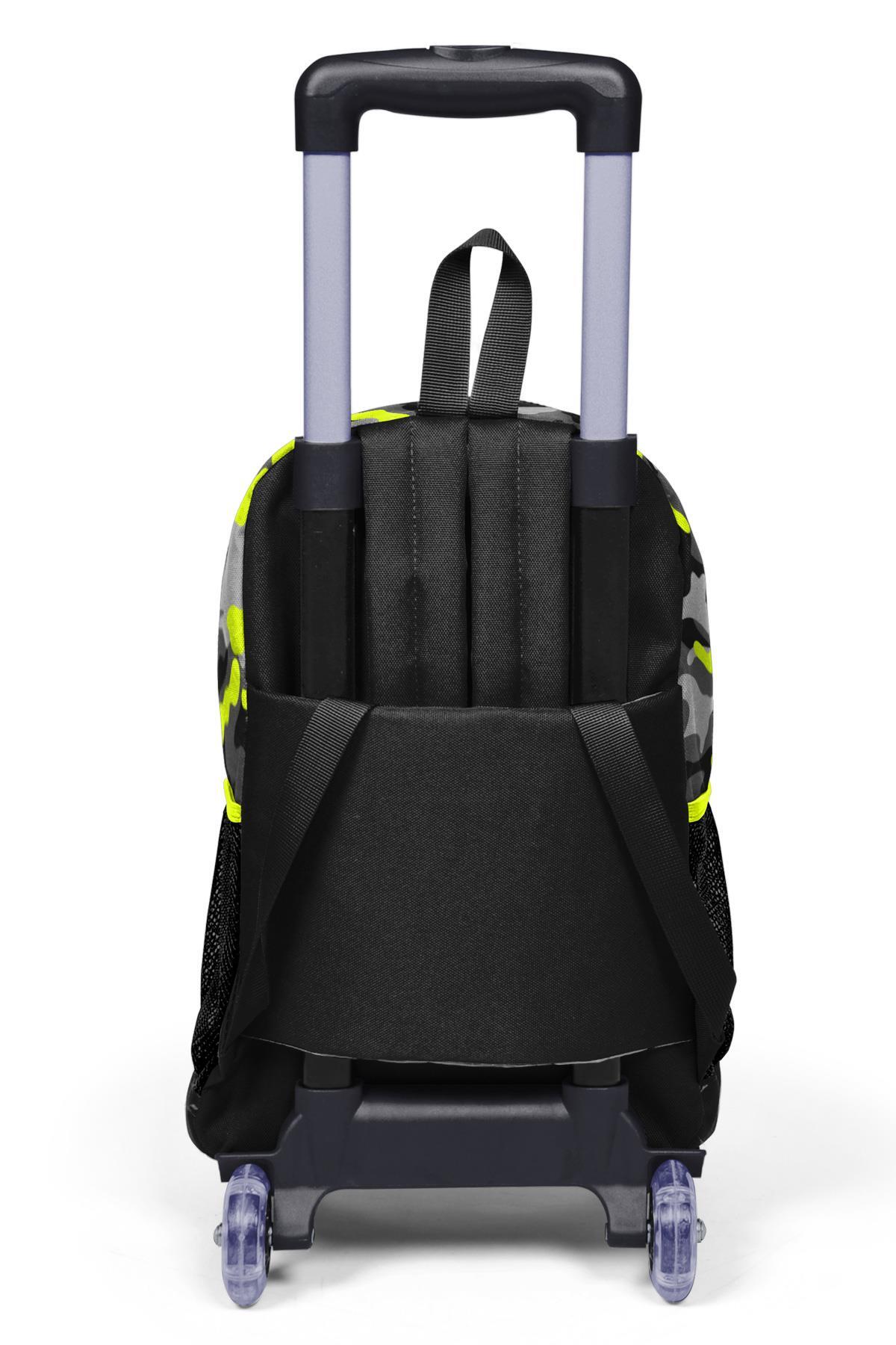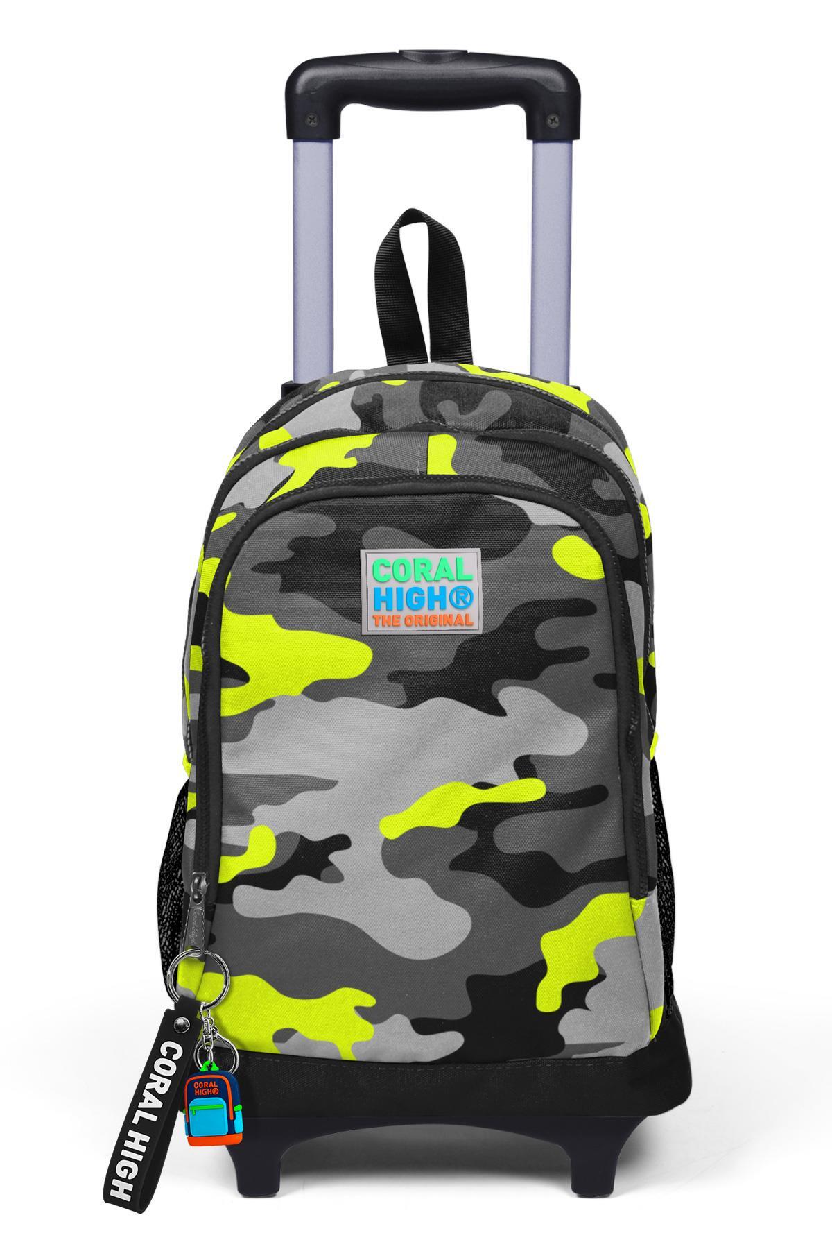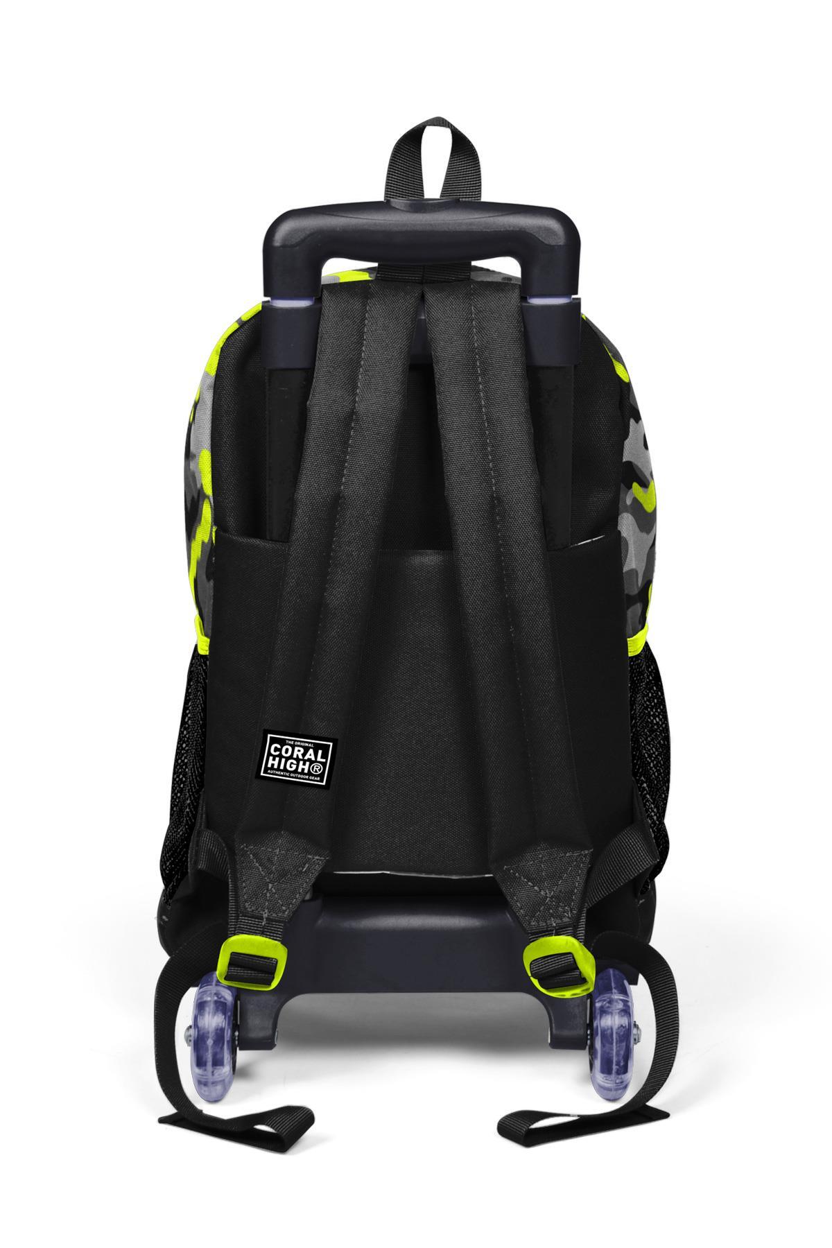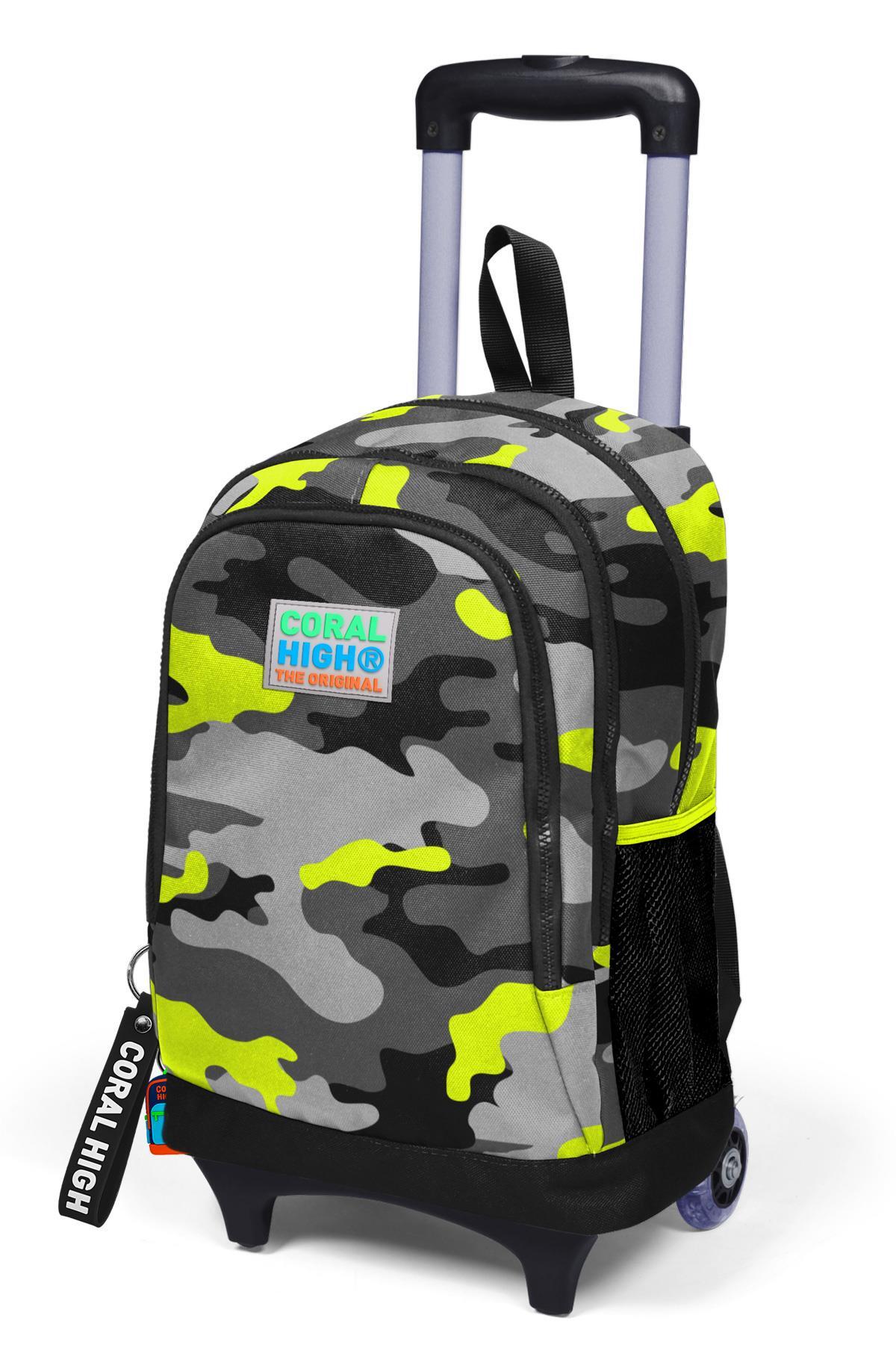 Coral High Kids Siyah Gri Kamuflaj Desenli Üç Bölmeli Çekçekli Okul Sırt Çantası 23137