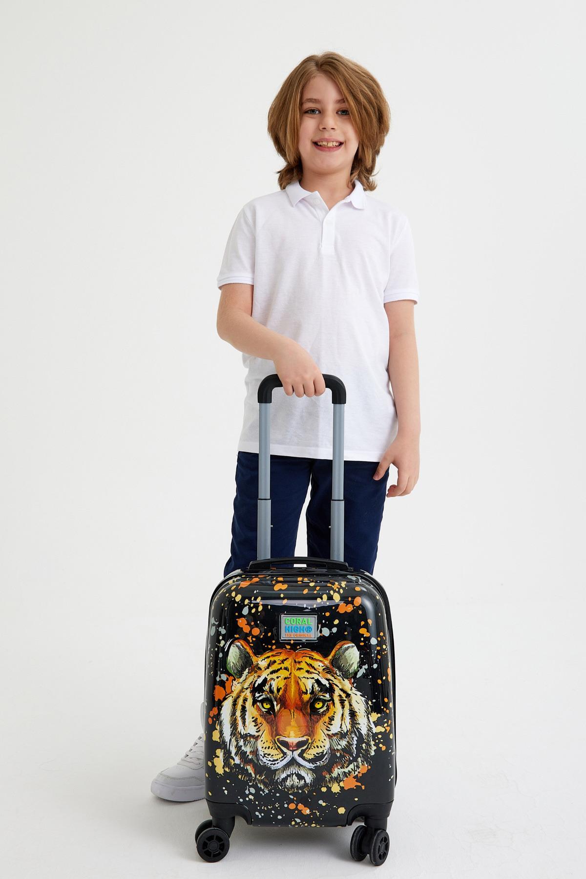 Coral High Kids Siyah Kaplan Desenli Çocuk Valizi 16758