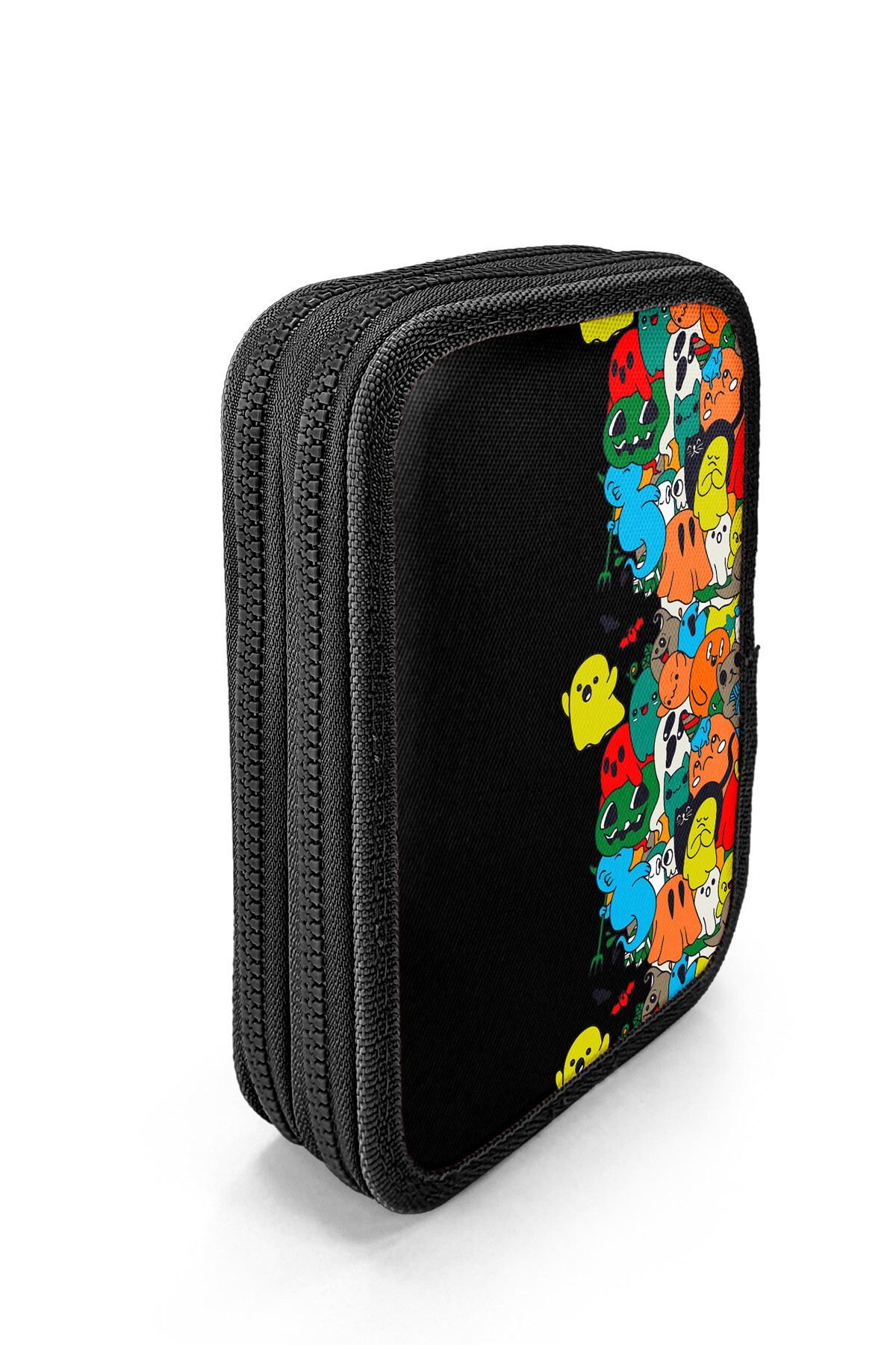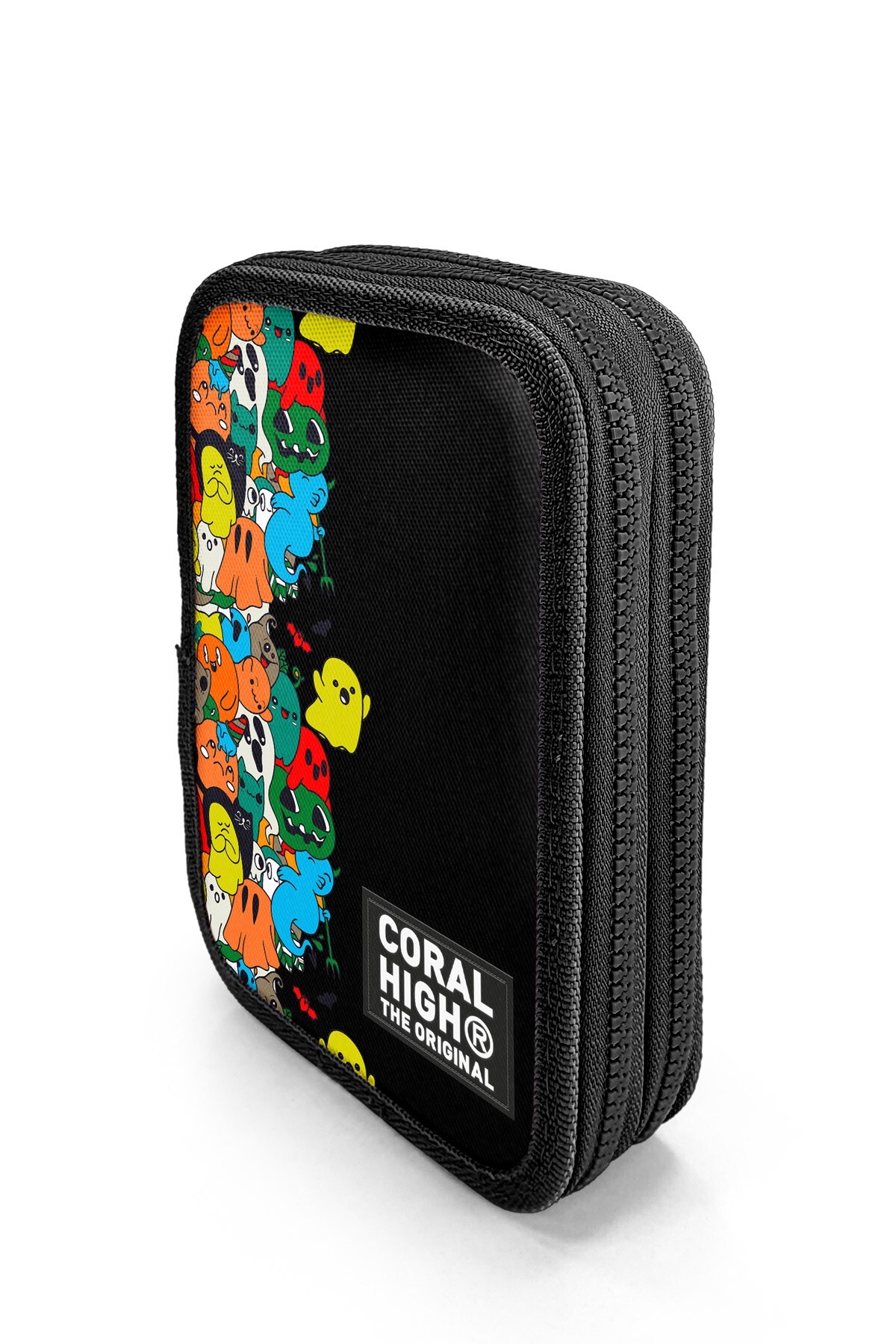 Coral High Kids Siyah Karikatür Desenli Çift Katlı Kalem Çanta 11150