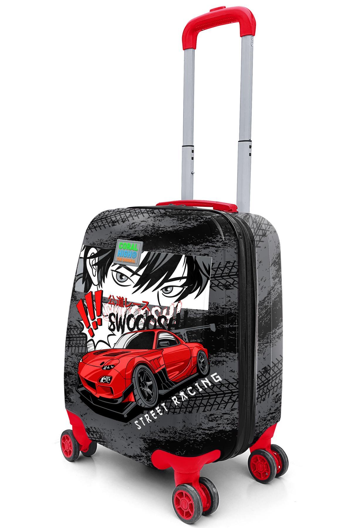 Coral High Kids Siyah Kırmızı Anime Araba Desenli Çocuk Valizi 16738