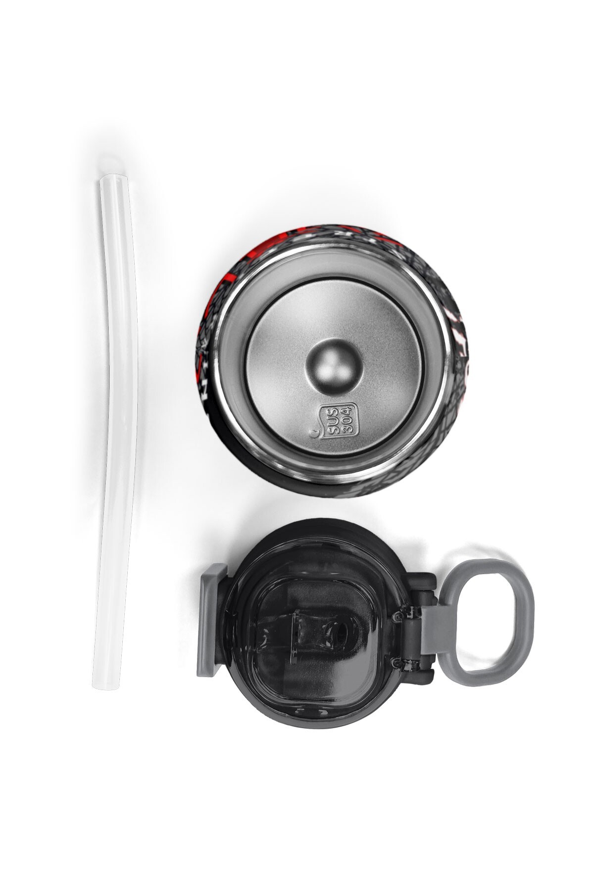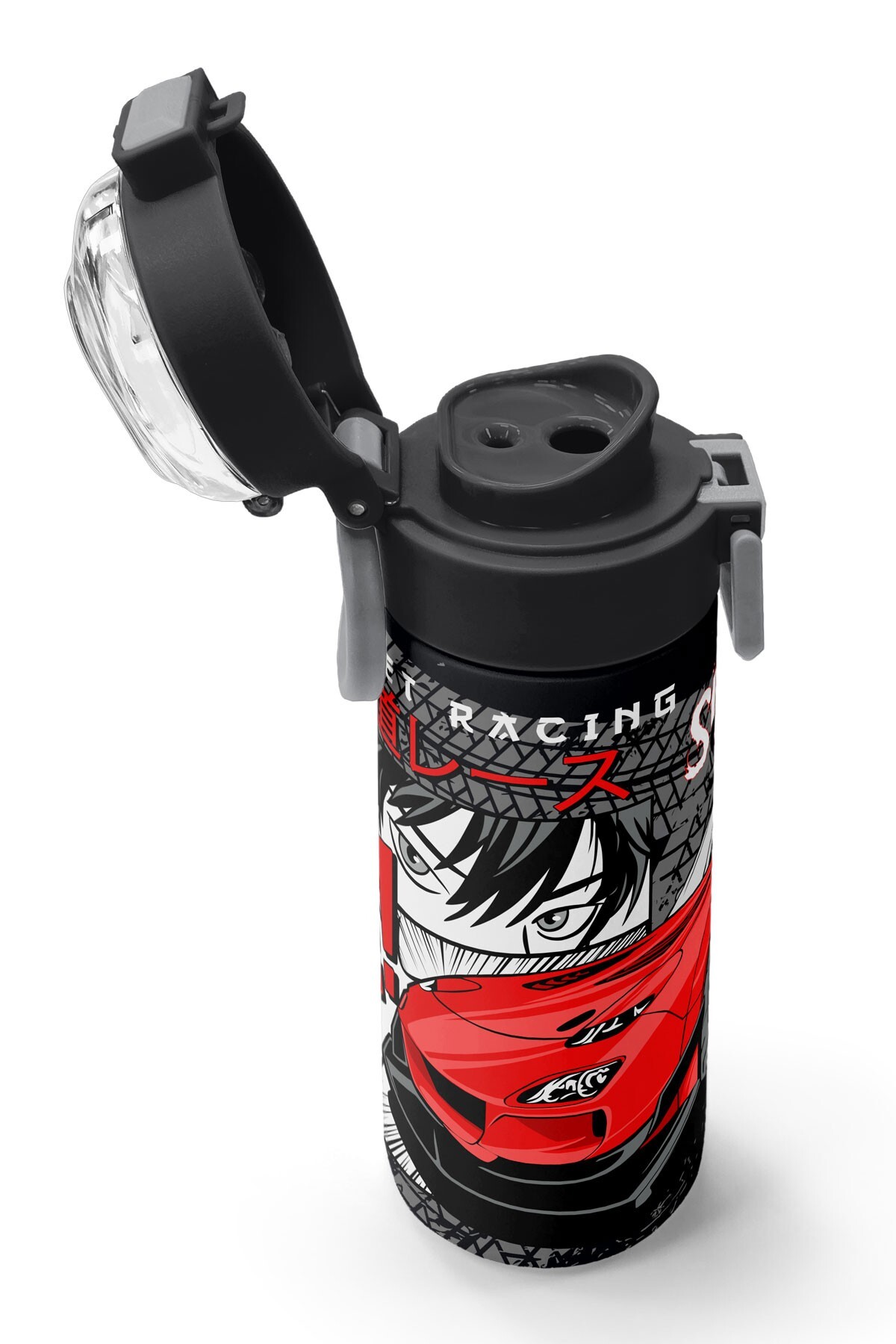 Coral High Kids Siyah Kırmızı Anime Araba Desenli Pipetli ve Direkt İçim Çelik Termos 500 ml 31948