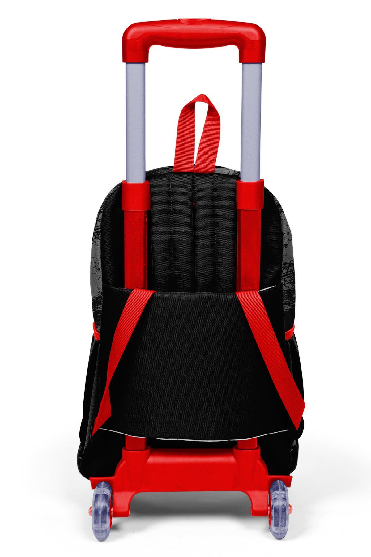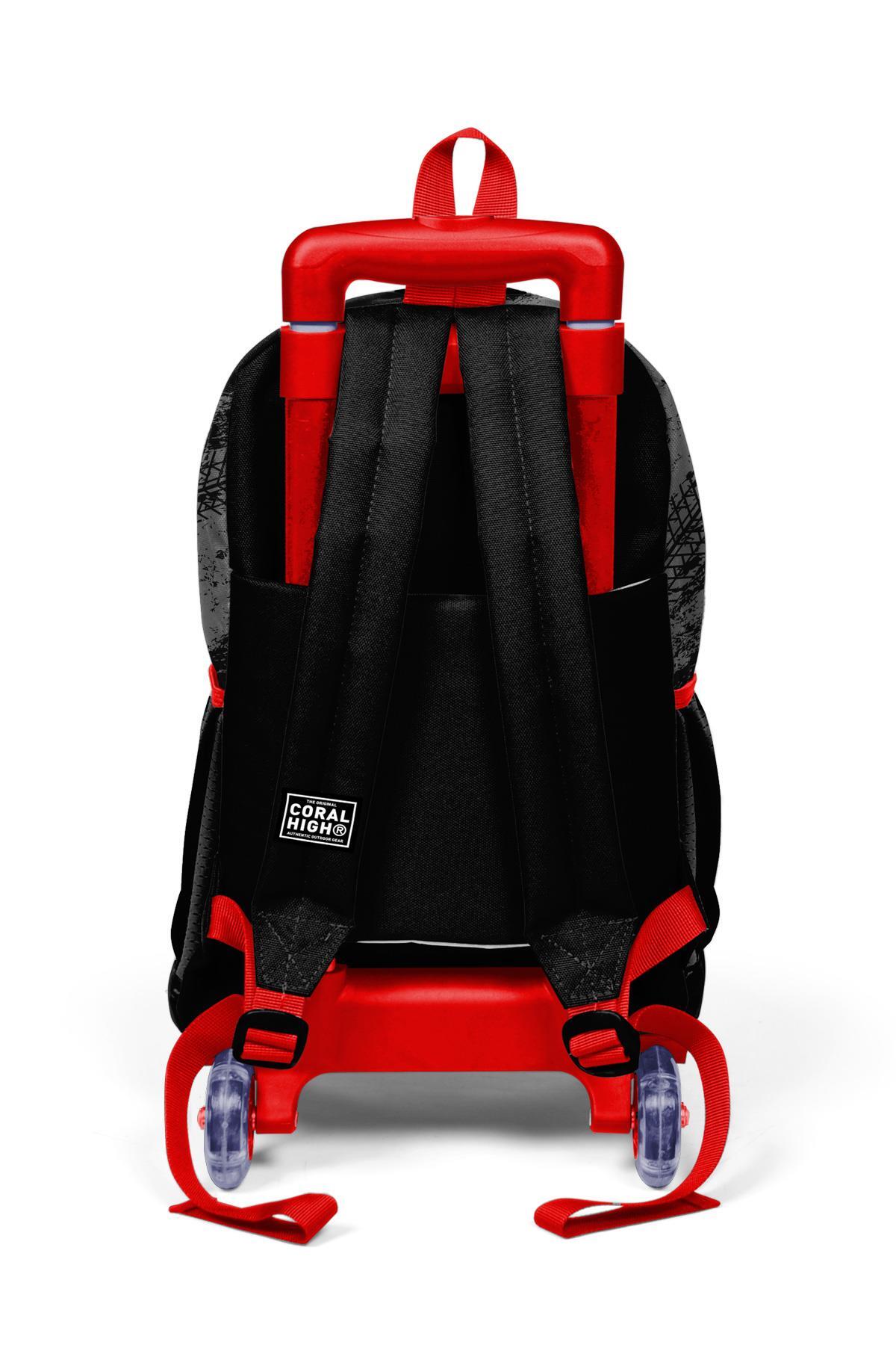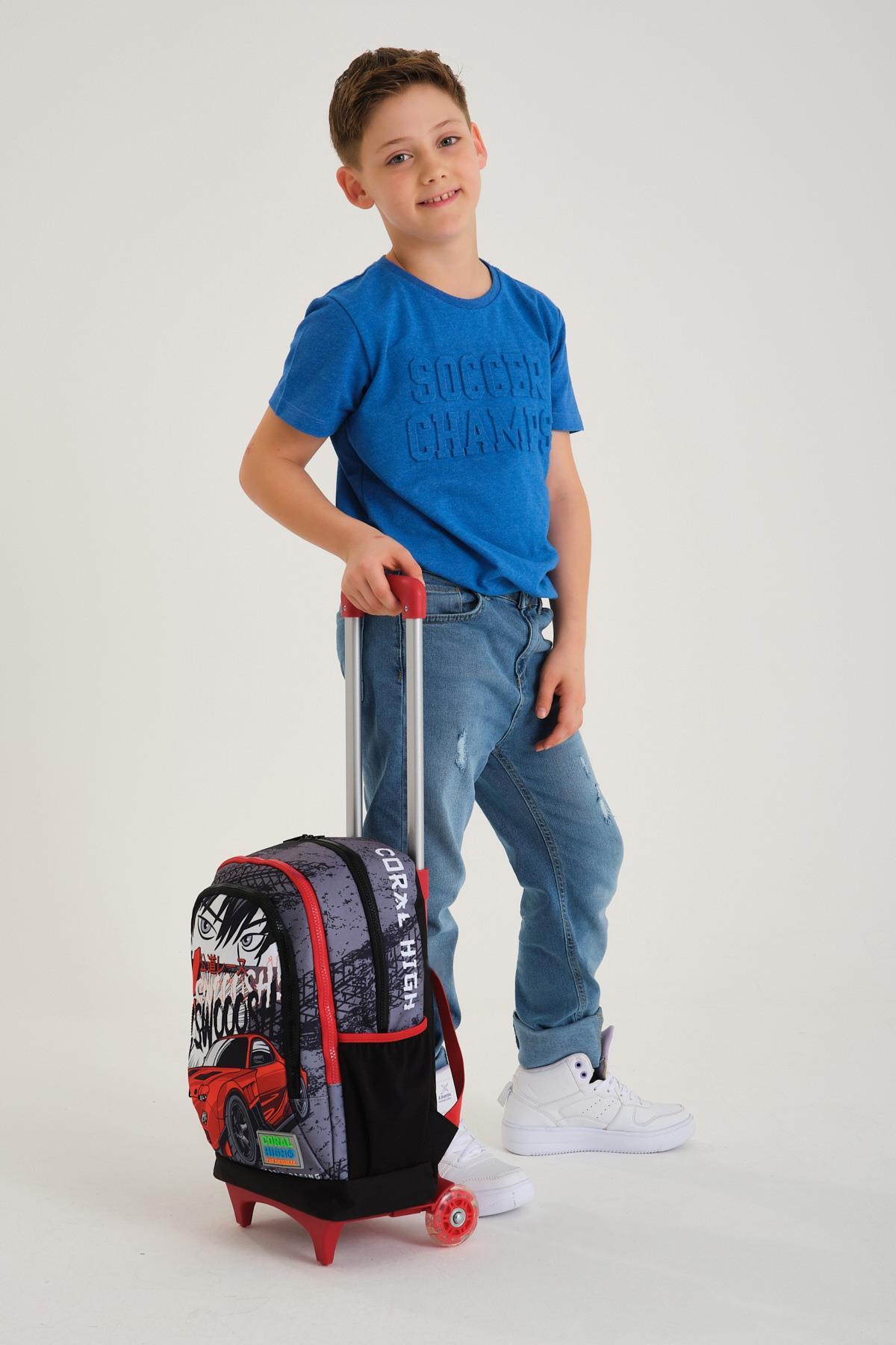 Coral High Kids Siyah Kırmızı Anime Araba Desenli Üç Bölmeli Çekçekli Okul Sırt Çantası 23947