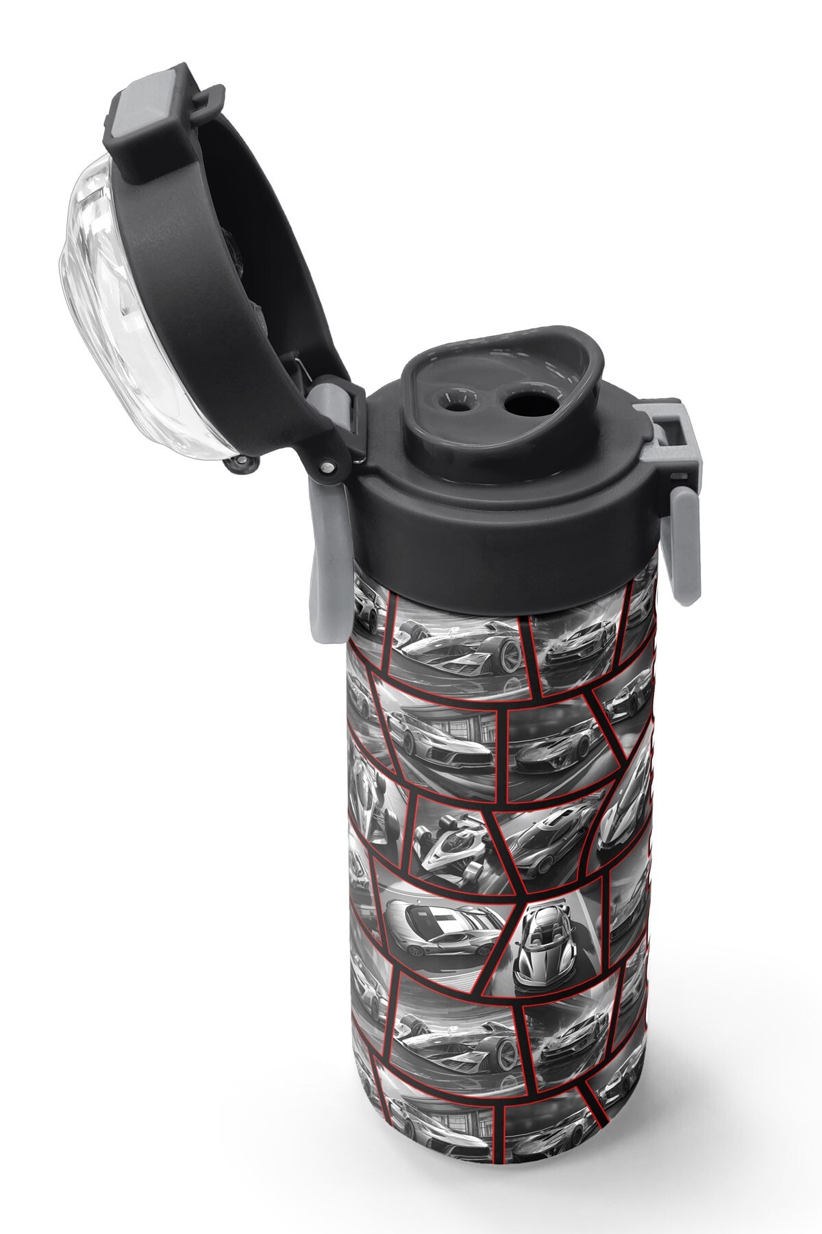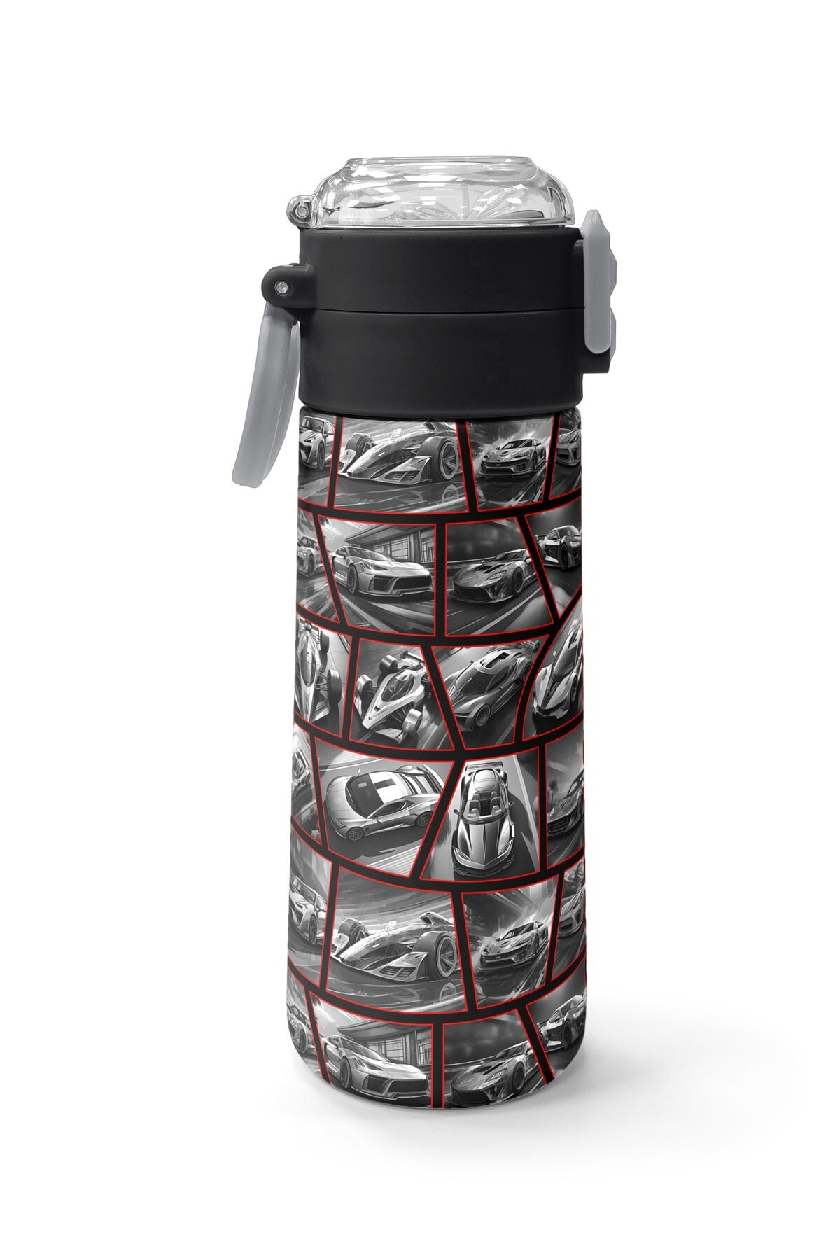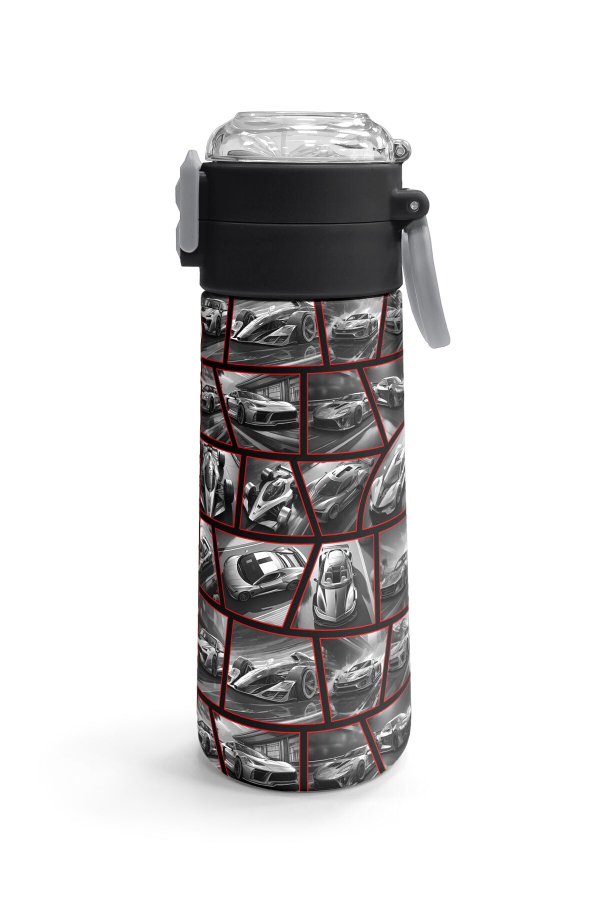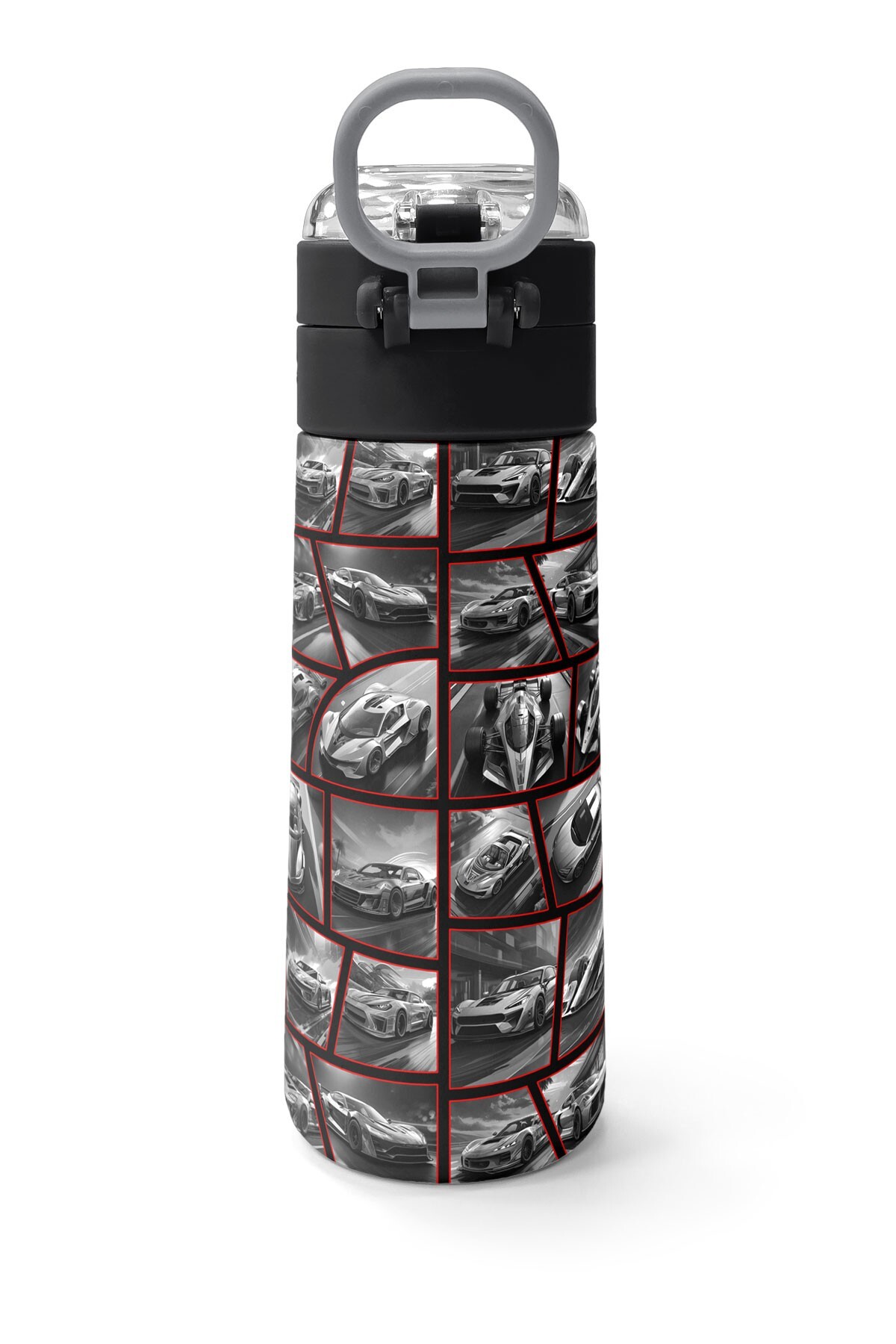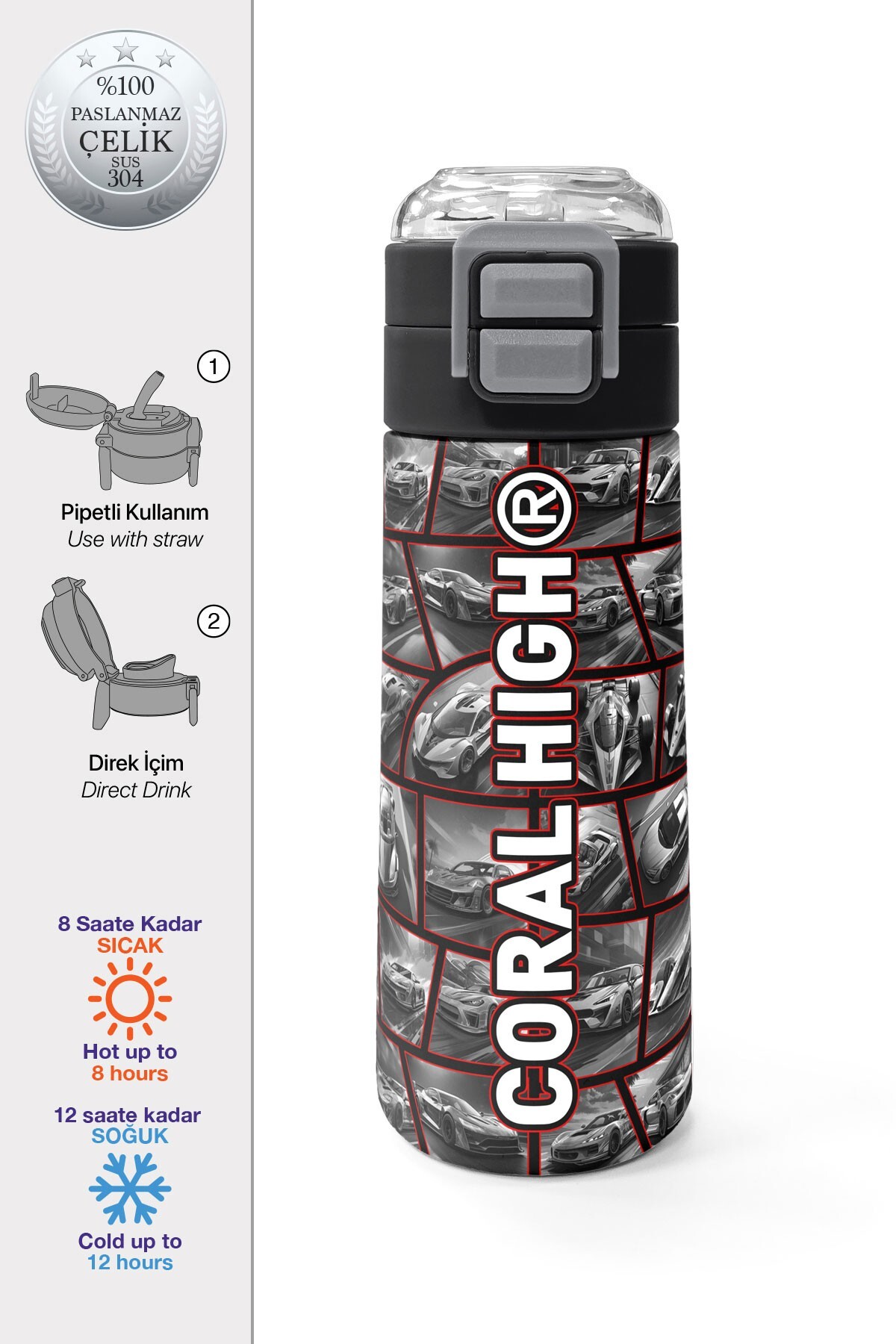 Coral High Kids Siyah Kırmızı Araba Desenli Pipetli ve Direkt İçim Çelik Termos 500 ml 31867