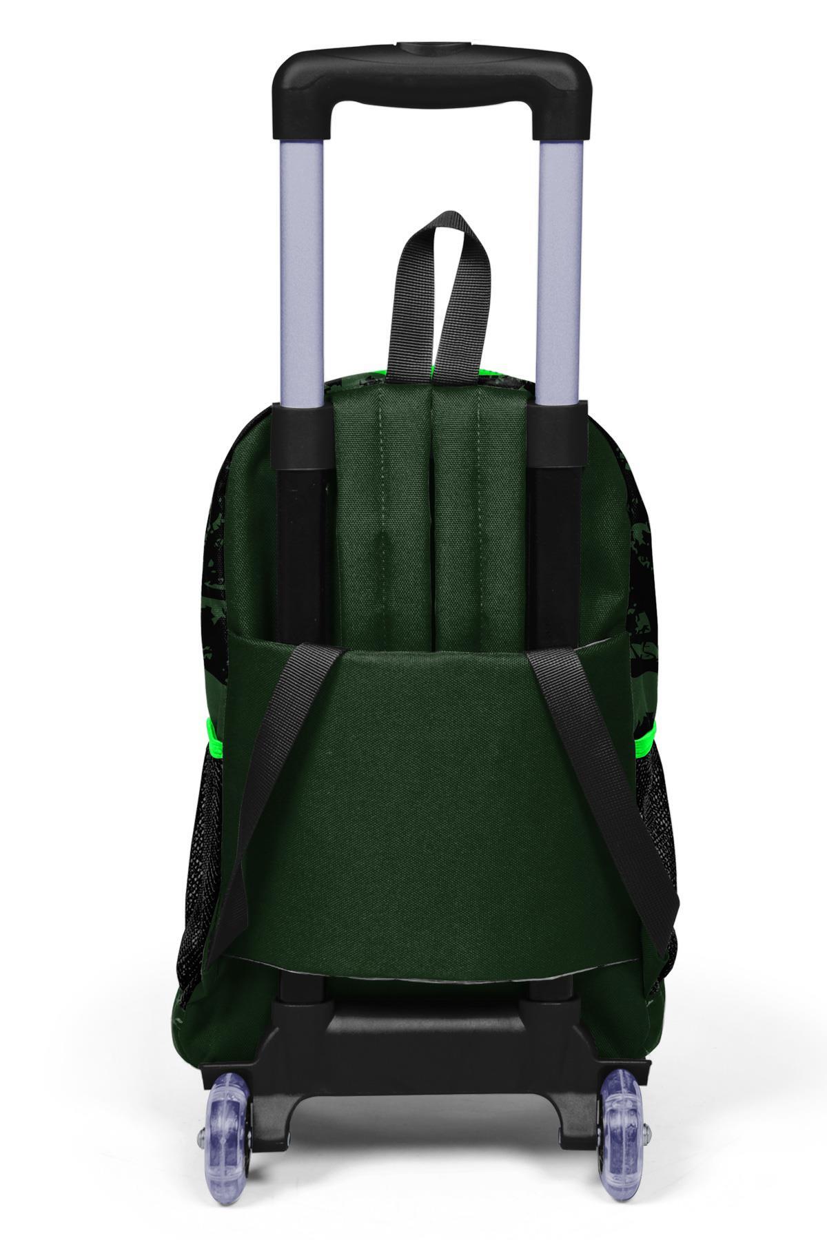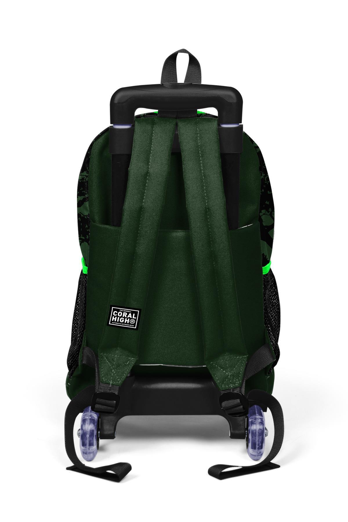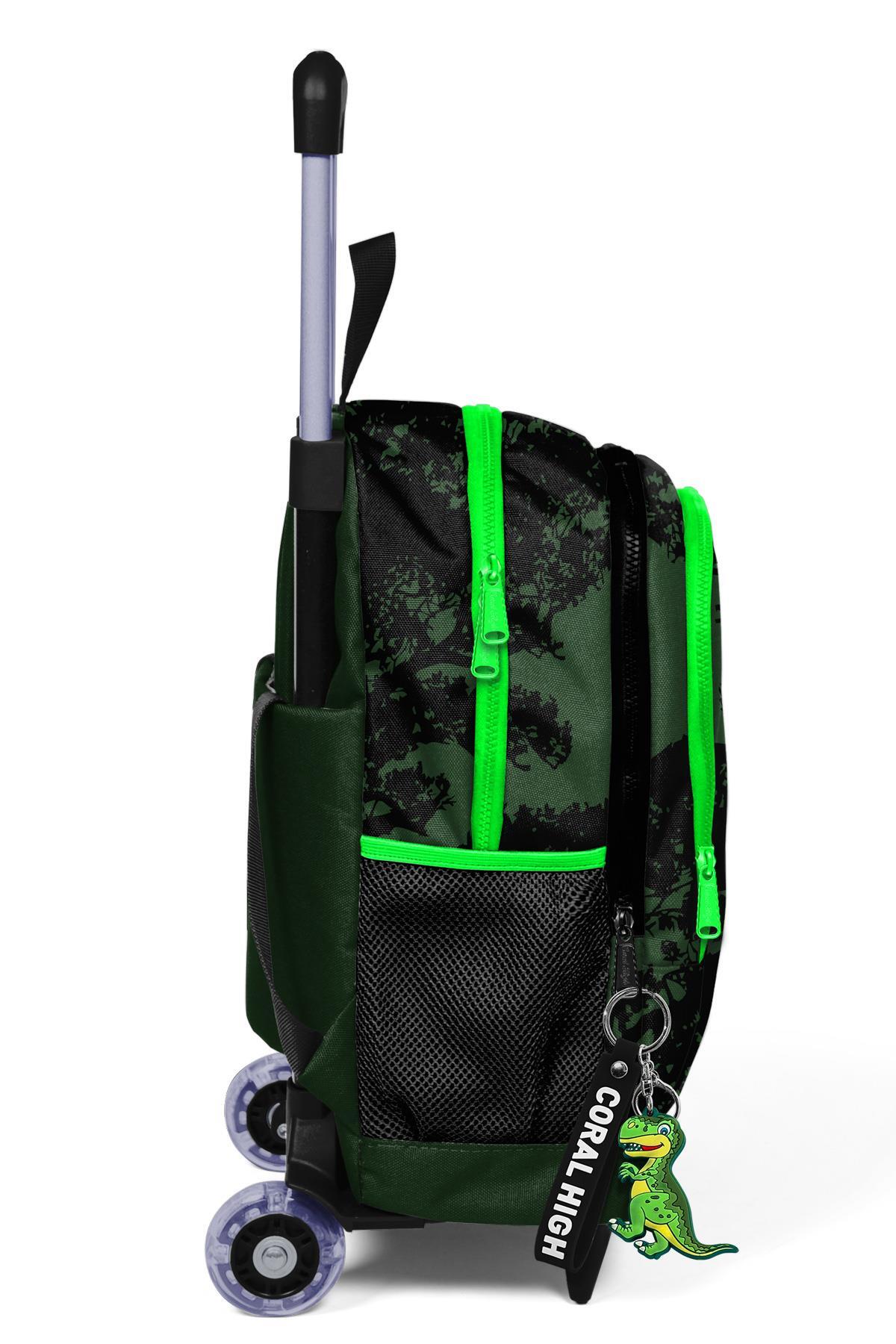 Coral High Kids Koyu Yeşil Siyah Dinozor Desenli Üç Bölmeli Çekçekli Sırt Çantası 23925