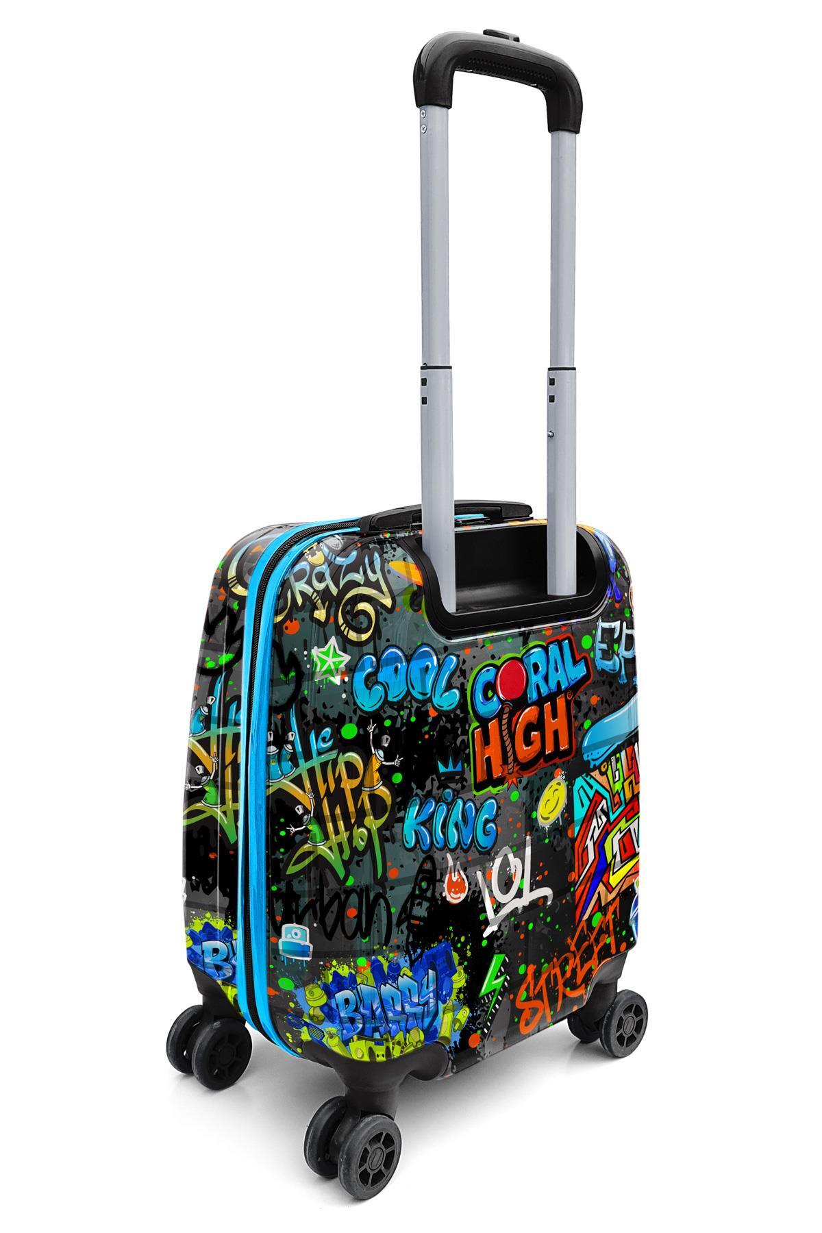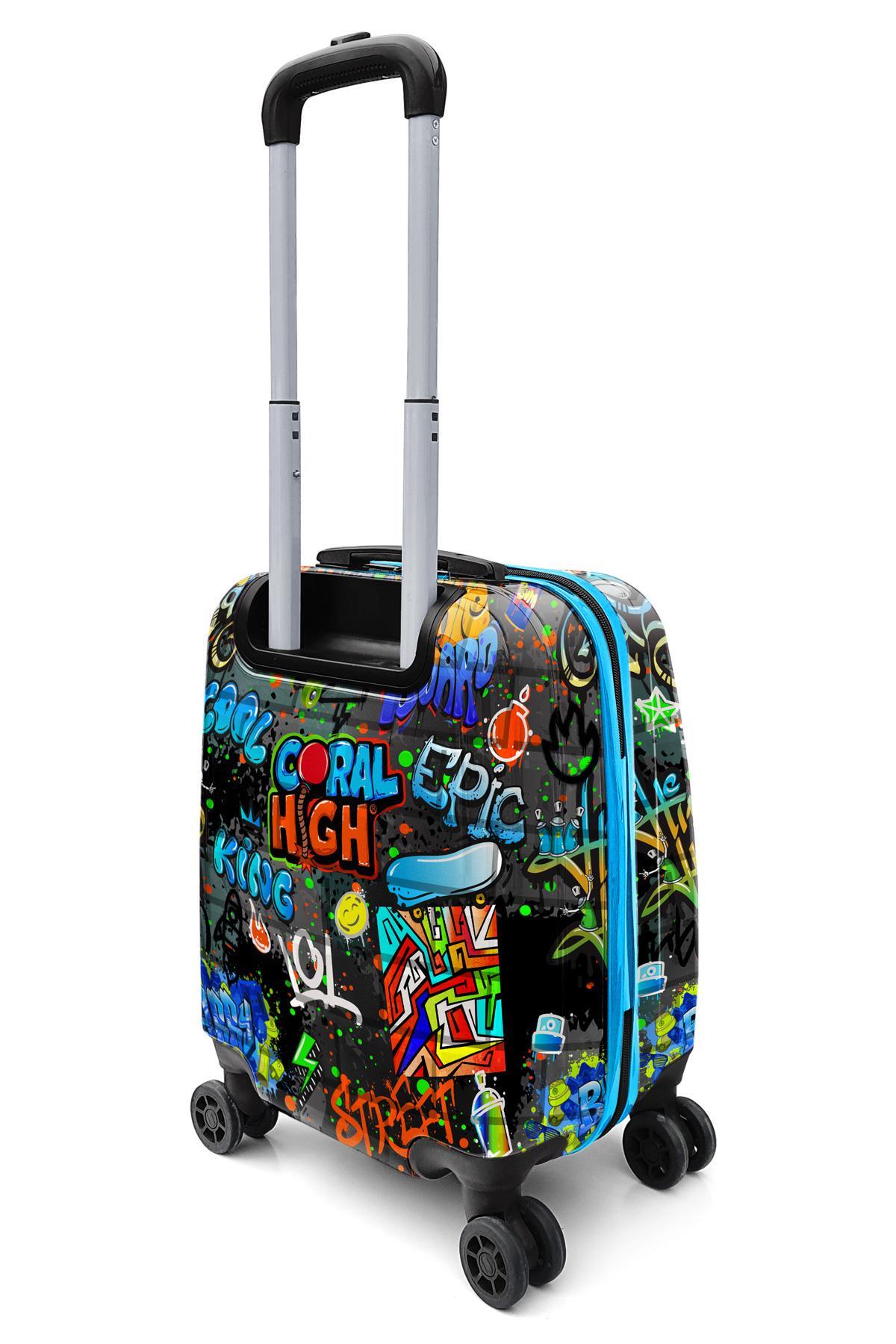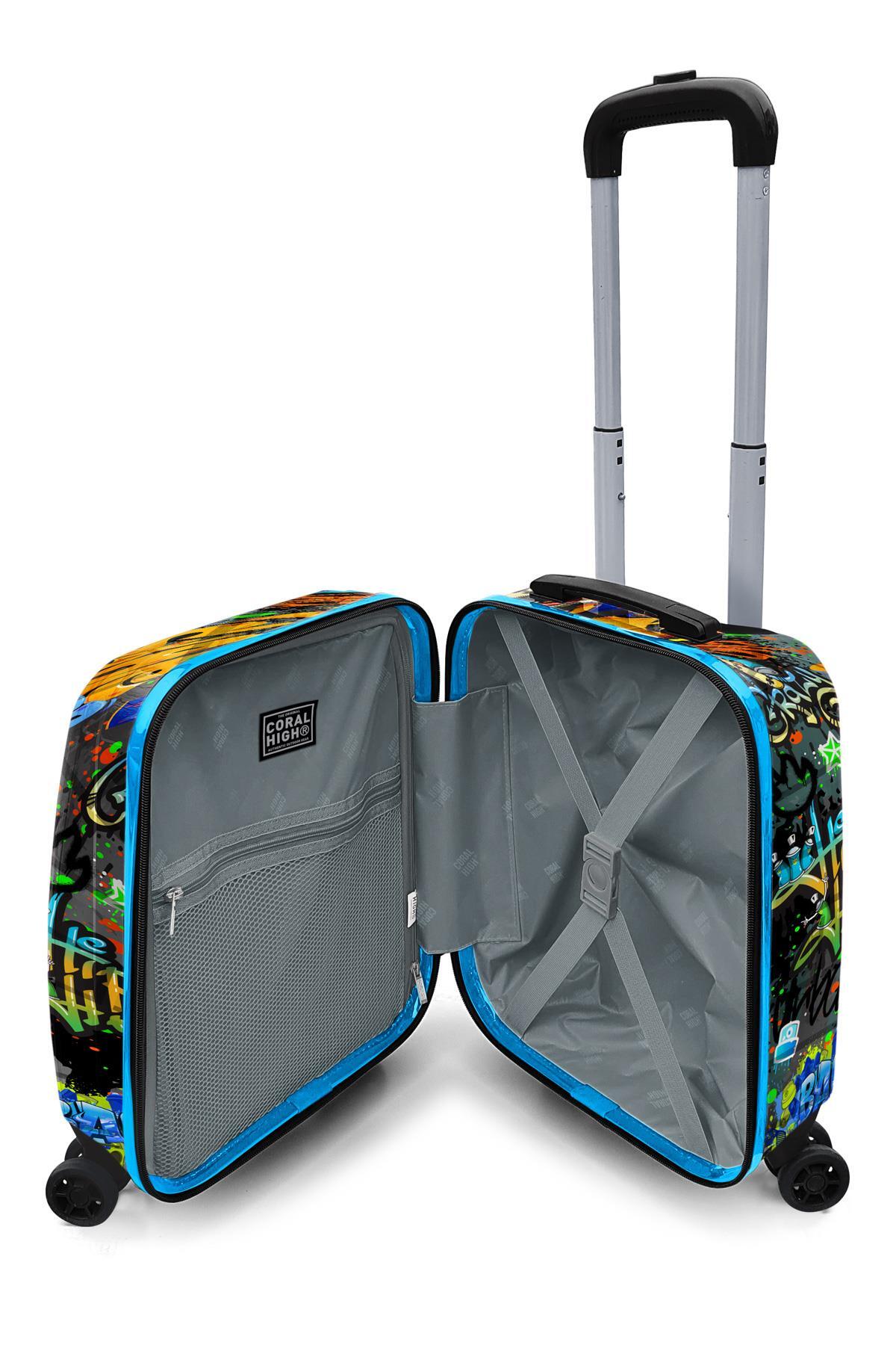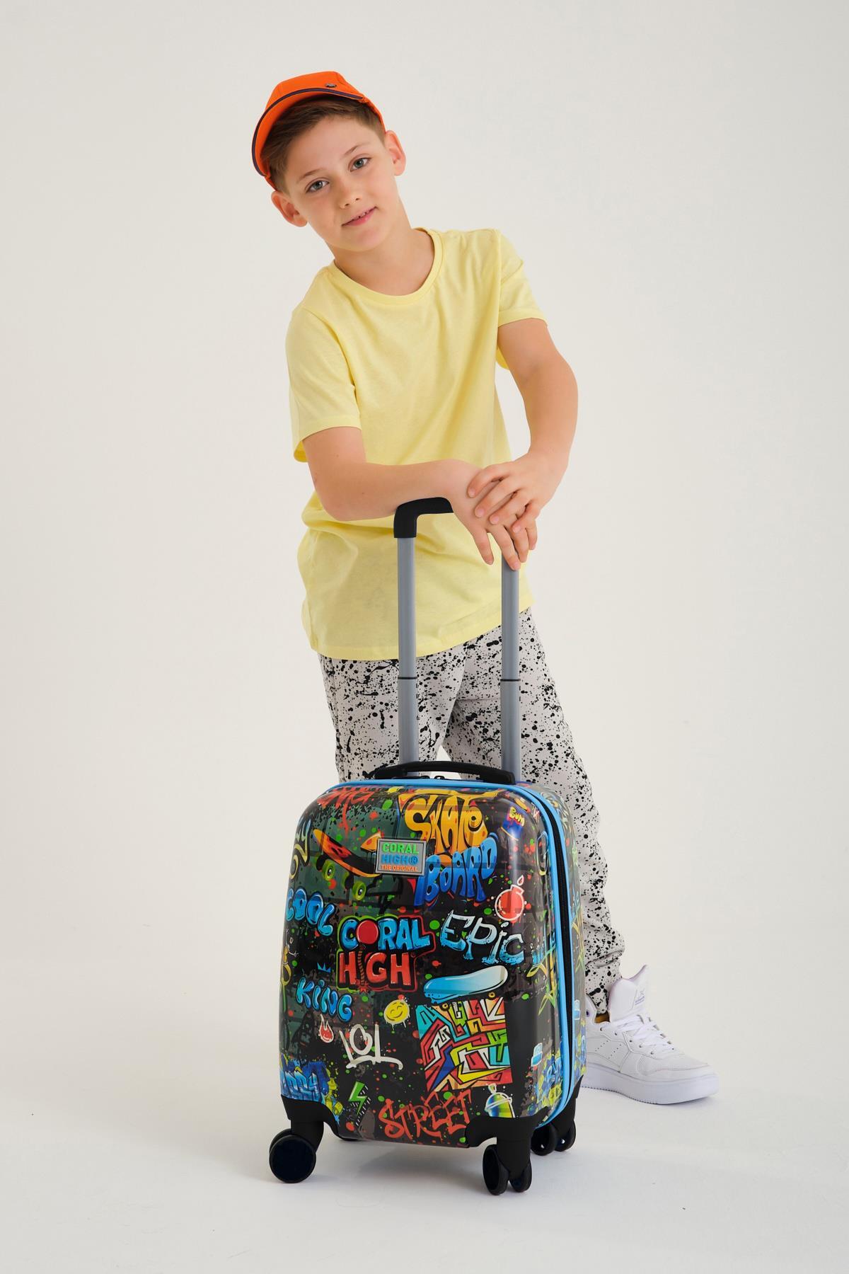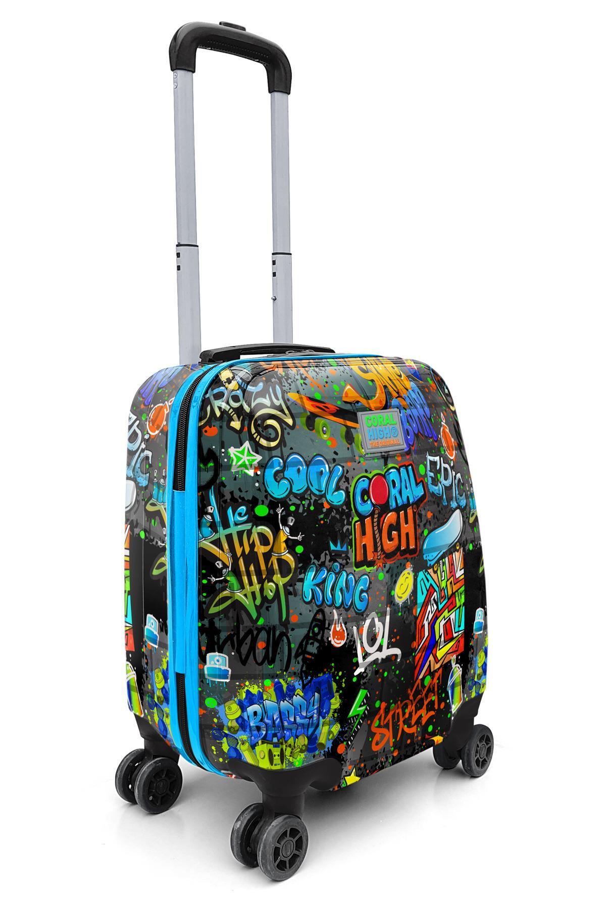 Coral High Kids Siyah Mavi Grafiti Desenli Çocuk Valizi 16760