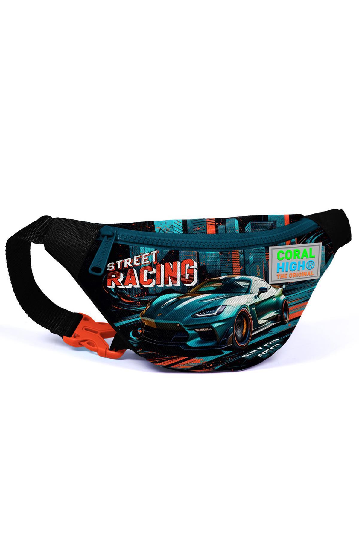 Coral High Kids Siyah Nefti Yarış Arabası Desenli Bel Çantası 11517