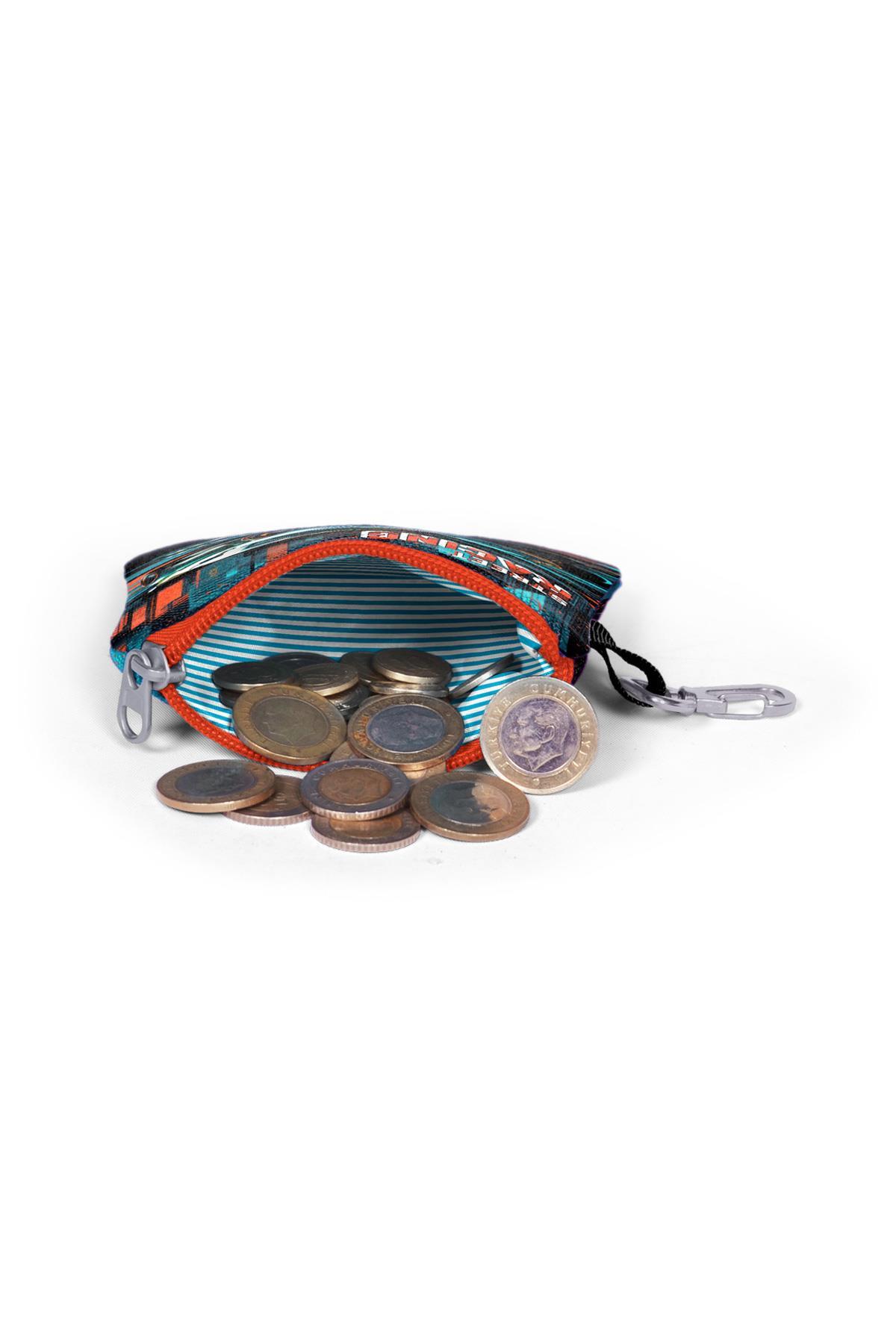 Tek bölmeli, fermuarlı bozuk para cüzdanı.