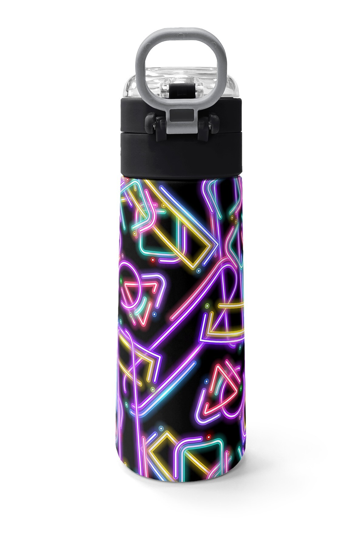 Coral High Kids Siyah Renkli Neon Desenli Pipetli ve Direkt İçim Çelik Termos 500 ml 38130