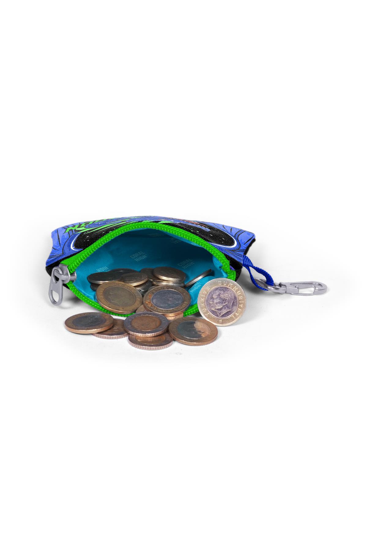 Tek bölmeli, fermuarlı bozuk para cüzdanı.