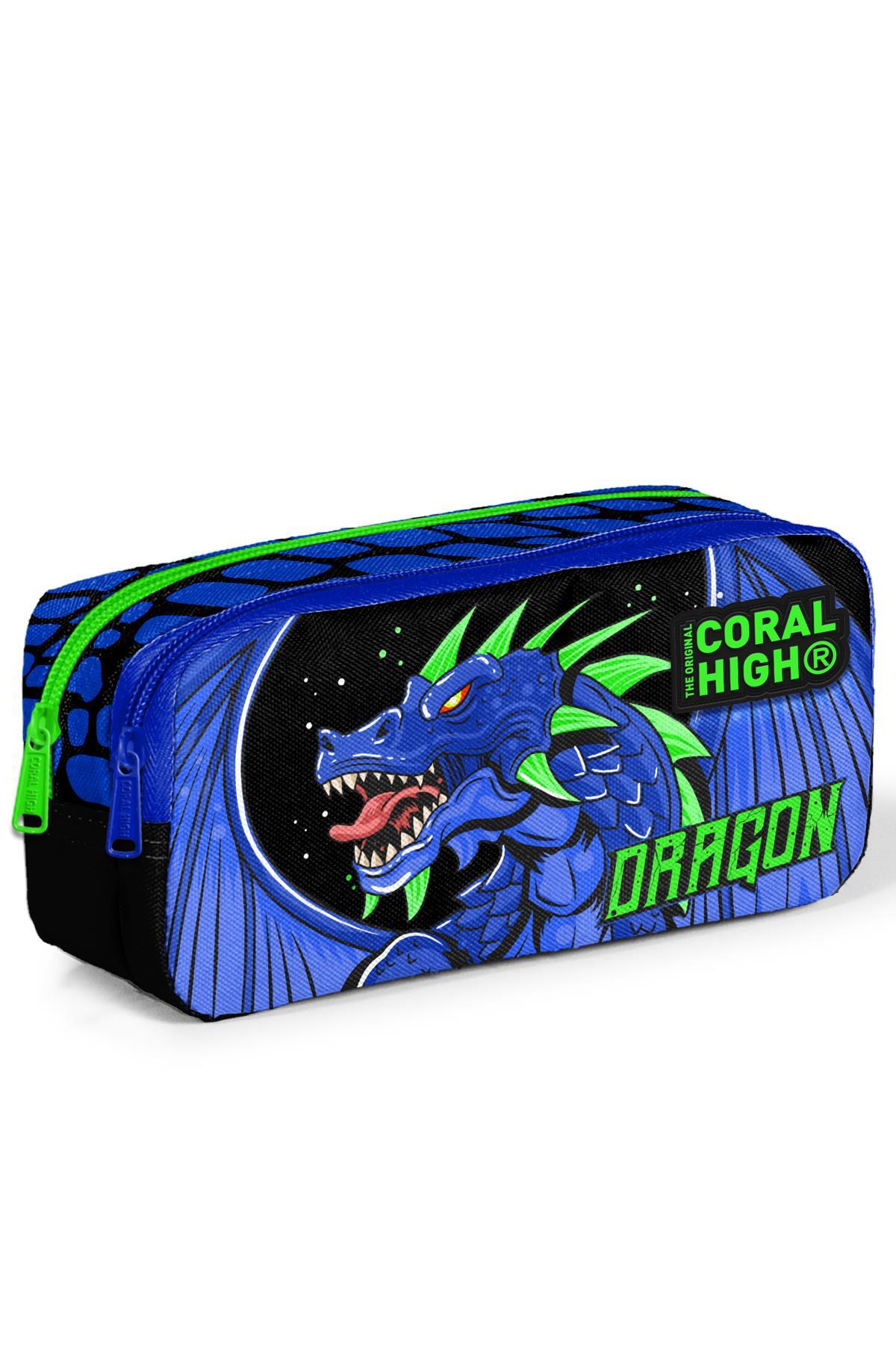 Coral High Kids Siyah Saks Ejderha Desenli İki Bölmeli Kalem Çantası 12057