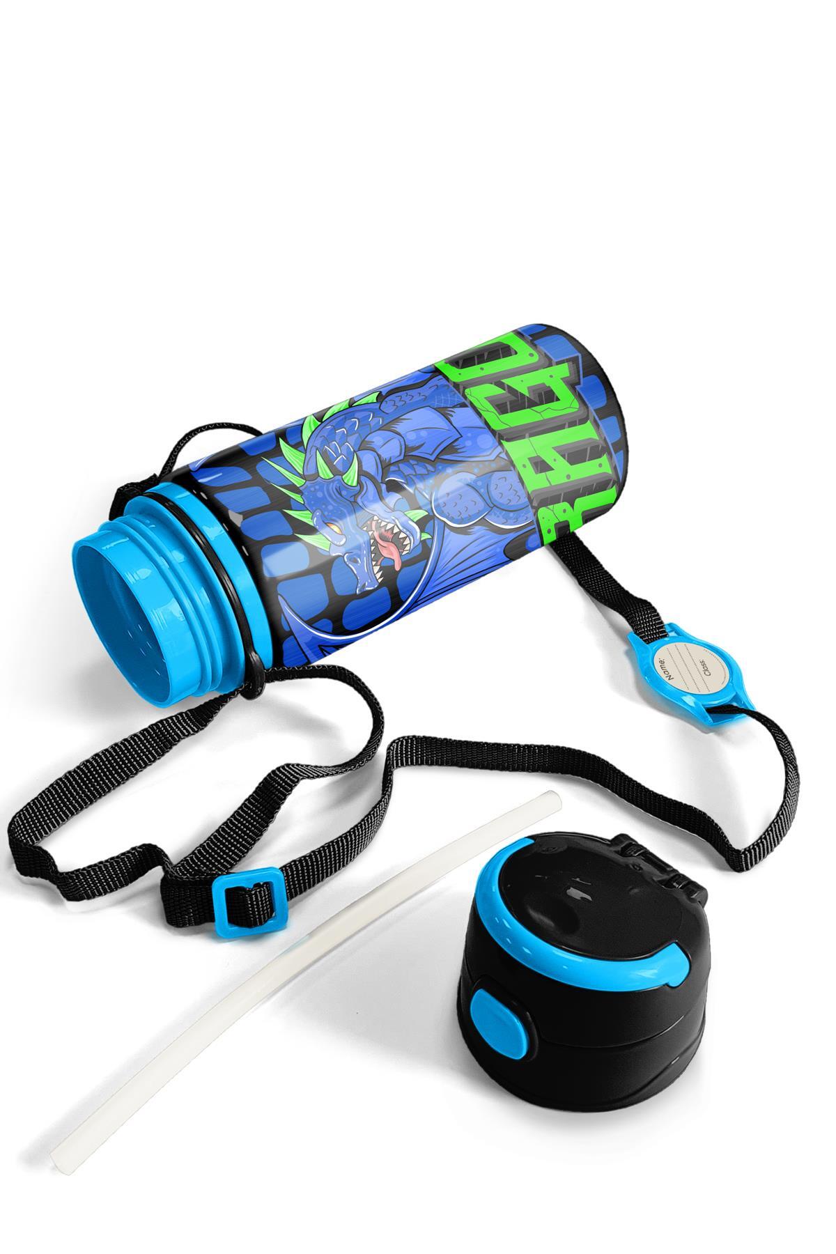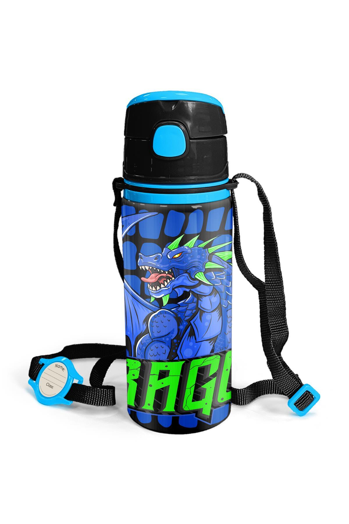 Coral High Kids Siyah Saks Ejderha Desenli Pipetli Alüminyum Matara 600 ml 11942