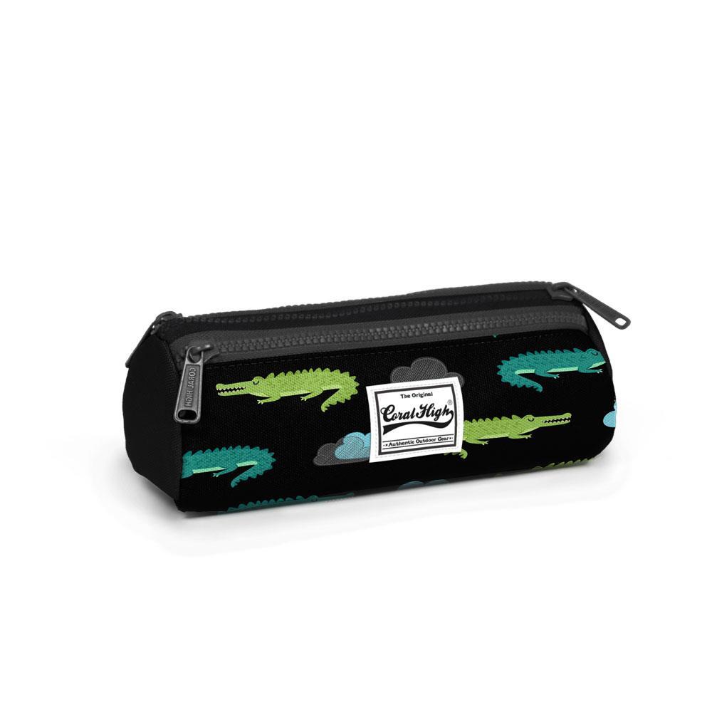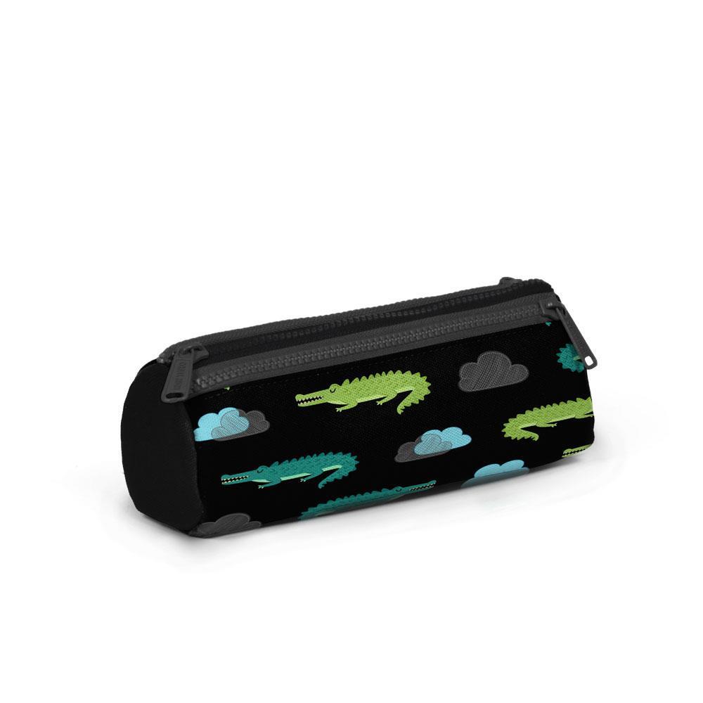 Üç bölmeli, fermuarlı kalem çantası.