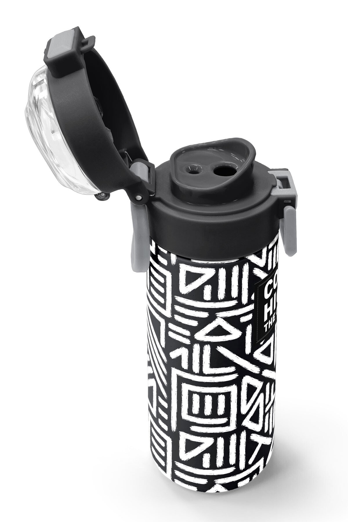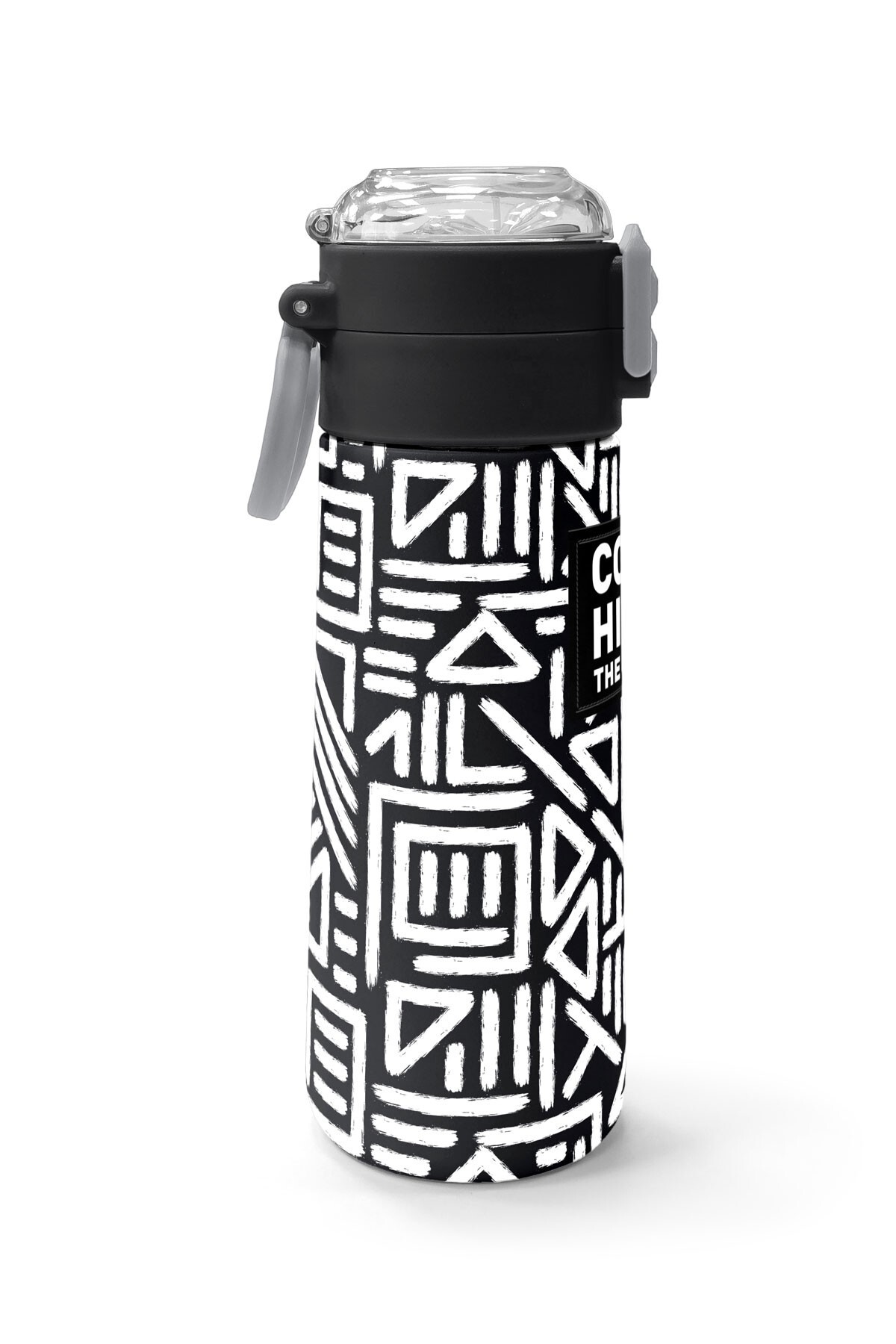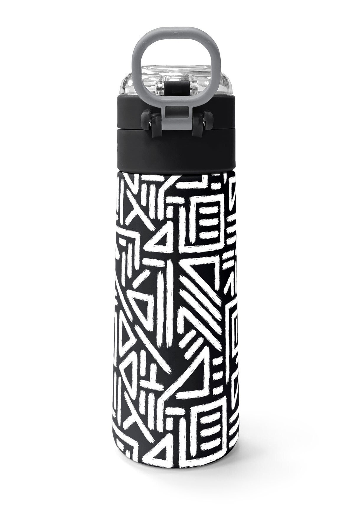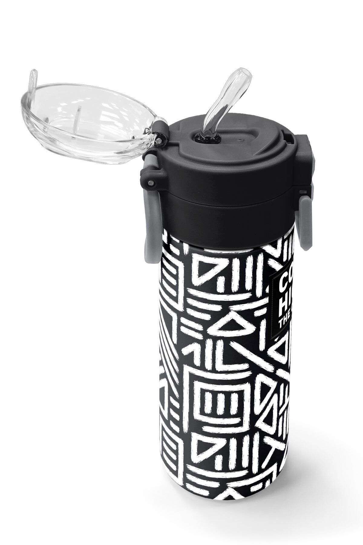 Coral High Kids SiyahBeyaz Geometrik Desenli Pipetli ve Direkt İçim Çelik Termos 500 ml 31882