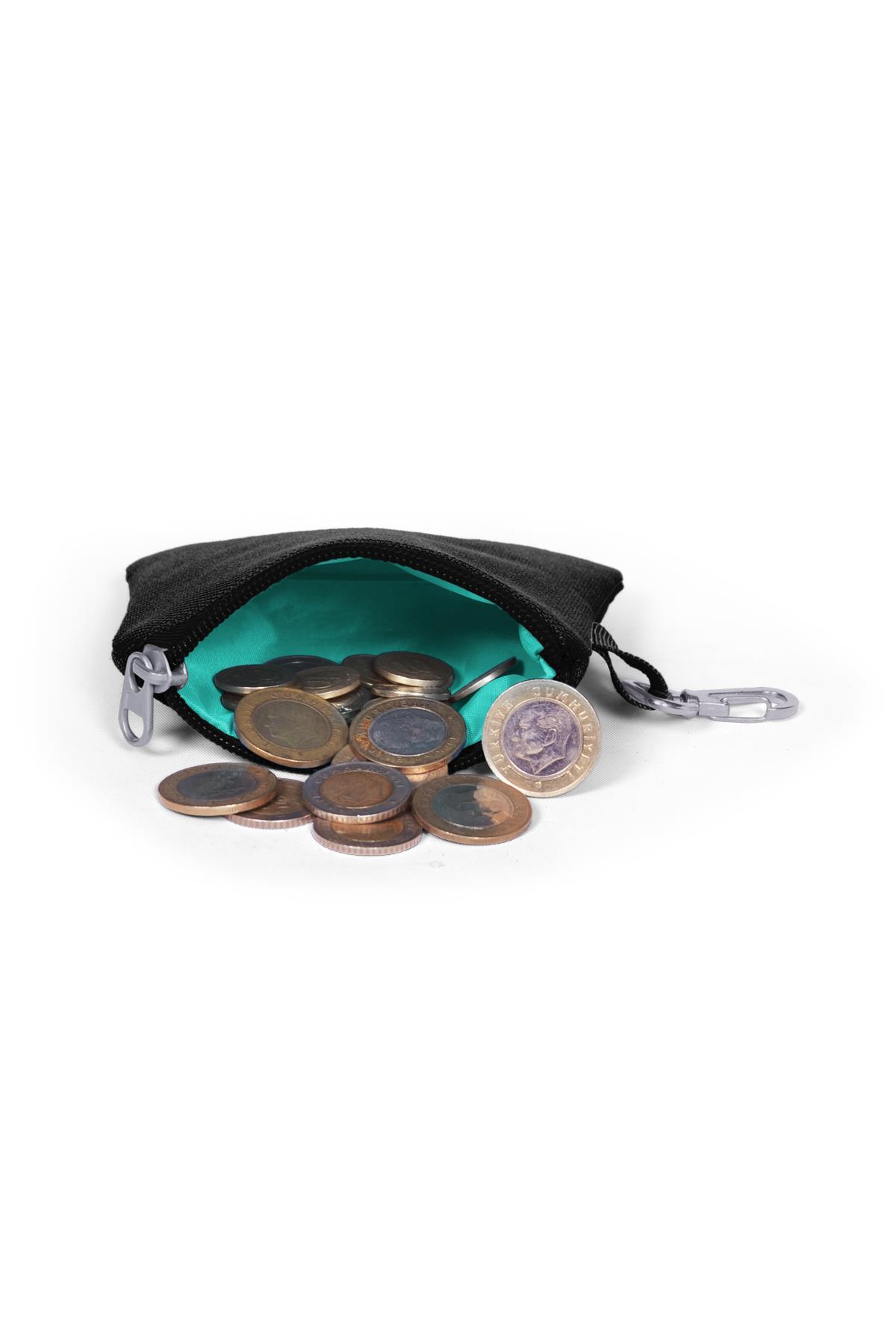 Tek bölmeli, fermuarlı bozuk para cüzdanı.