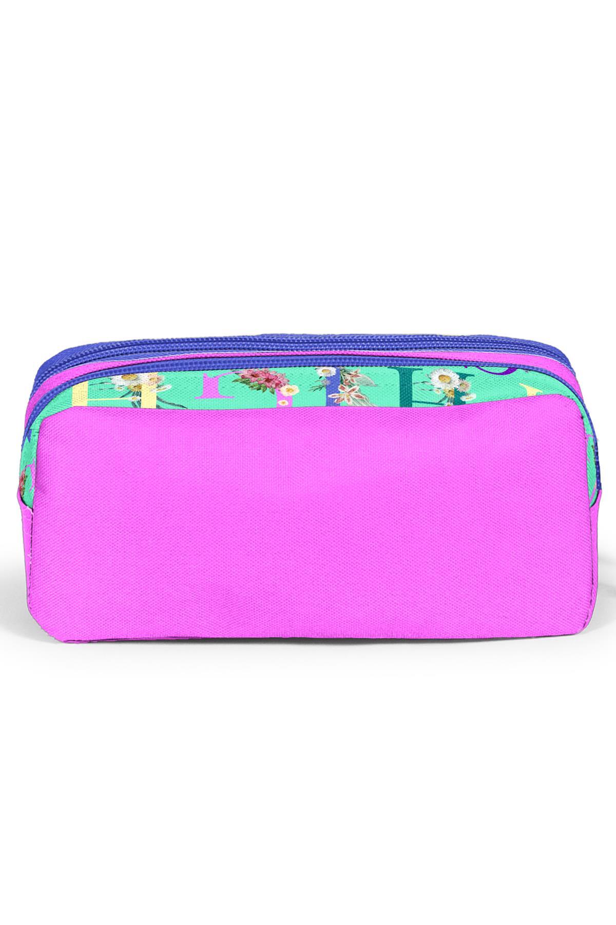 Coral High Kids Su Yeşili Açık Pembe Monogram Desenli İki Bölmeli Kalem Çantası 22156