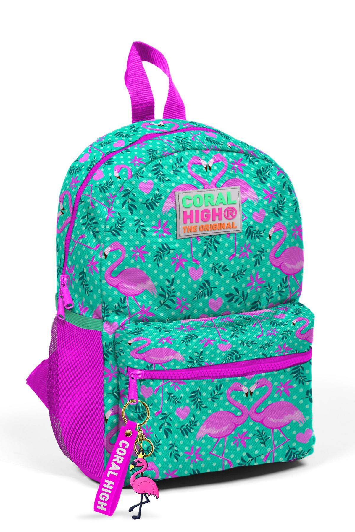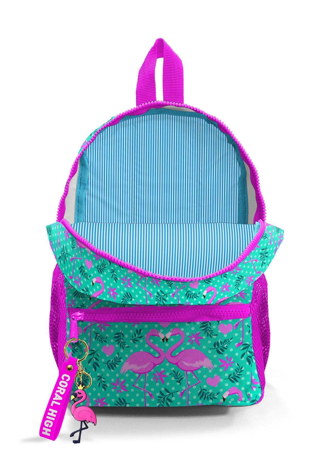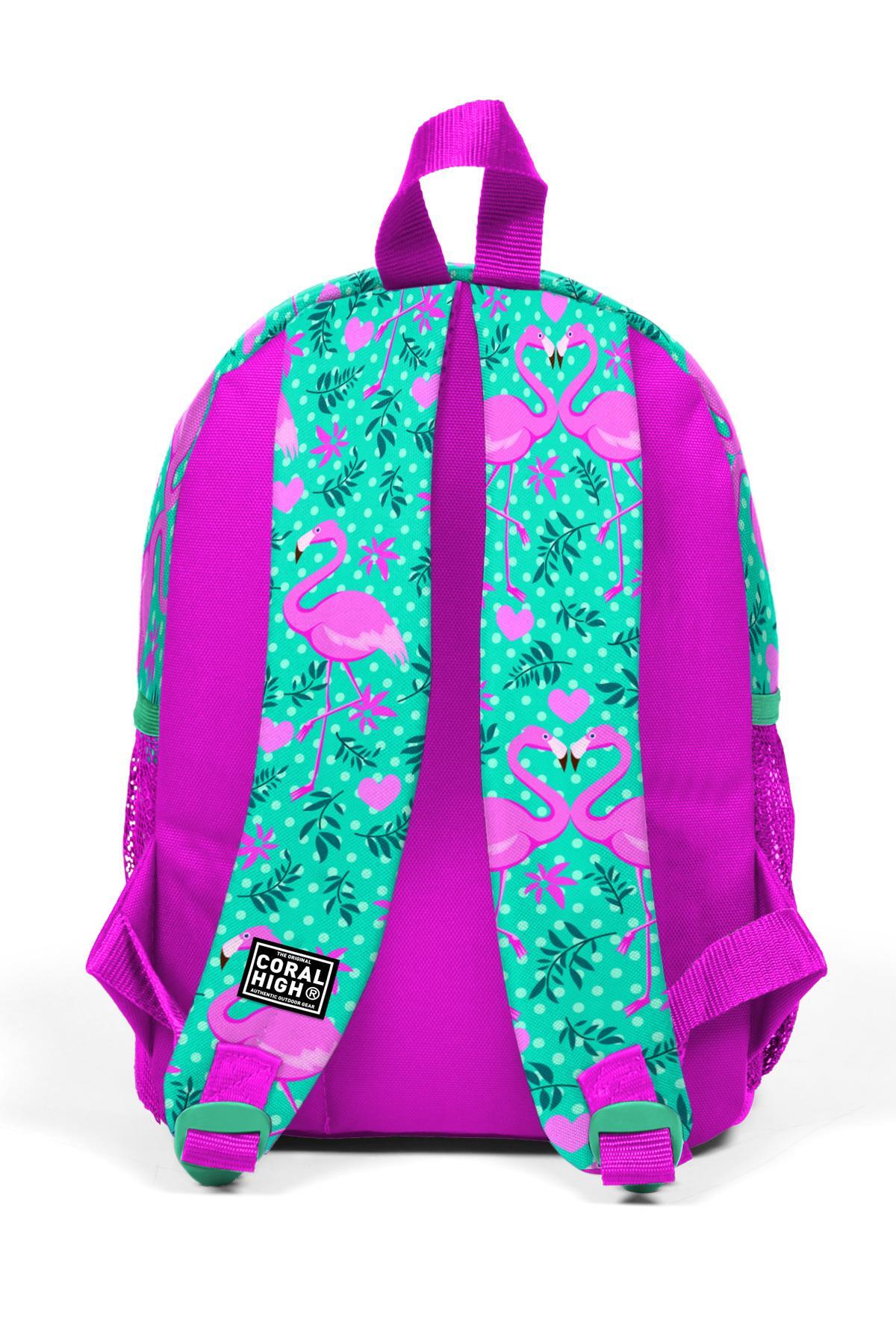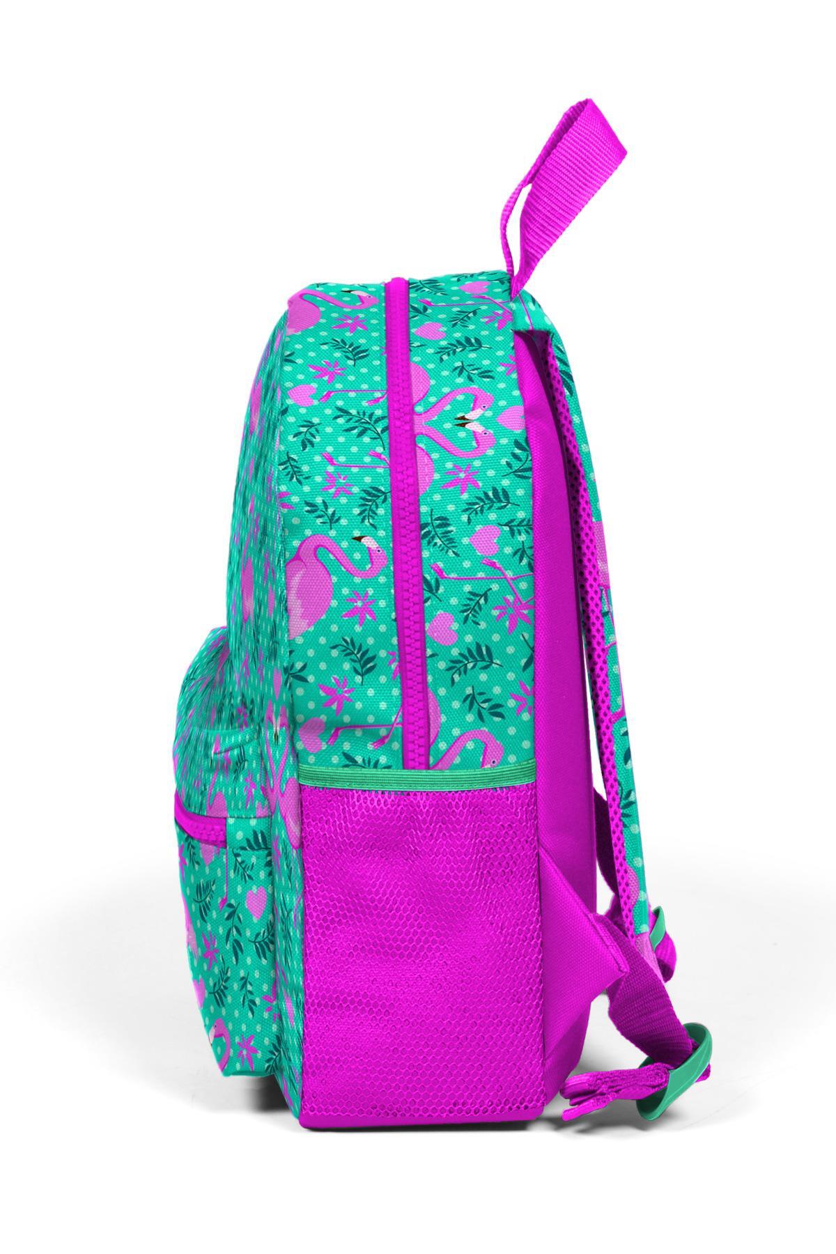 Minik Yuva Sırt Çantası Su Yeşili Pembe Flamingo Desenli İki Bölmeli 23512