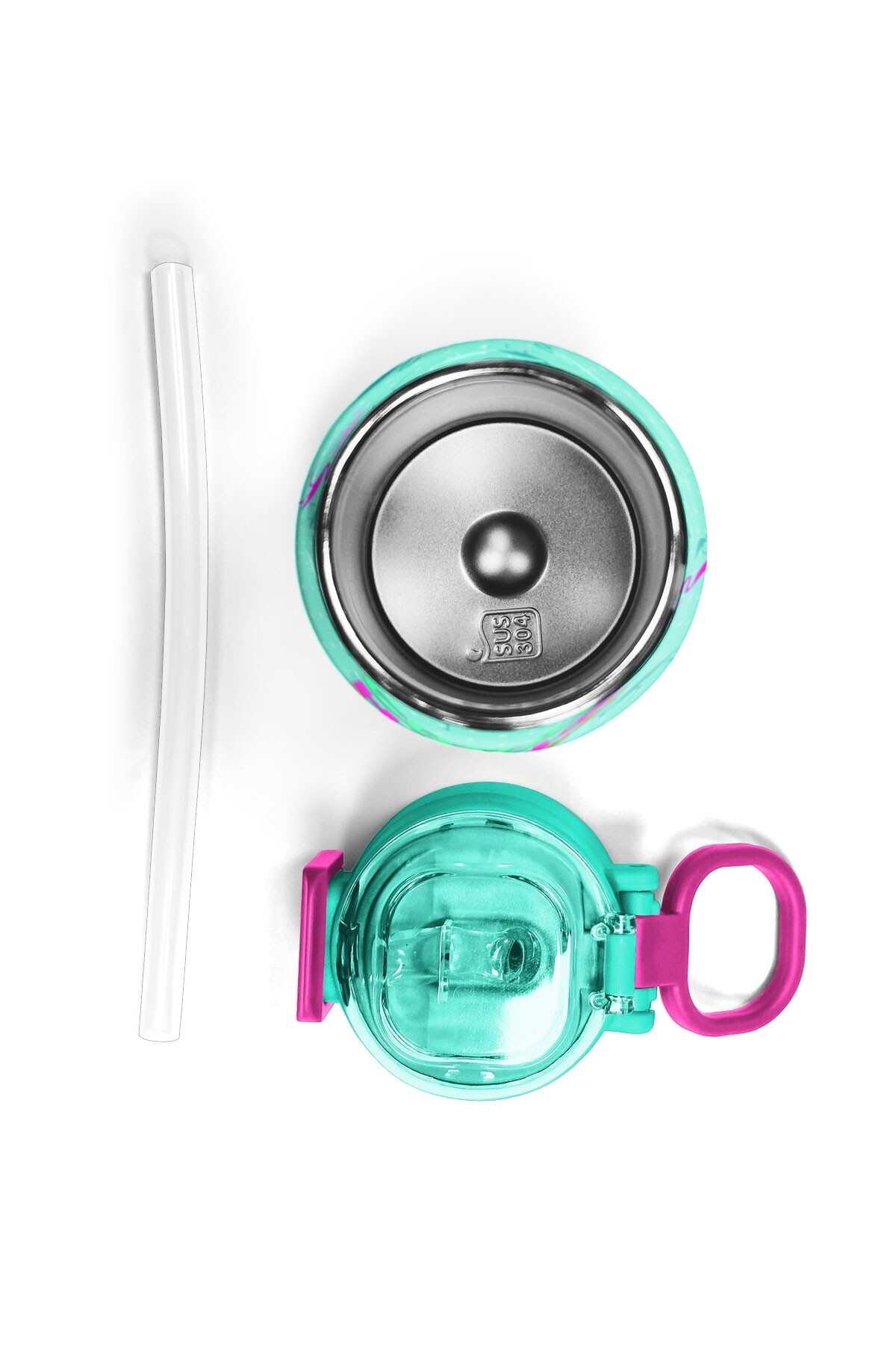 Coral High Kids Su Yeşili Neon Pembe Flamingo Desenli Pipetli ve Direkt İçim Çelik Termos 500 ml 31904