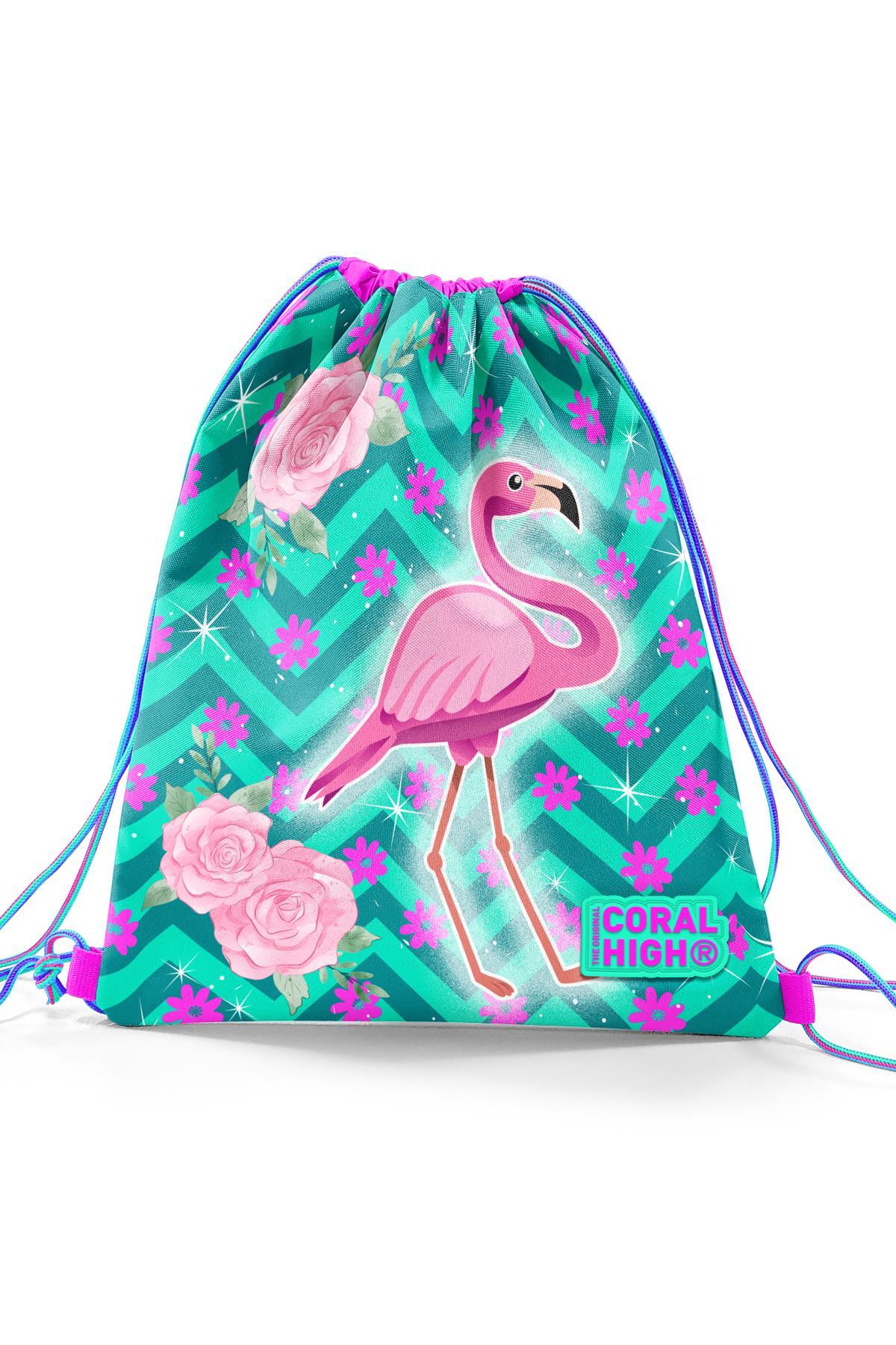 Coral High Kids Su Yeşili Pembe Flamingo Desenli İpli Büzgülü Sırt Çantası 22481