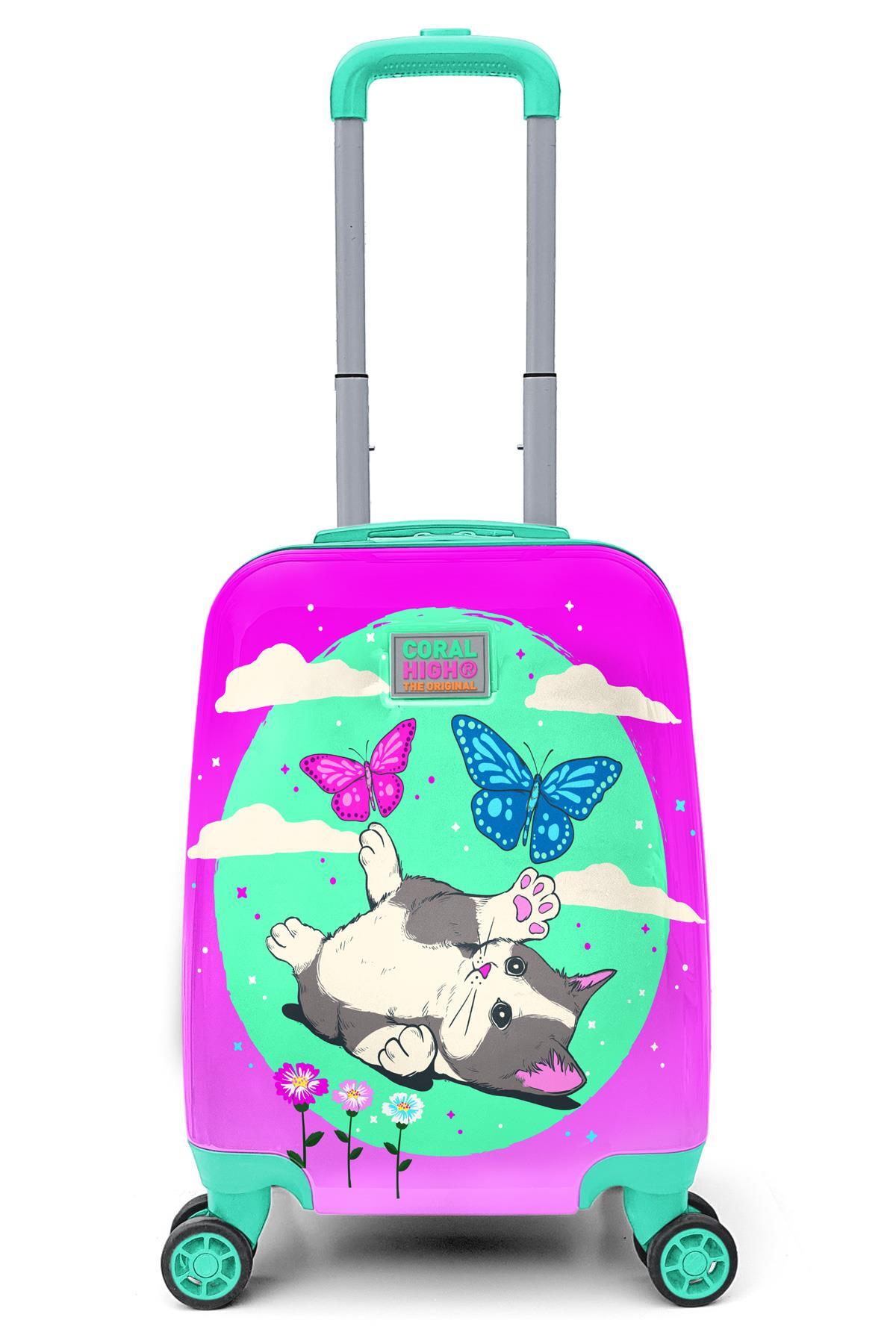 Coral High Kids Su Yeşili Pembe Kedi Desenli Çocuk Valizi 16709