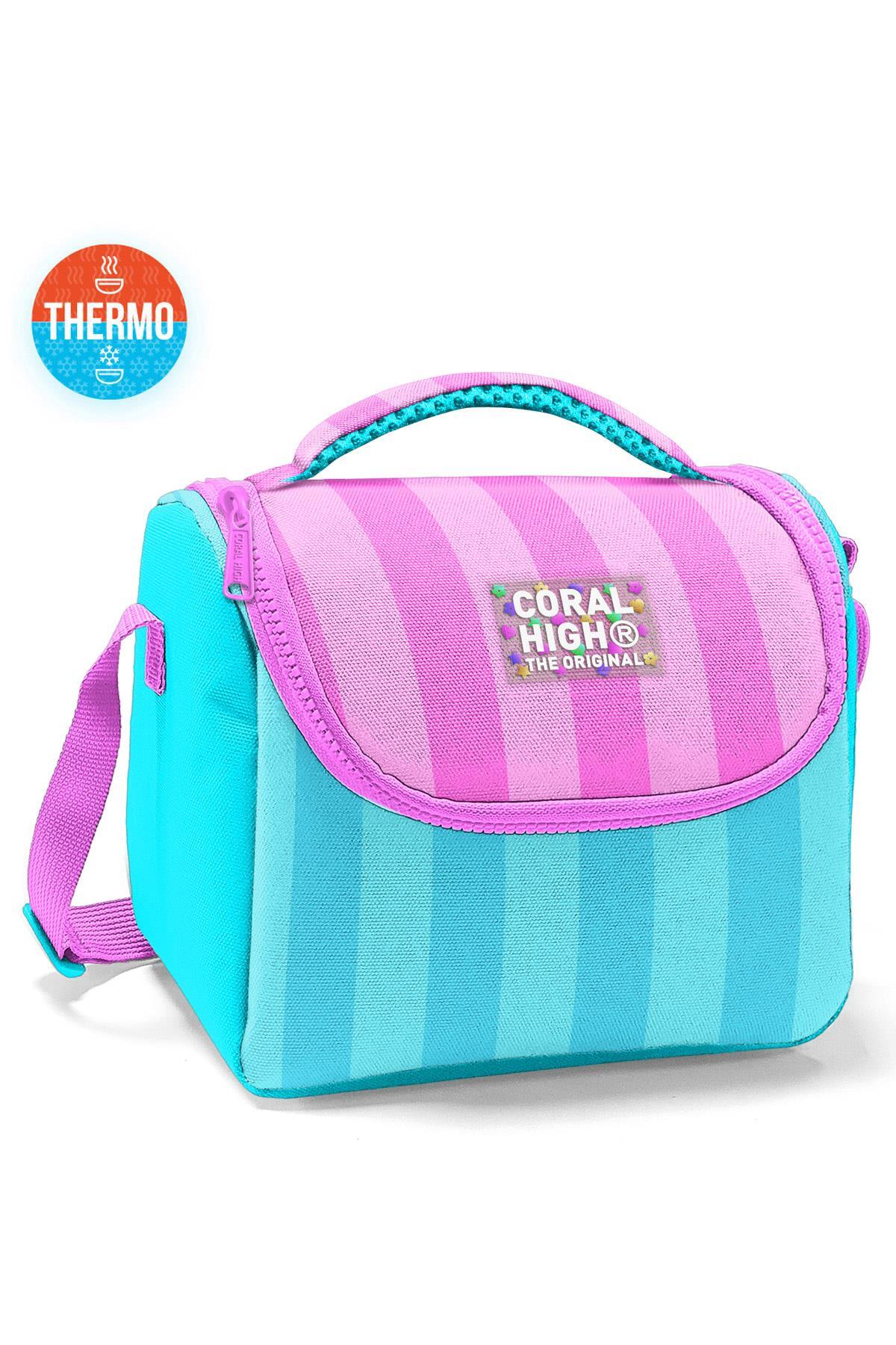 Coral High Kids Turkuaz Pembe Çizgili Thermo Beslenme Çantas 11787