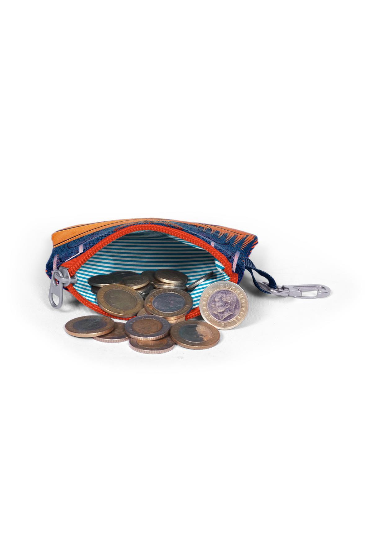 Tek bölmeli, fermuarlı bozuk para cüzdanı.