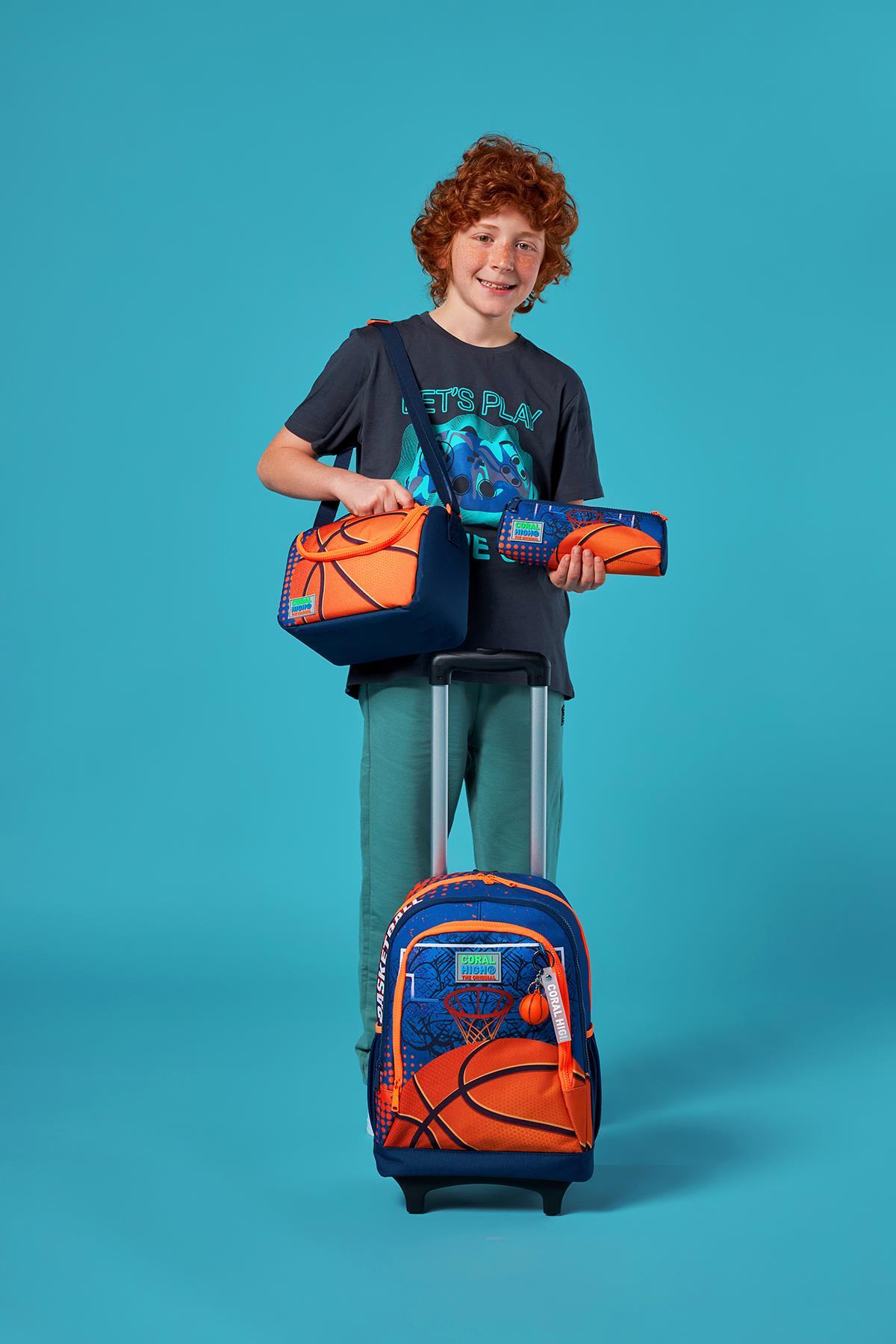 Coral High Kids Turuncu Lacivert Basketbol Desenli Üç Bölmeli Çekçekli 3'lü Çanta Seti SET0123966
