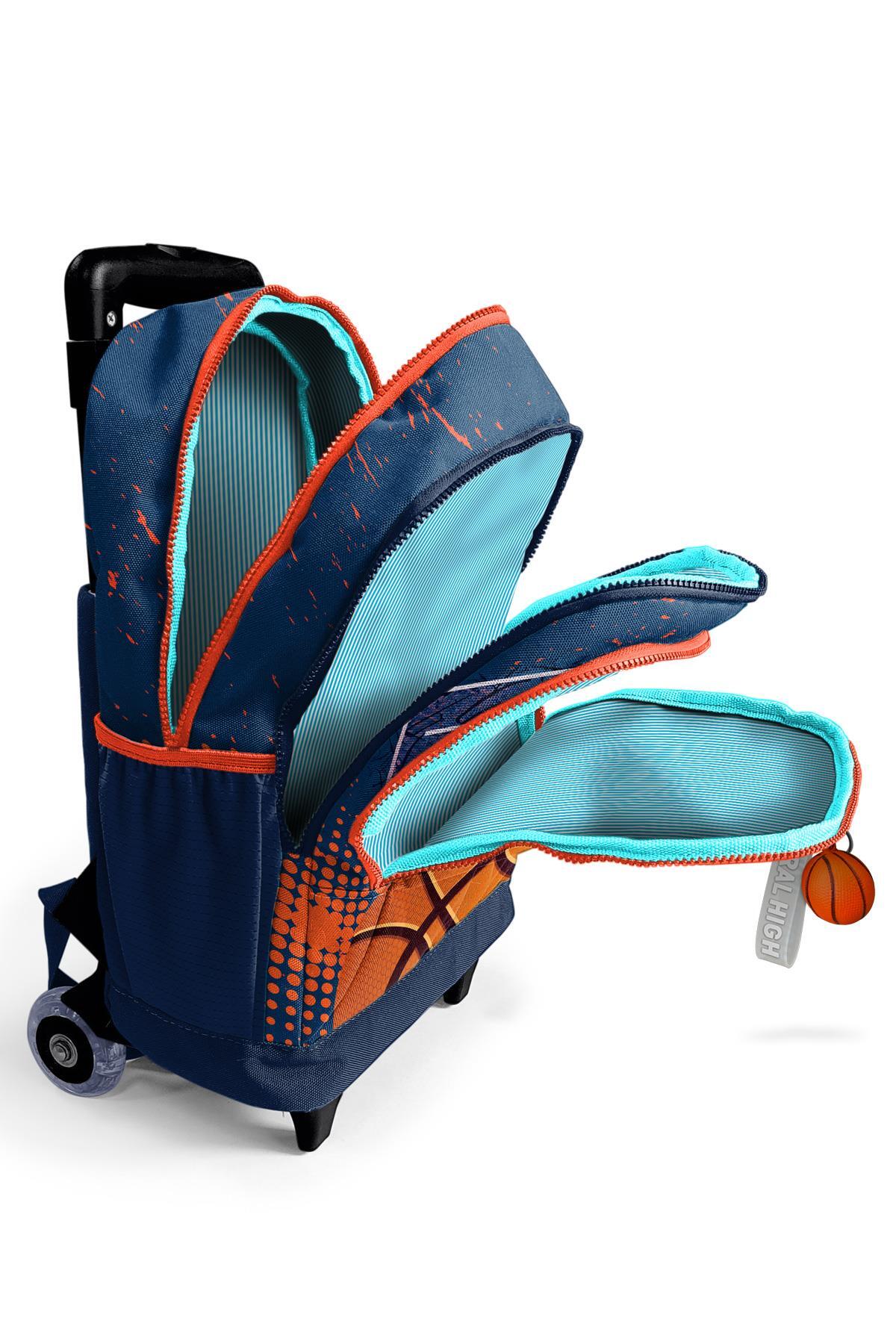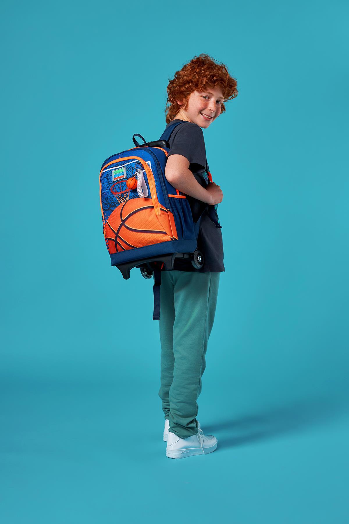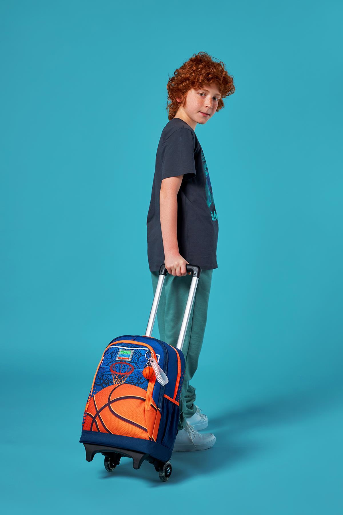 Coral High Kids Turuncu Lacivert Basketbol Desenli Üç Bölmeli Çekçekli Okul Sırt Çantası 23966