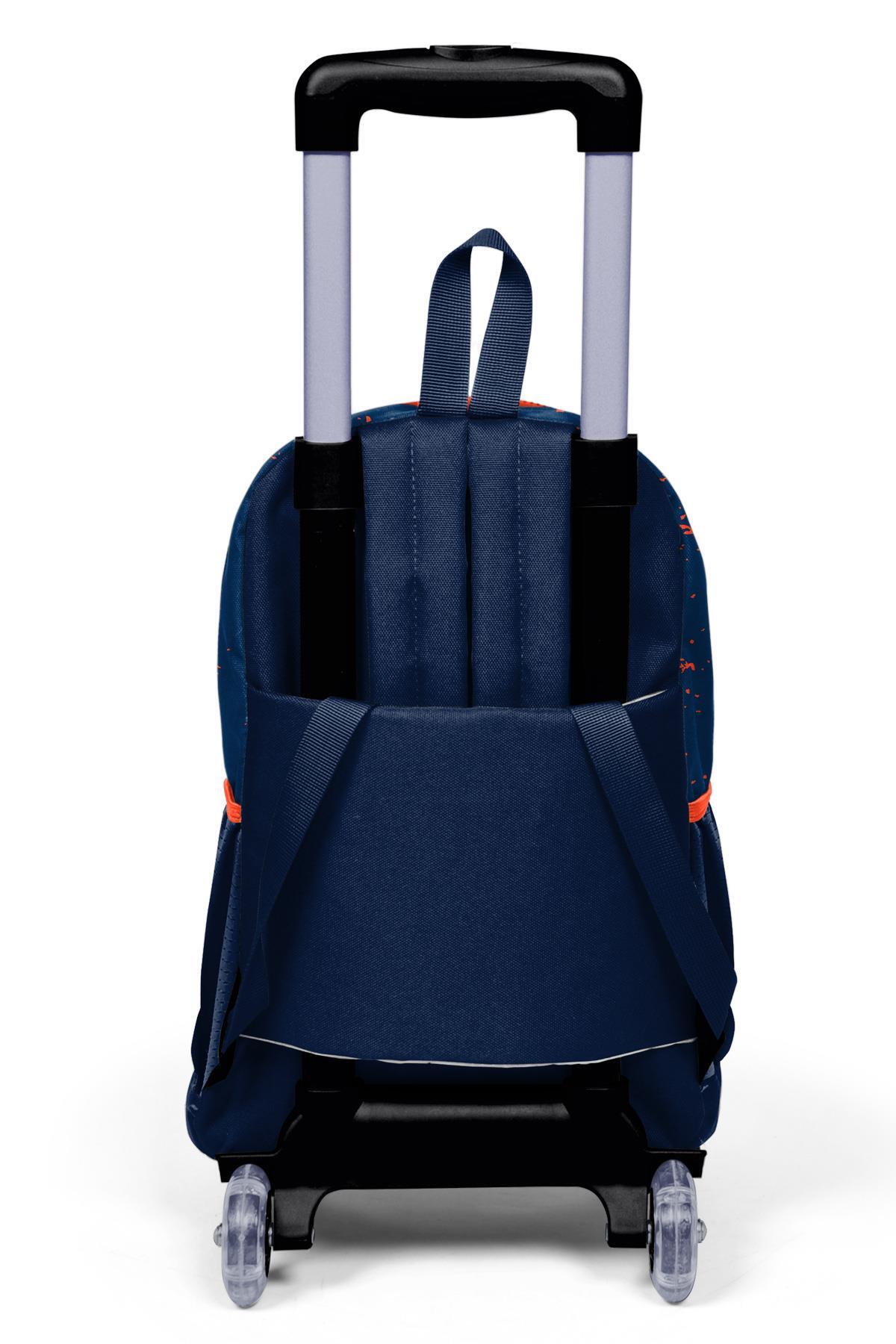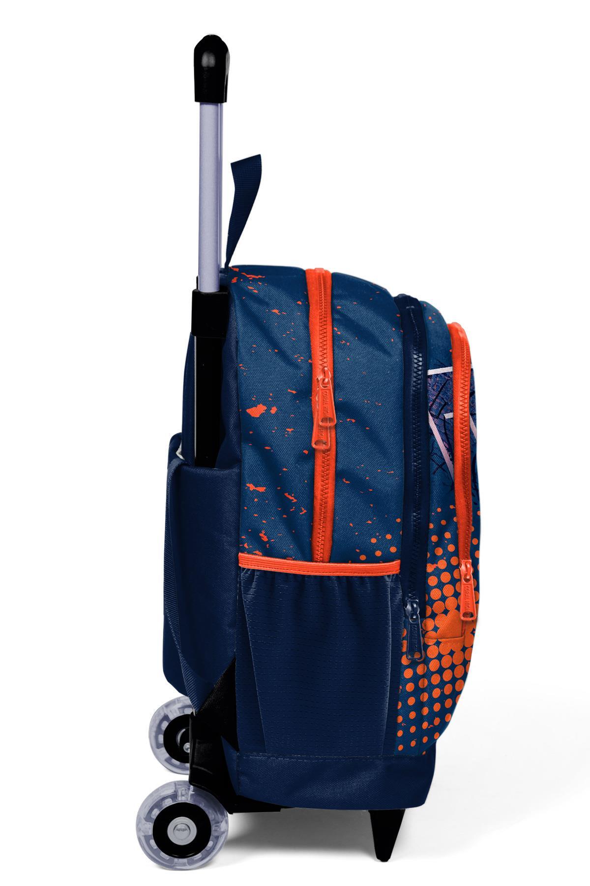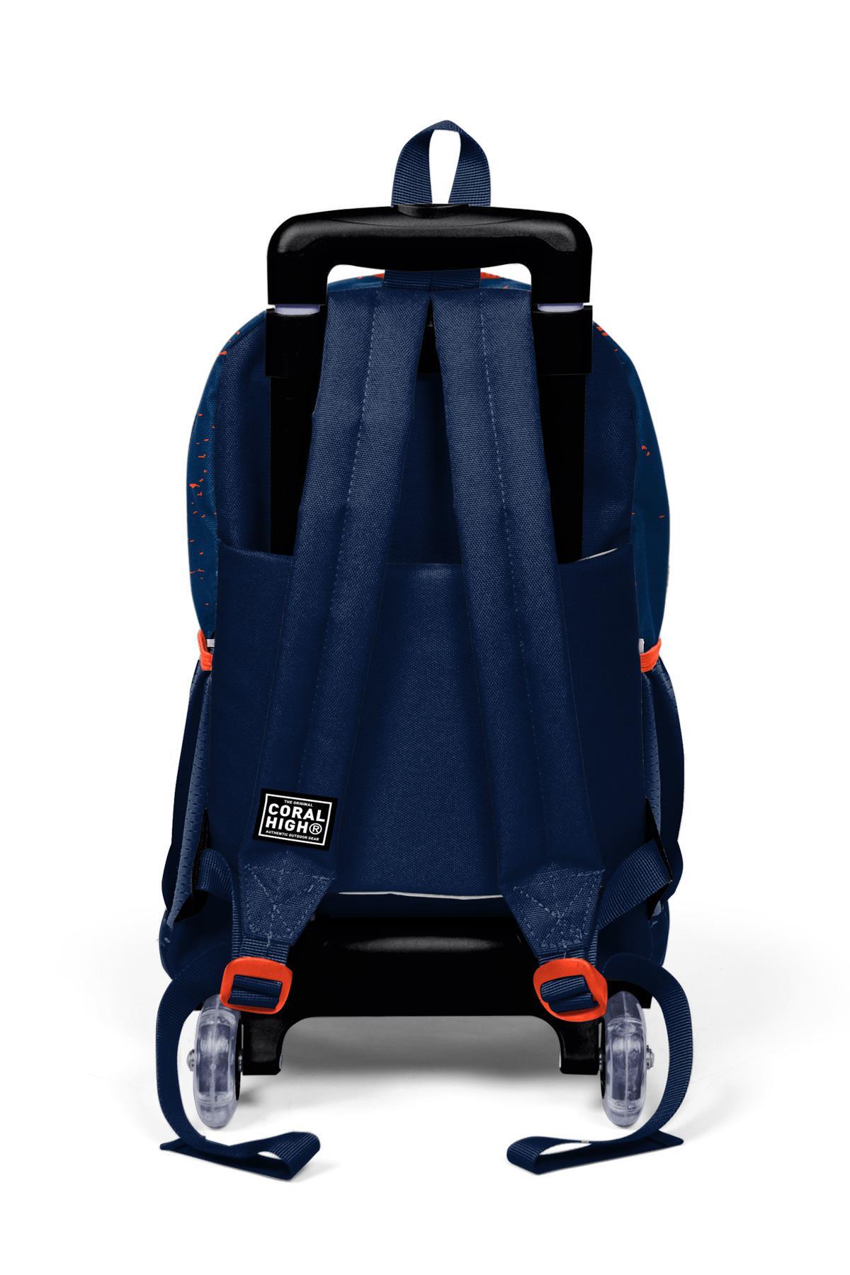 Coral High Kids Turuncu Lacivert Basketbol Desenli Üç Bölmeli Çekçekli Okul Sırt Çantası 23966