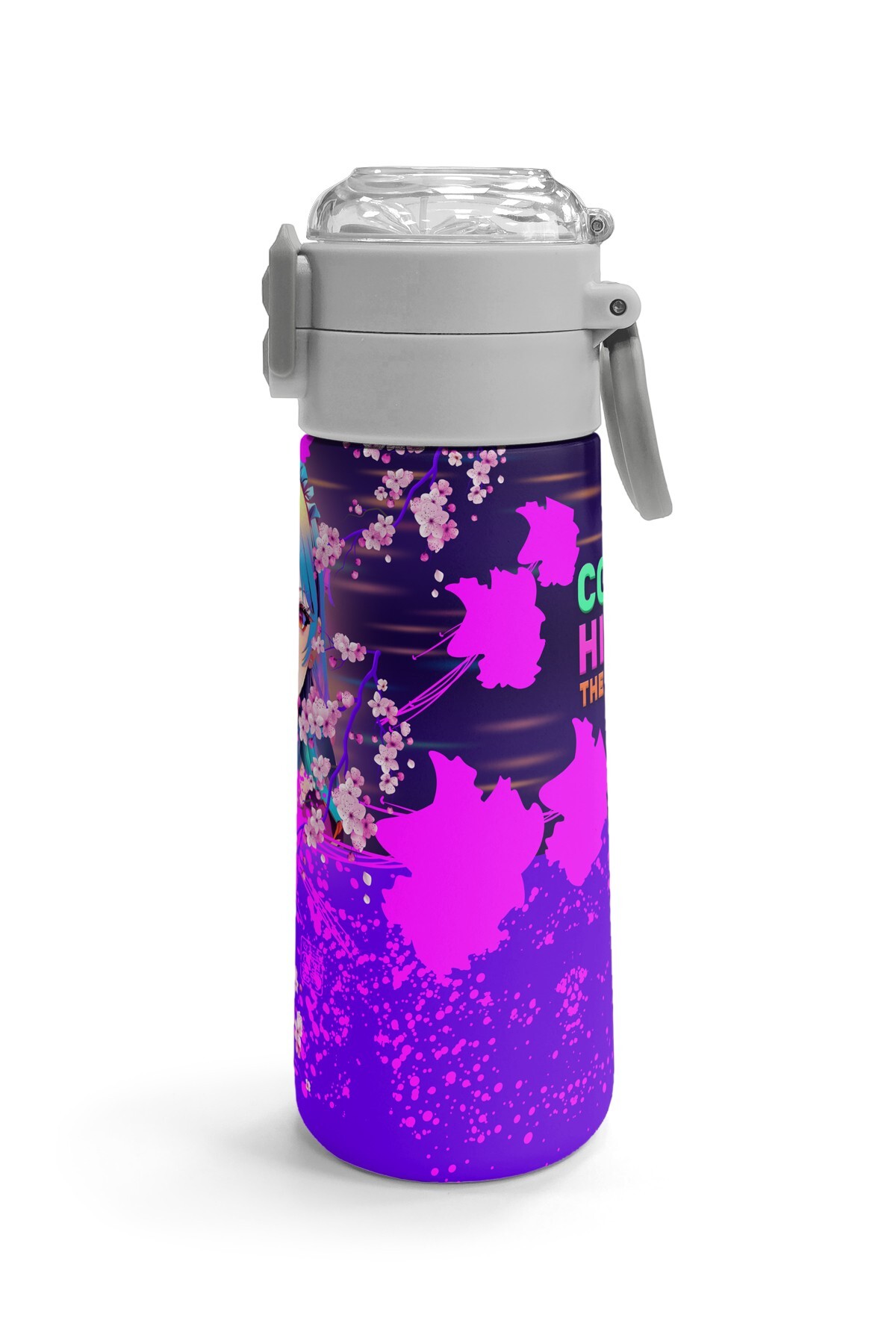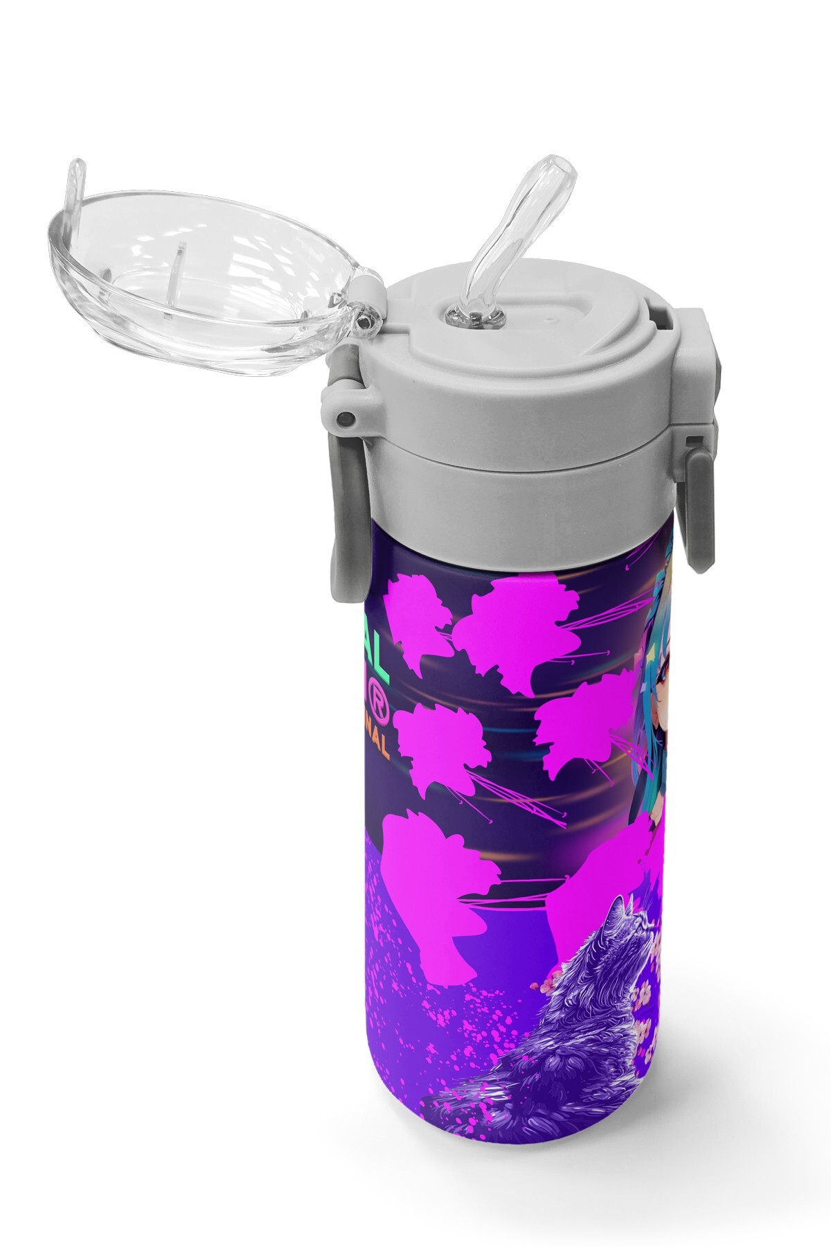 Coral High KidsMor Pembe Anime Kedi Desenli Pipetli ve Direkt İçim Çelik Termos 500 ml 31954