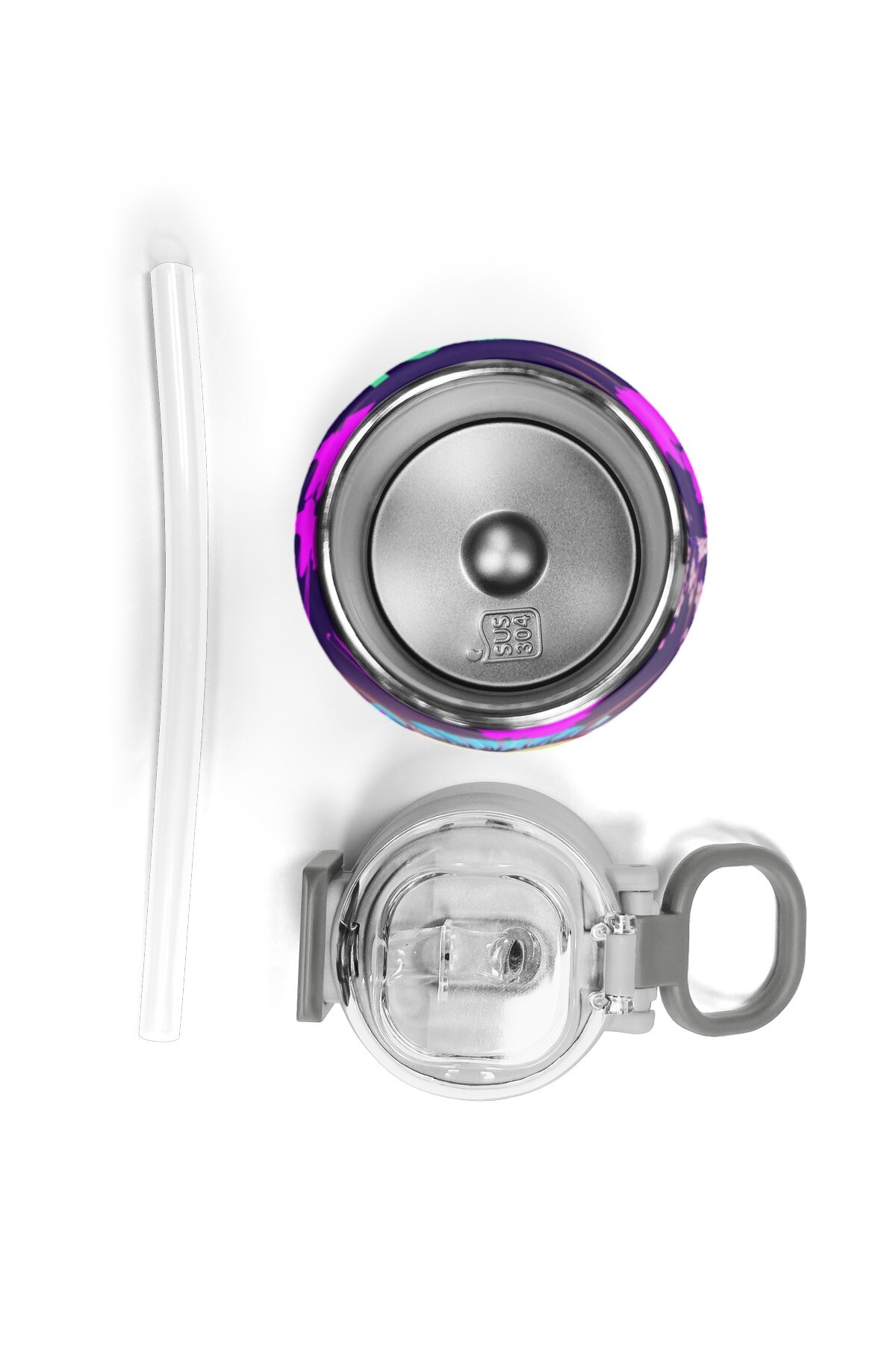 Coral High Kids Mor Renk Geçişli Desenli Pipetli ve Direkt İçim Çelik Termos 500 ml 31964