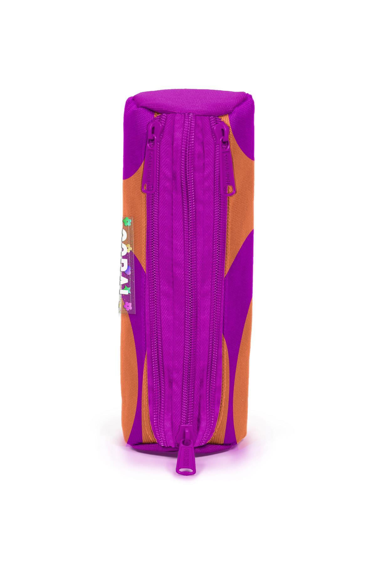 Coral High Koyu Pembe Turuncu Desenli Üç Bölmeli Kalem Çantası 11184