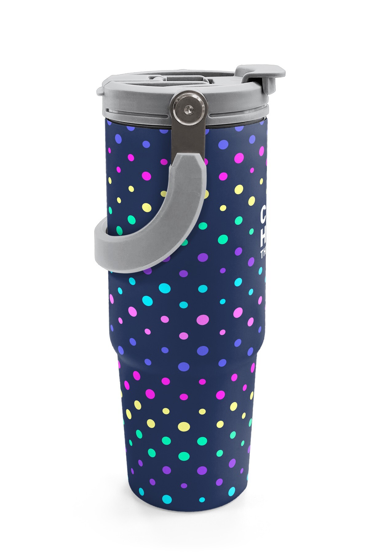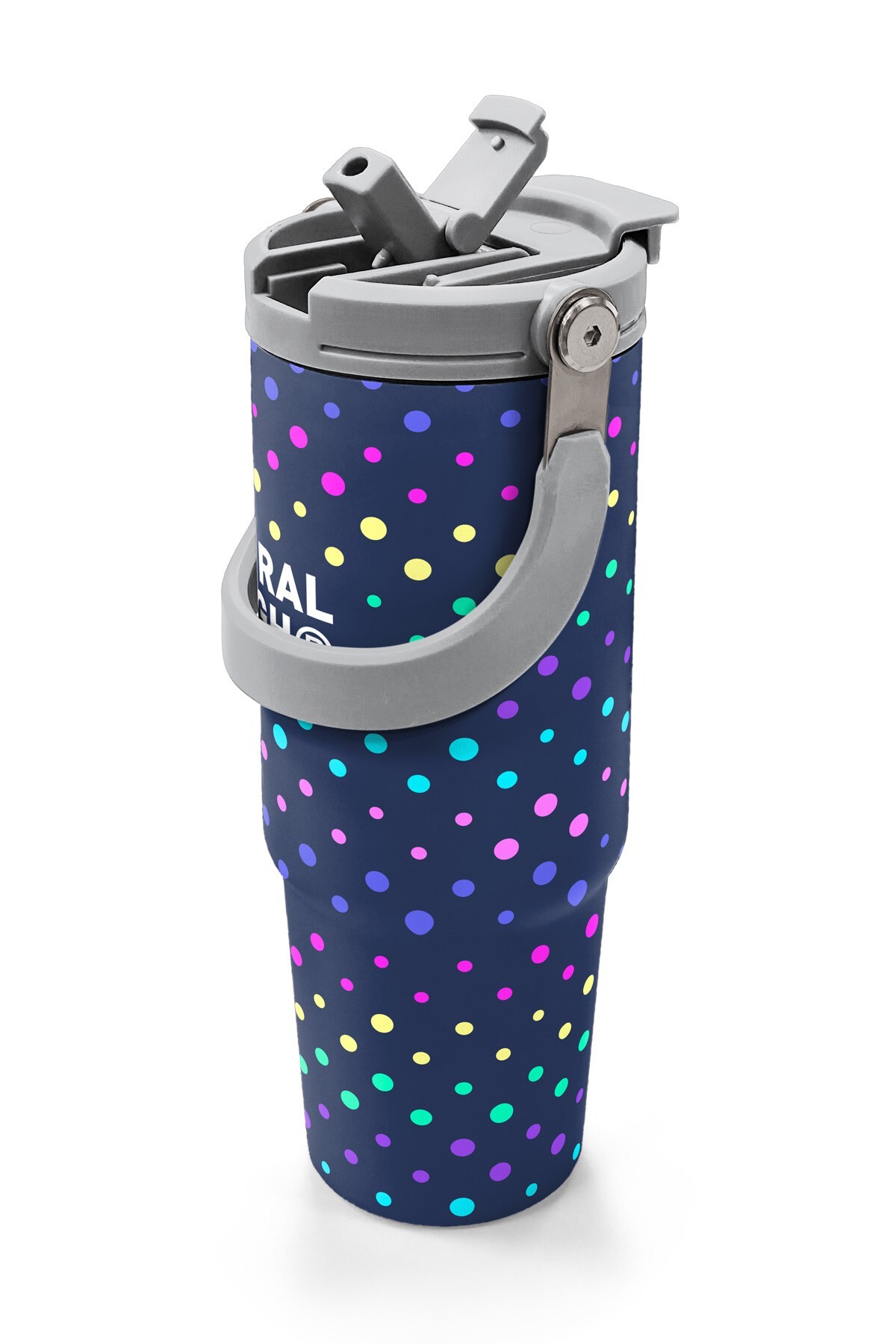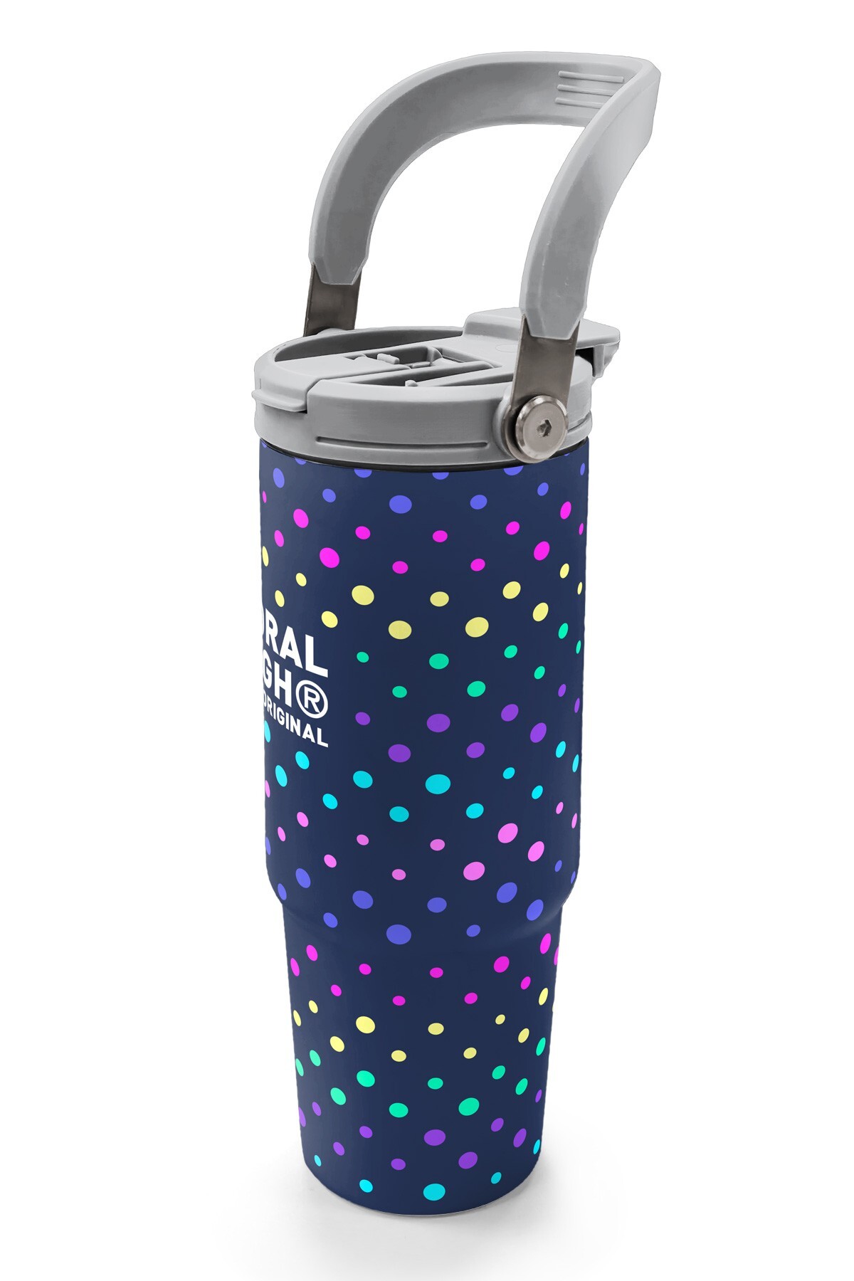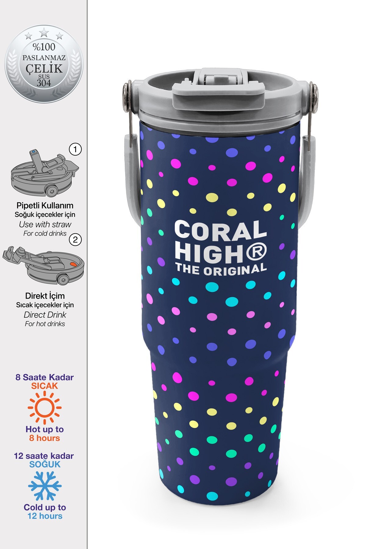Coral High Lacivert Puantiyeli Desenli Pipetli ve Direkt İçim Çelik Termos 900 ml 38714