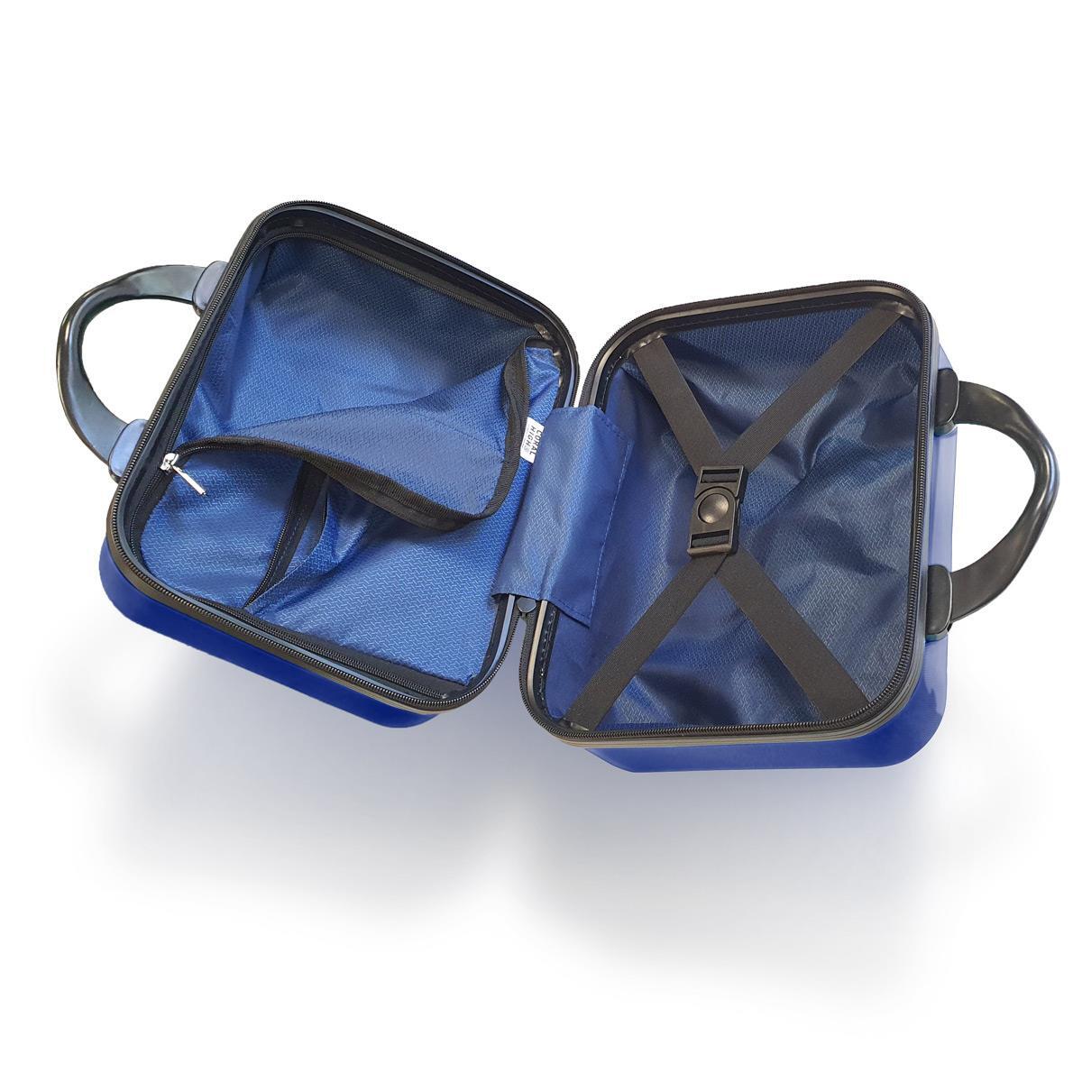 Valiz ve makyaj çantaları plastik taşıma kulpuna sahiptir.