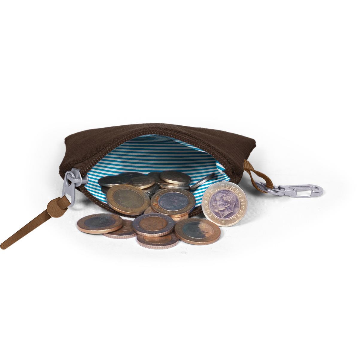 Tek bölmeli, fermuarlı bozuk para cüzdanı.