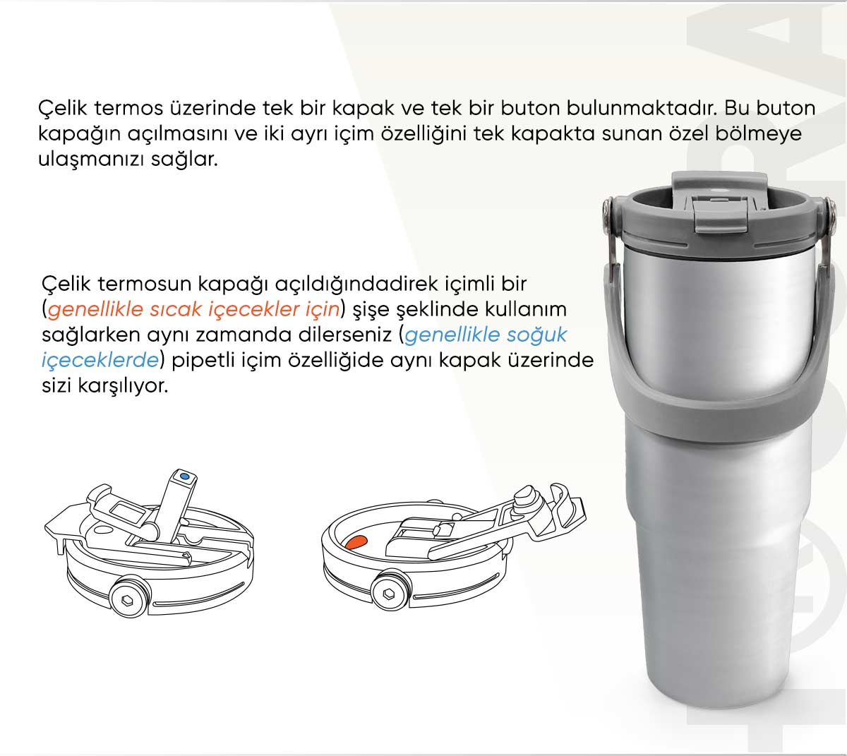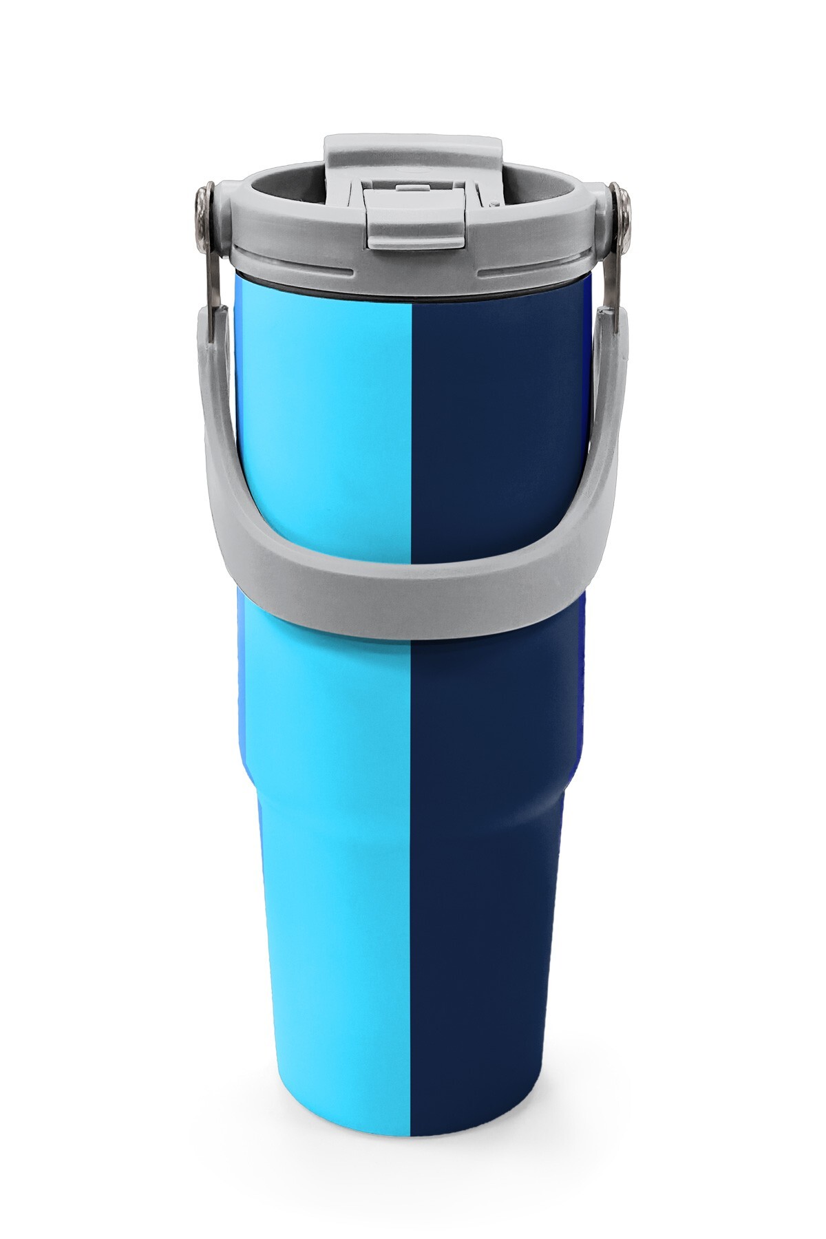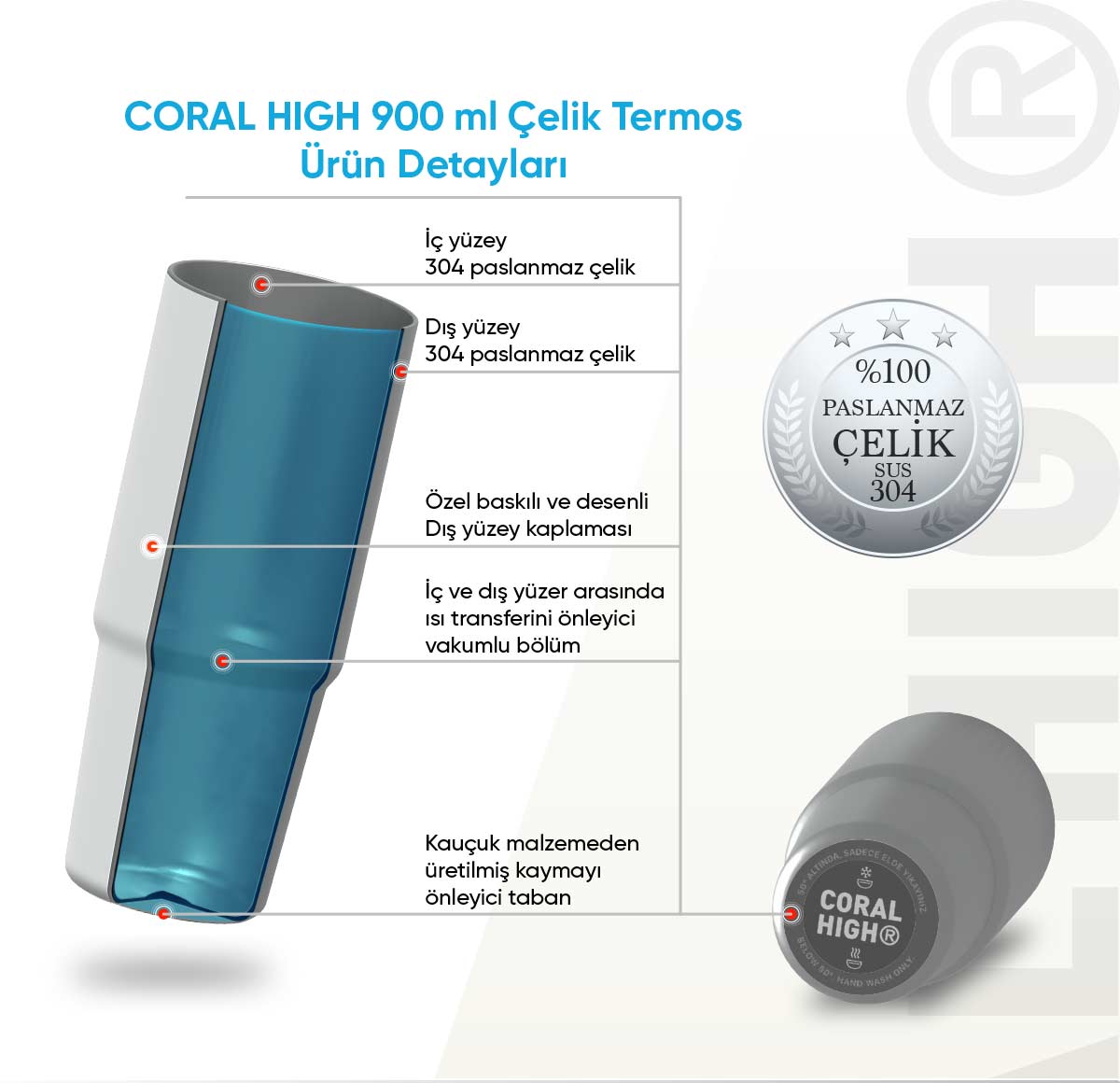 Coral High Mavi Çizgili Desenli Pipetli ve Direkt İçim Çelik Termos 900 ml 38748