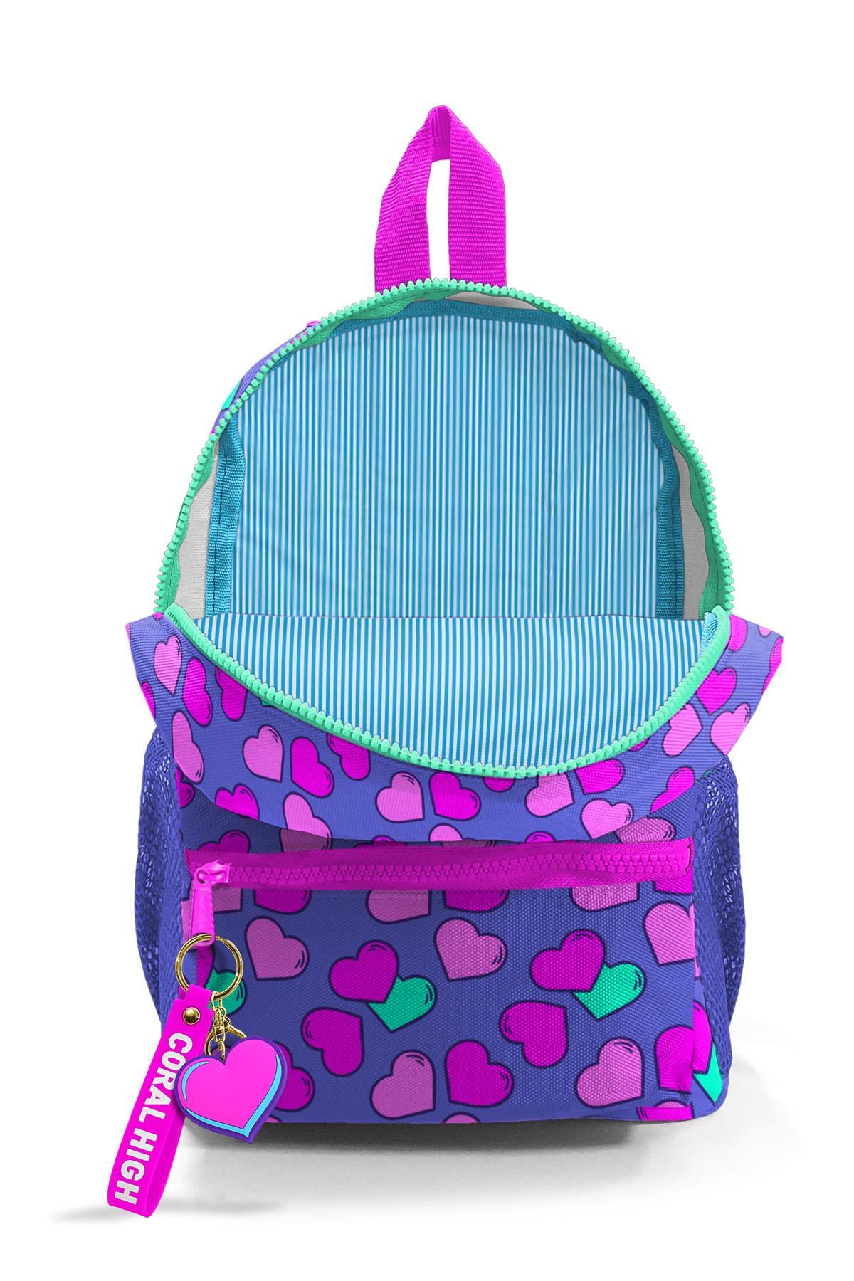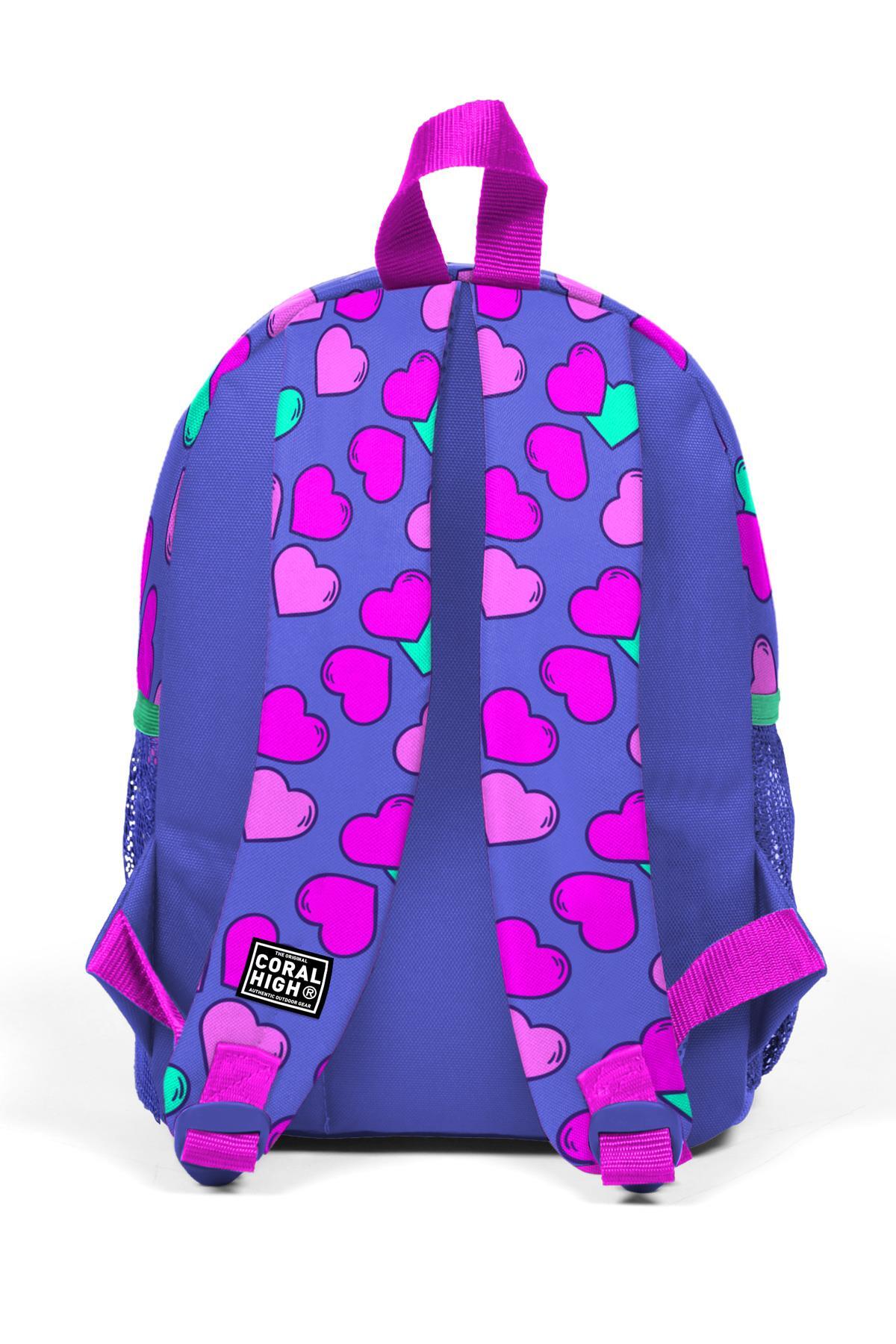 Minik Yuva Sırt Çantası Lavanta Pembe Kalp Desenli İki Bölmeli 23327