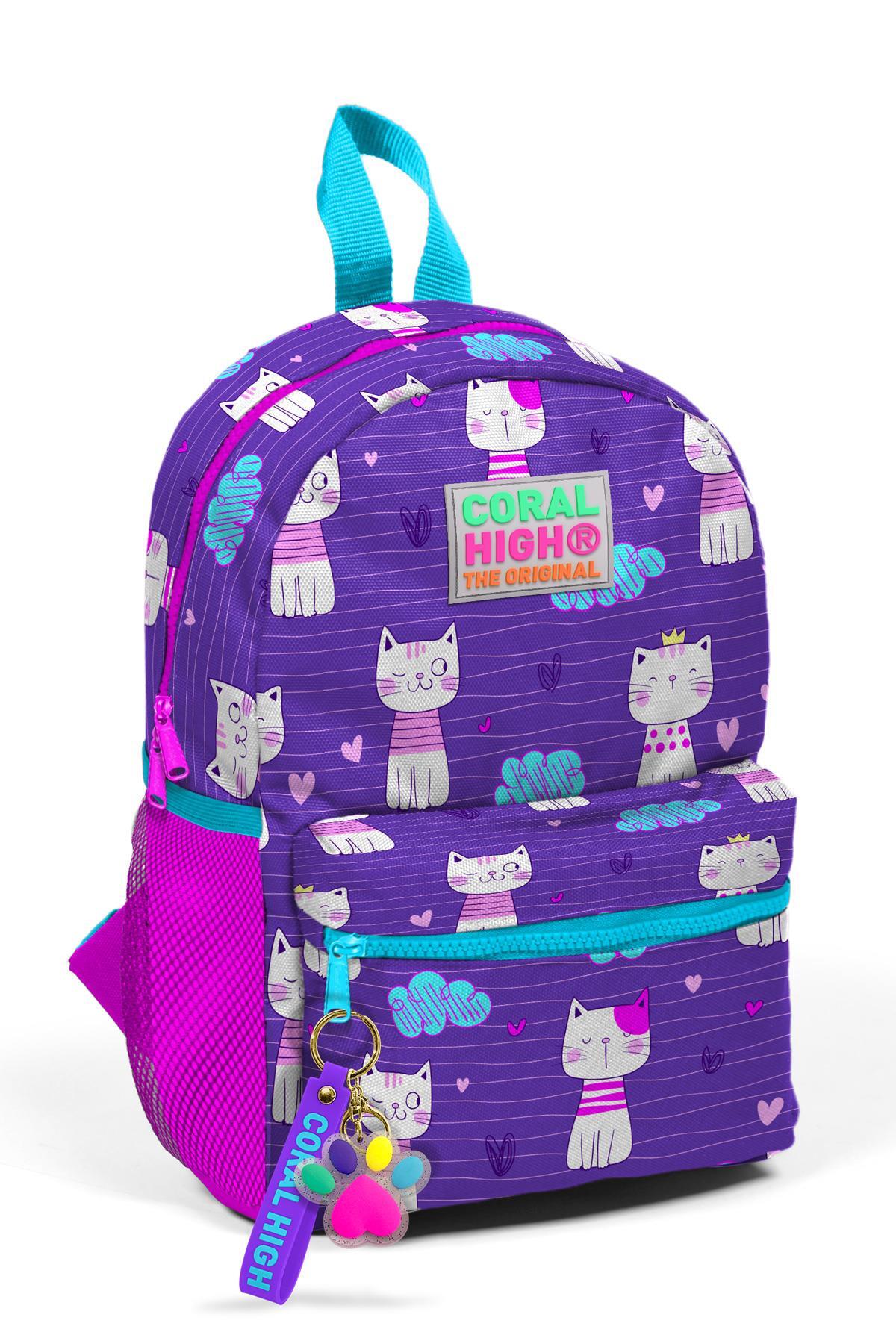 Minik Yuva Sırt Çantası Mor Pembe Kedi Desenli İki Bölmeli 23328