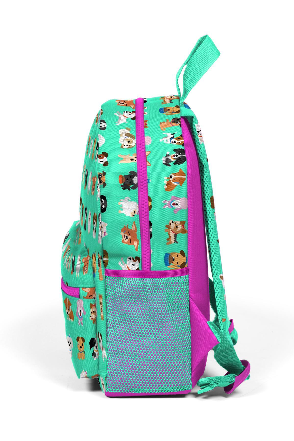 Minik Yuva Sırt Çantası Su Yeşili Neon Pembe Köpek Desenli İki Bölmeli 23330