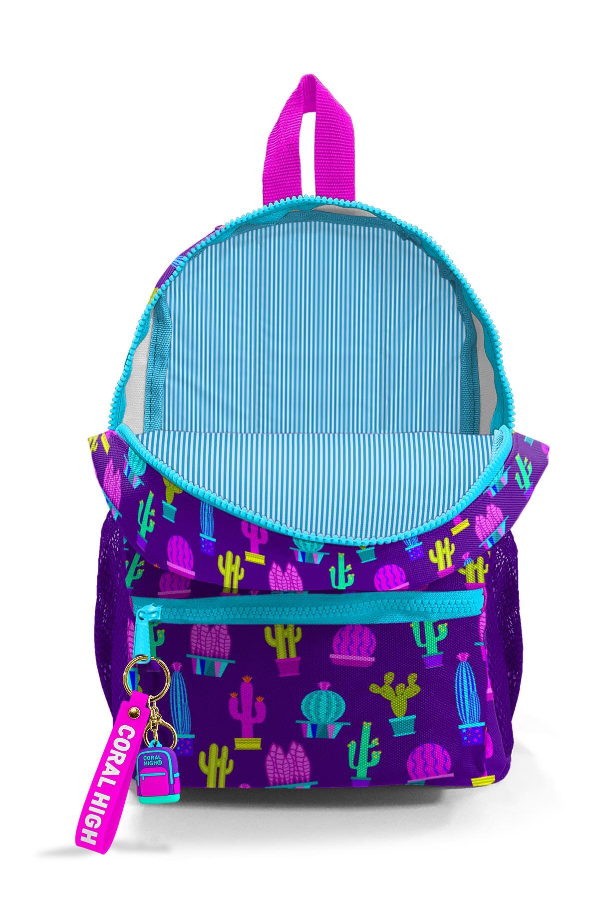 Minik Yuva Sırt Çantası Mor Pembe Kaktüs Desenli İki Bölmeli 23337