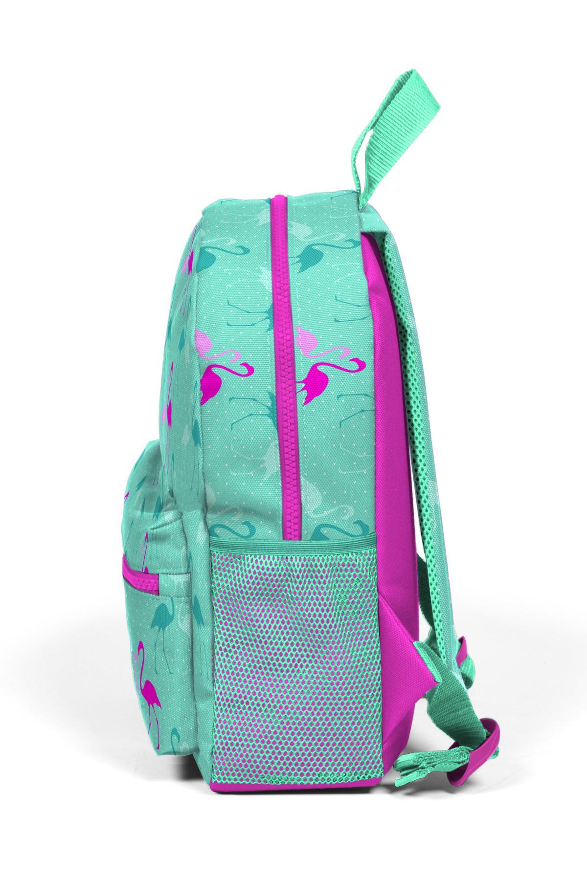 Minik Yuva Sırt Çantası Su Yeşili Neon Pembe Flamingo Desenli İki Bölmeli 23339