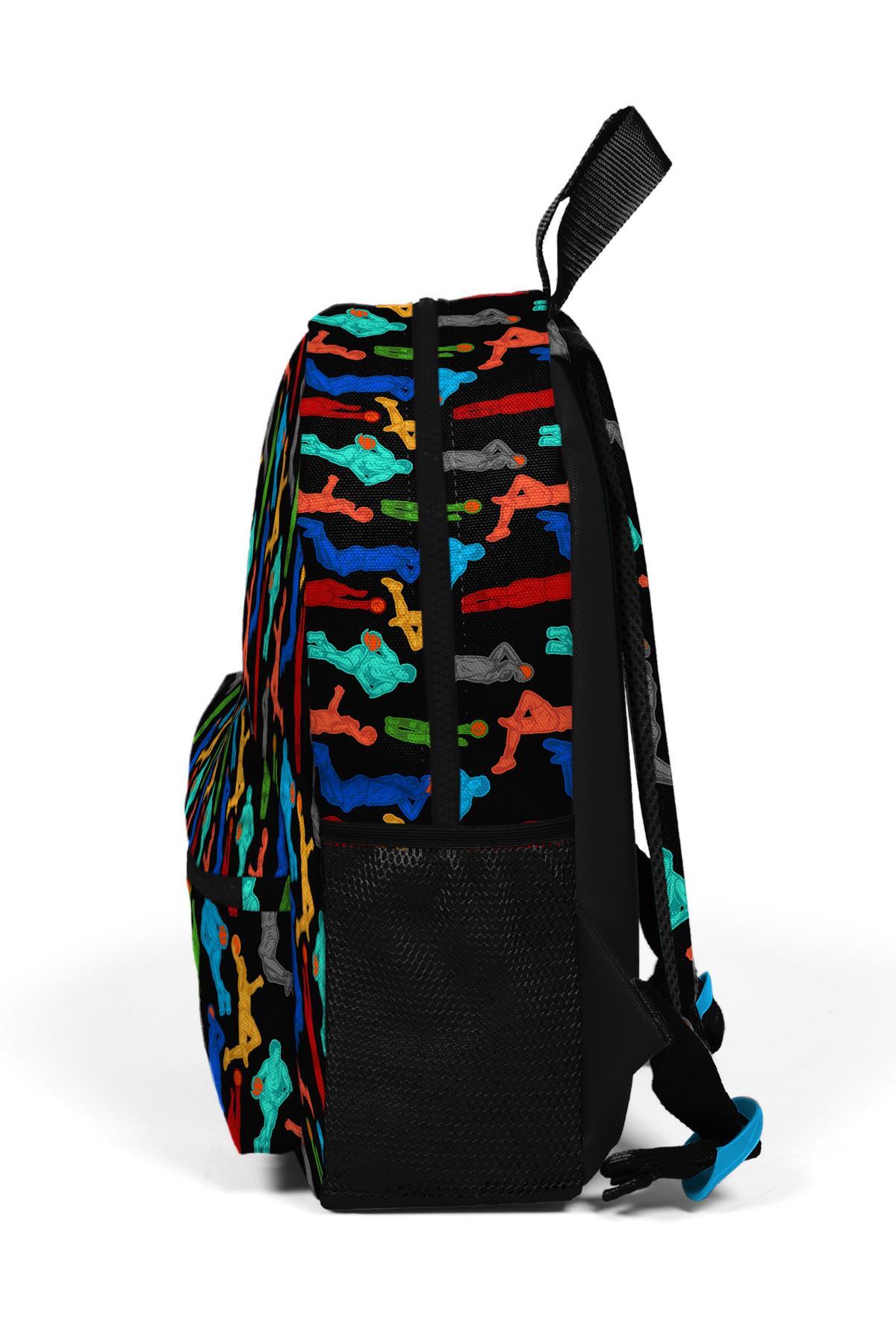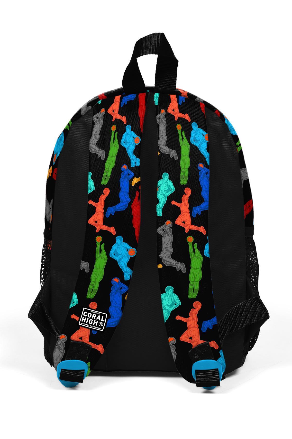 Minik Yuva Sırt Çantası Siyah Basketbol Desenli İki Bölmeli 23345
